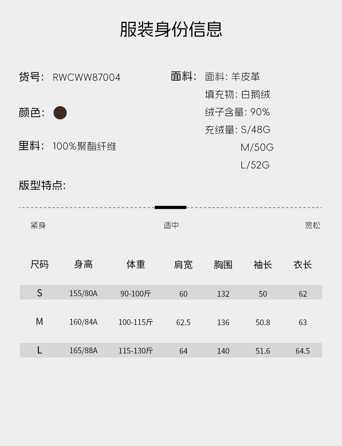 ROMI STUDIO“羊皮羽绒”90白鹅绒摩登复古廓形皮羽绒 RWCWW87004