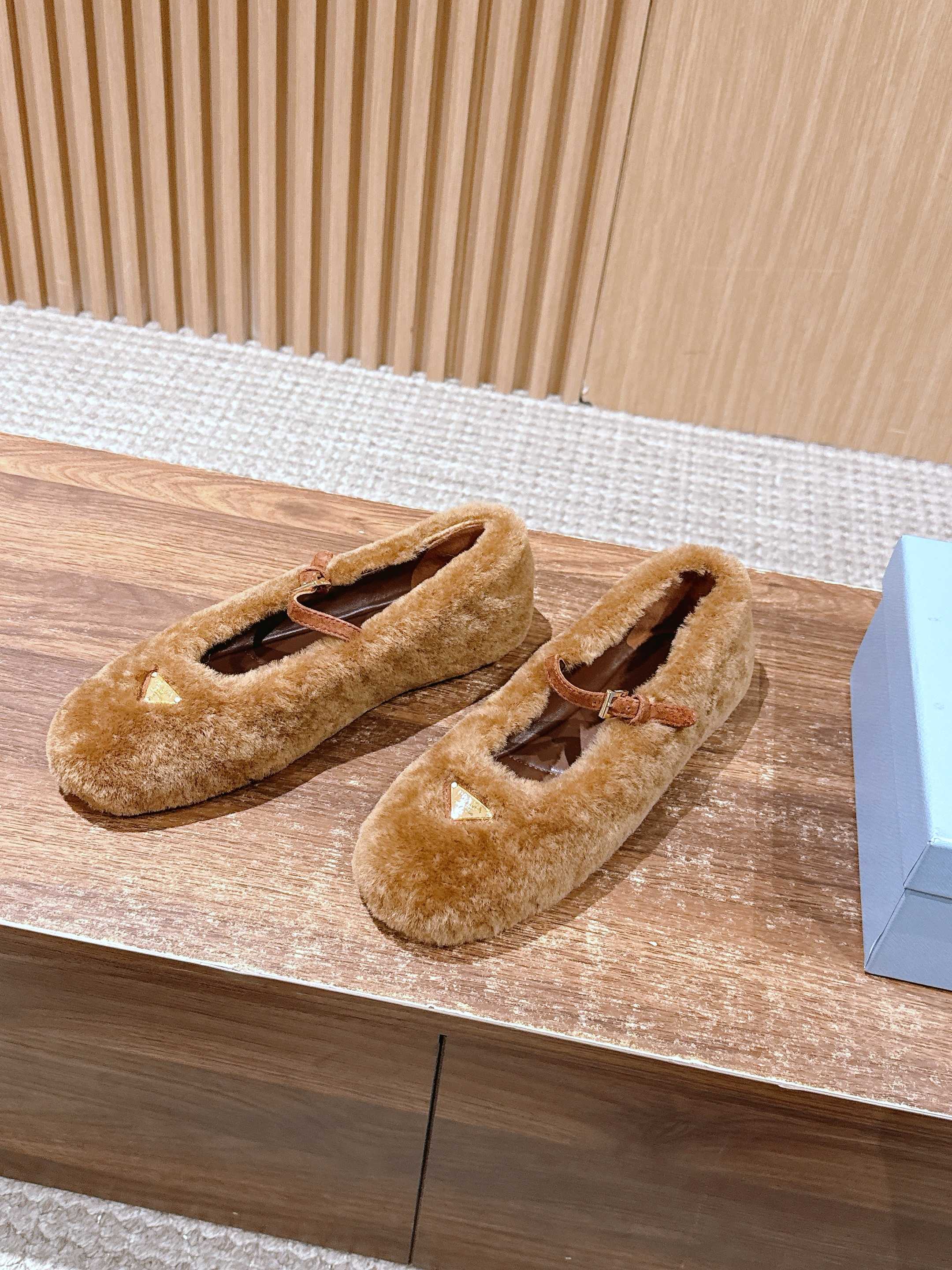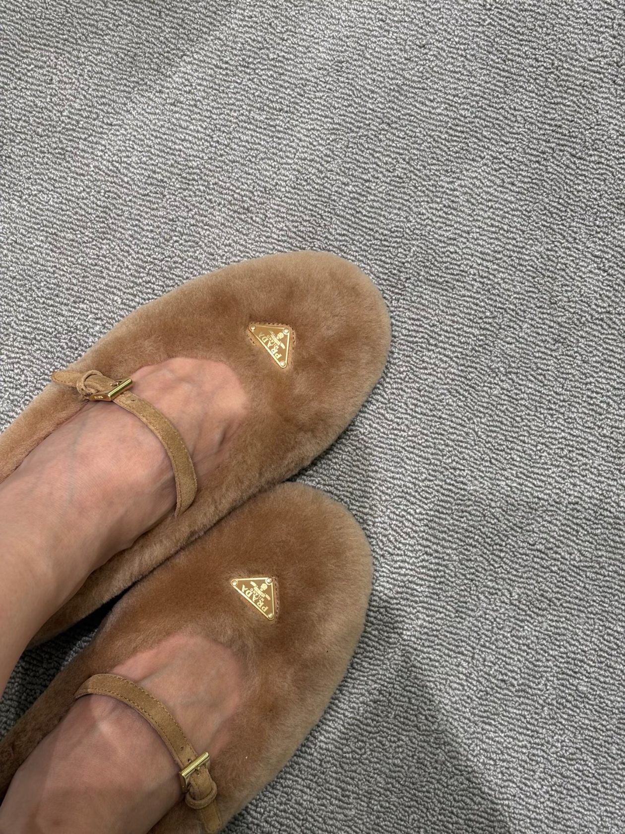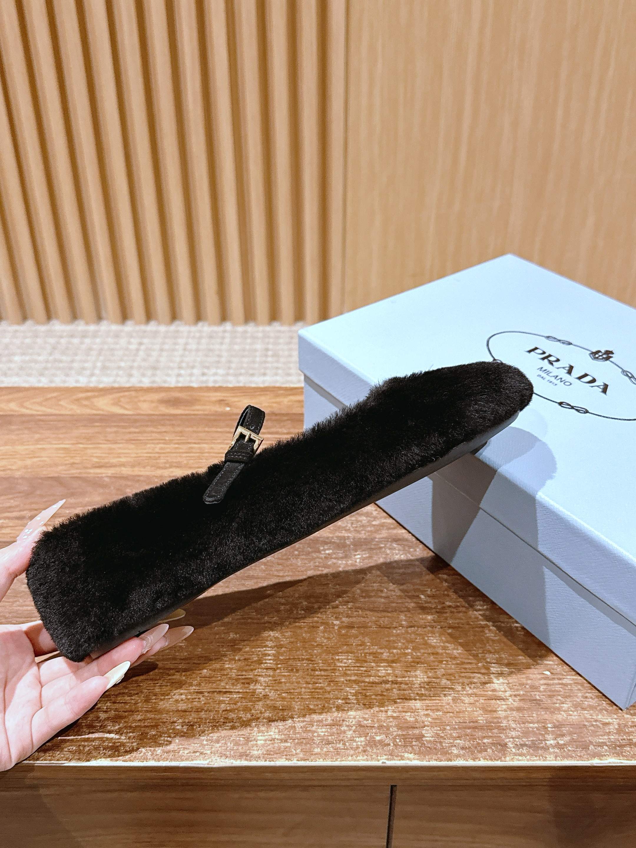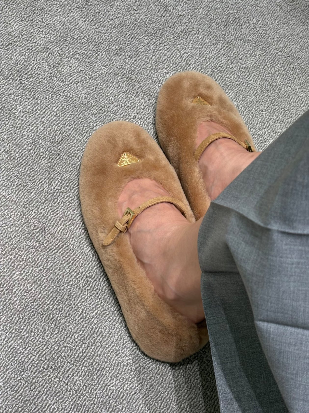 普拉达 秋冬新款毛毛鞋玛丽珍平底鞋(DBG)