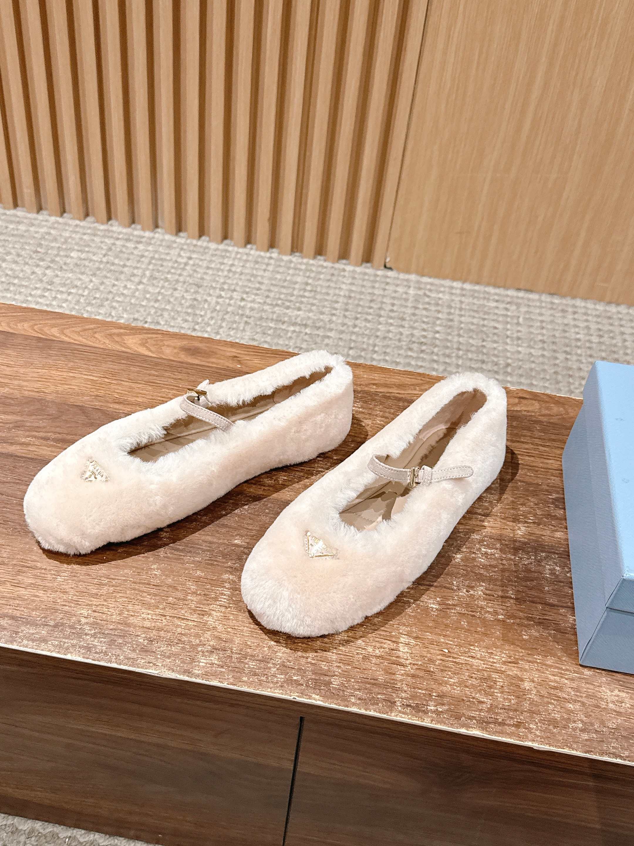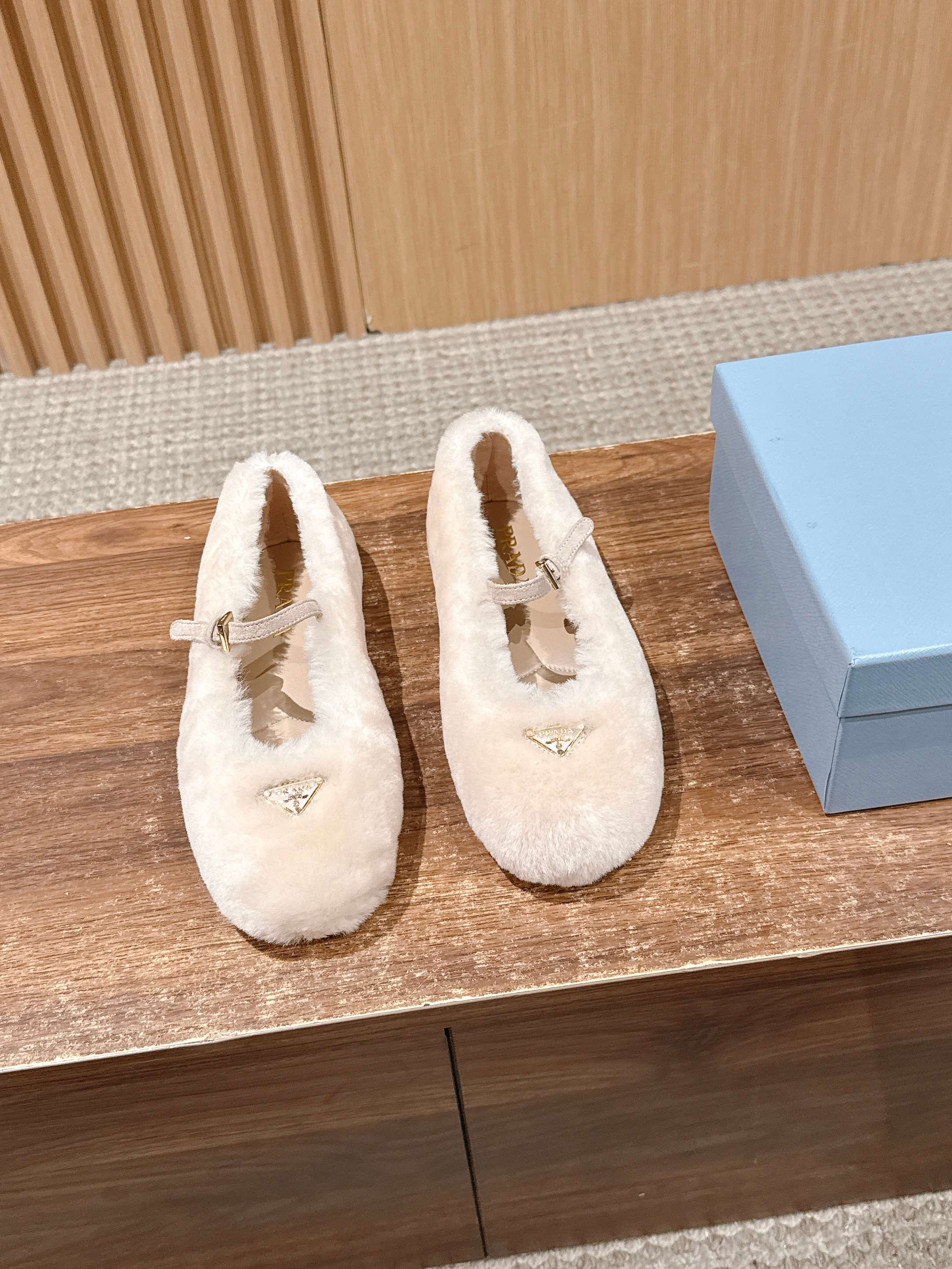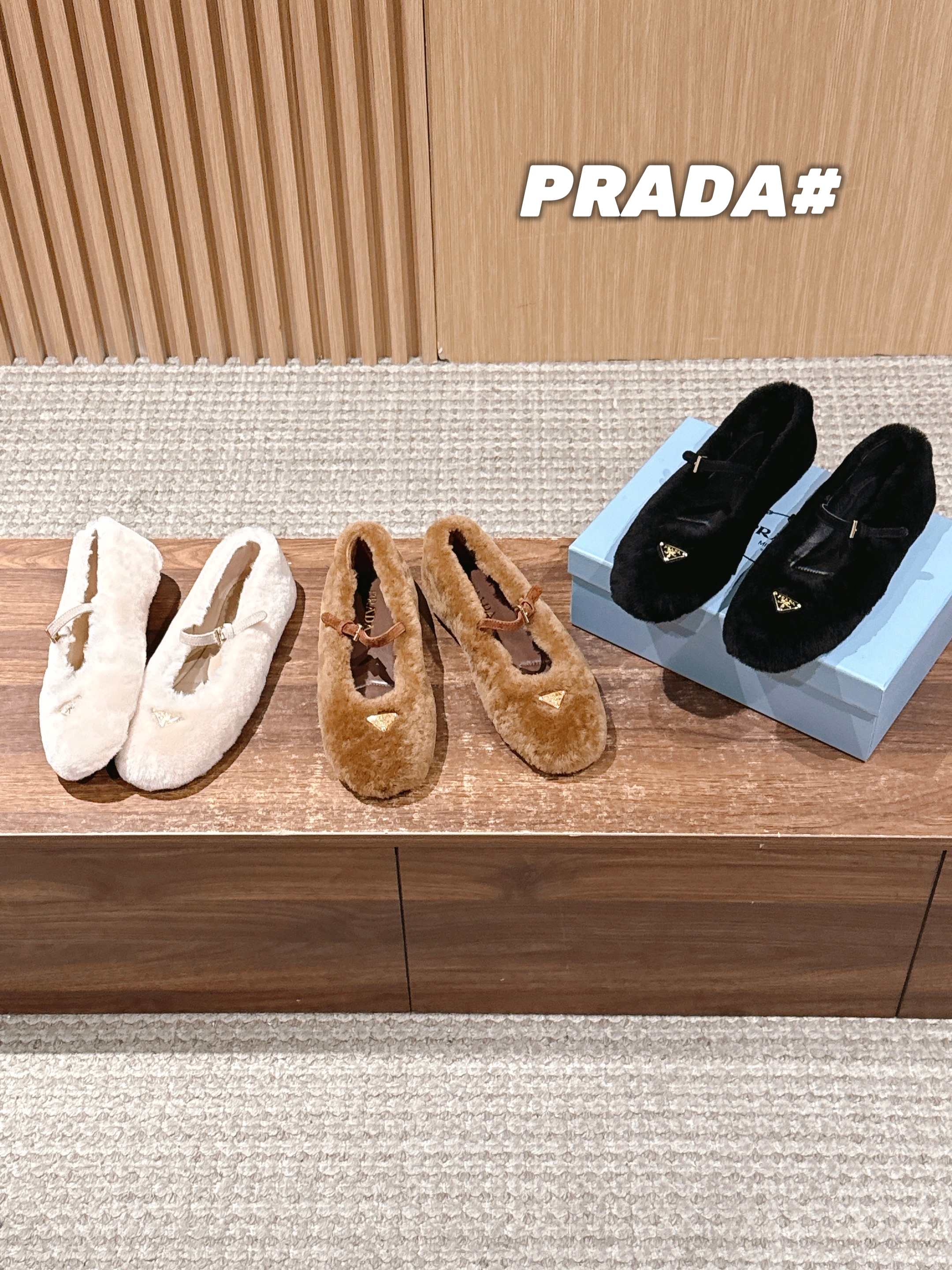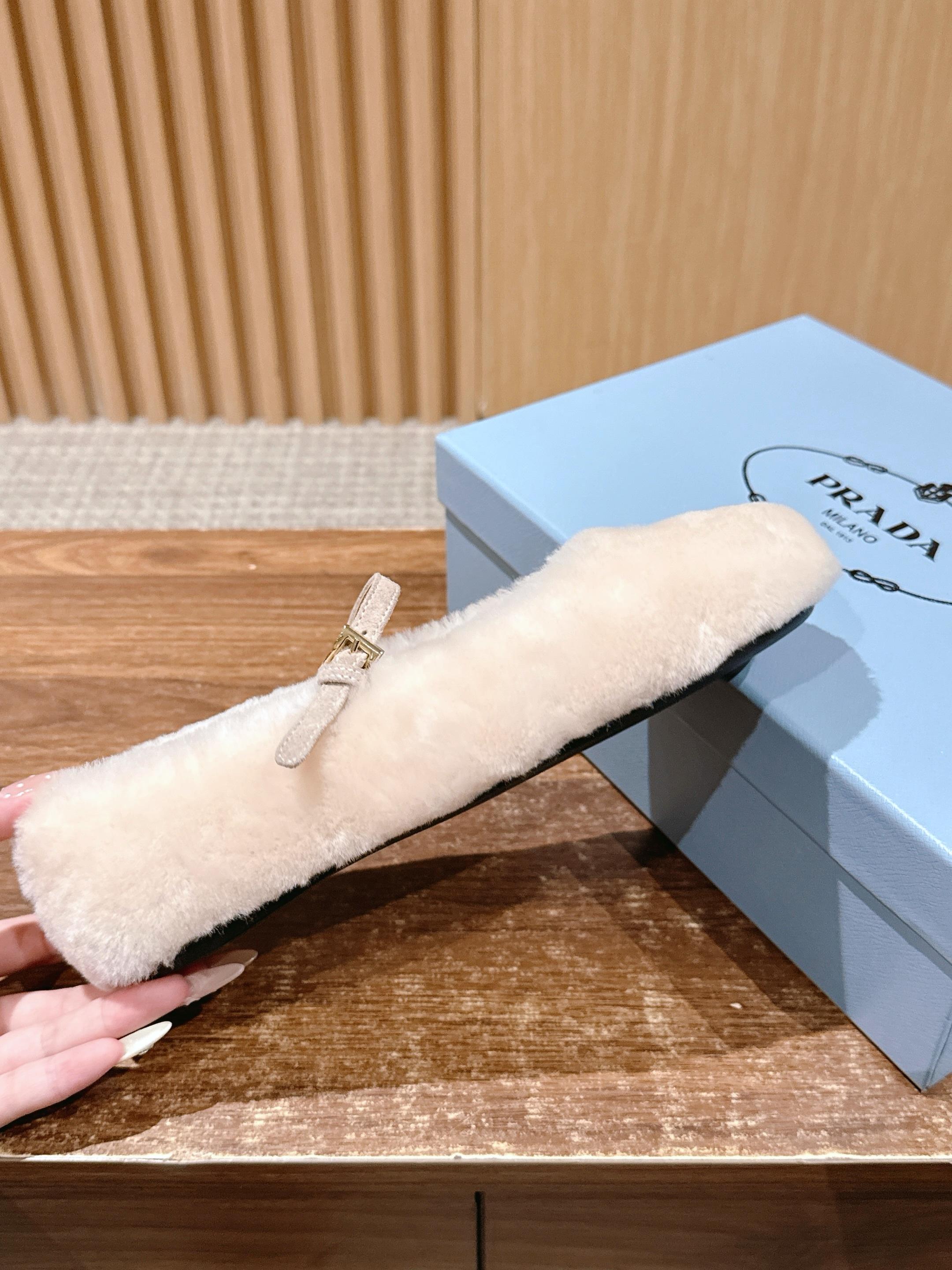普拉达 秋冬新款毛毛鞋玛丽珍平底鞋(DBG)