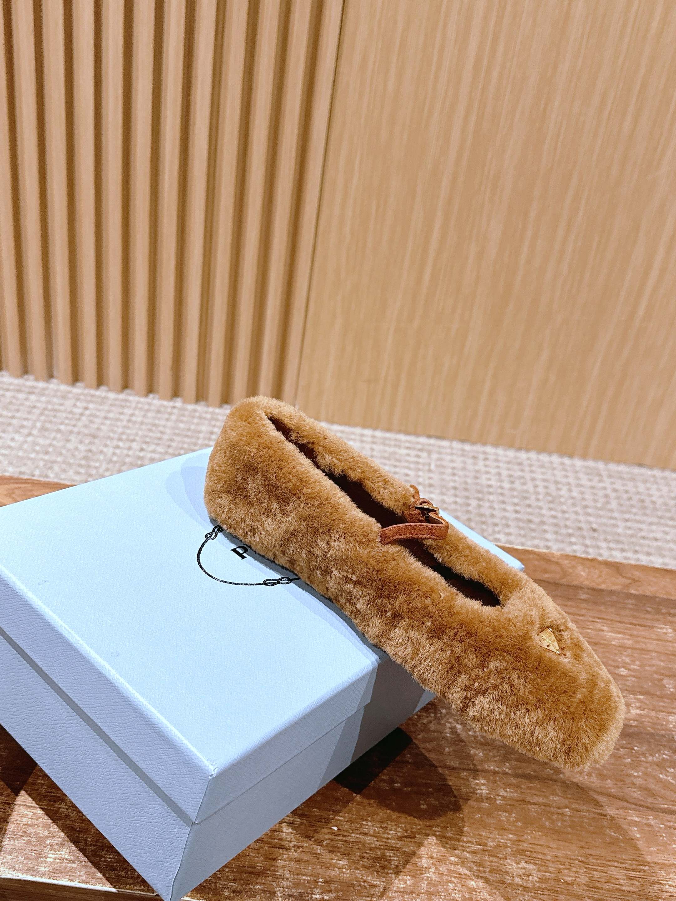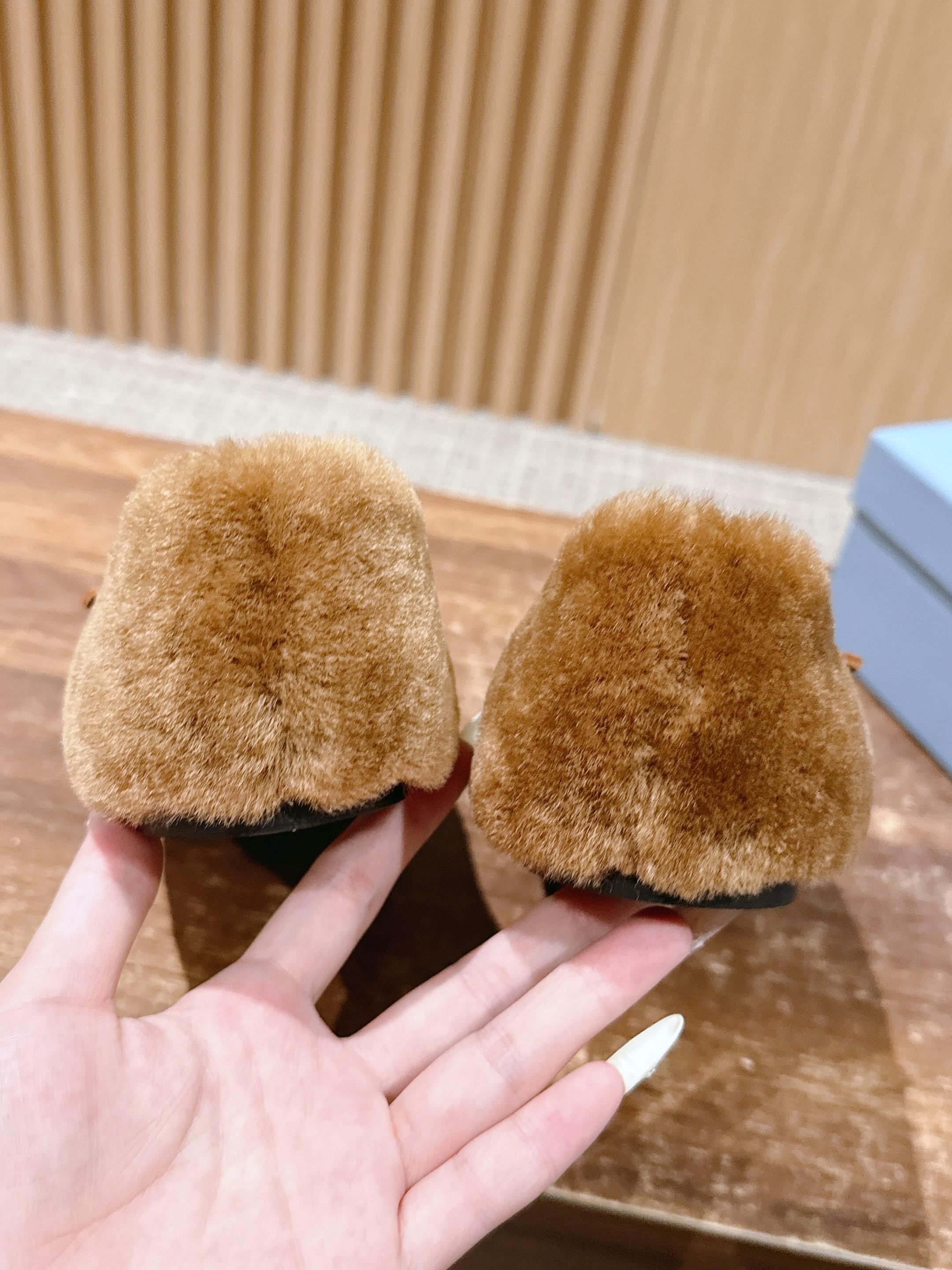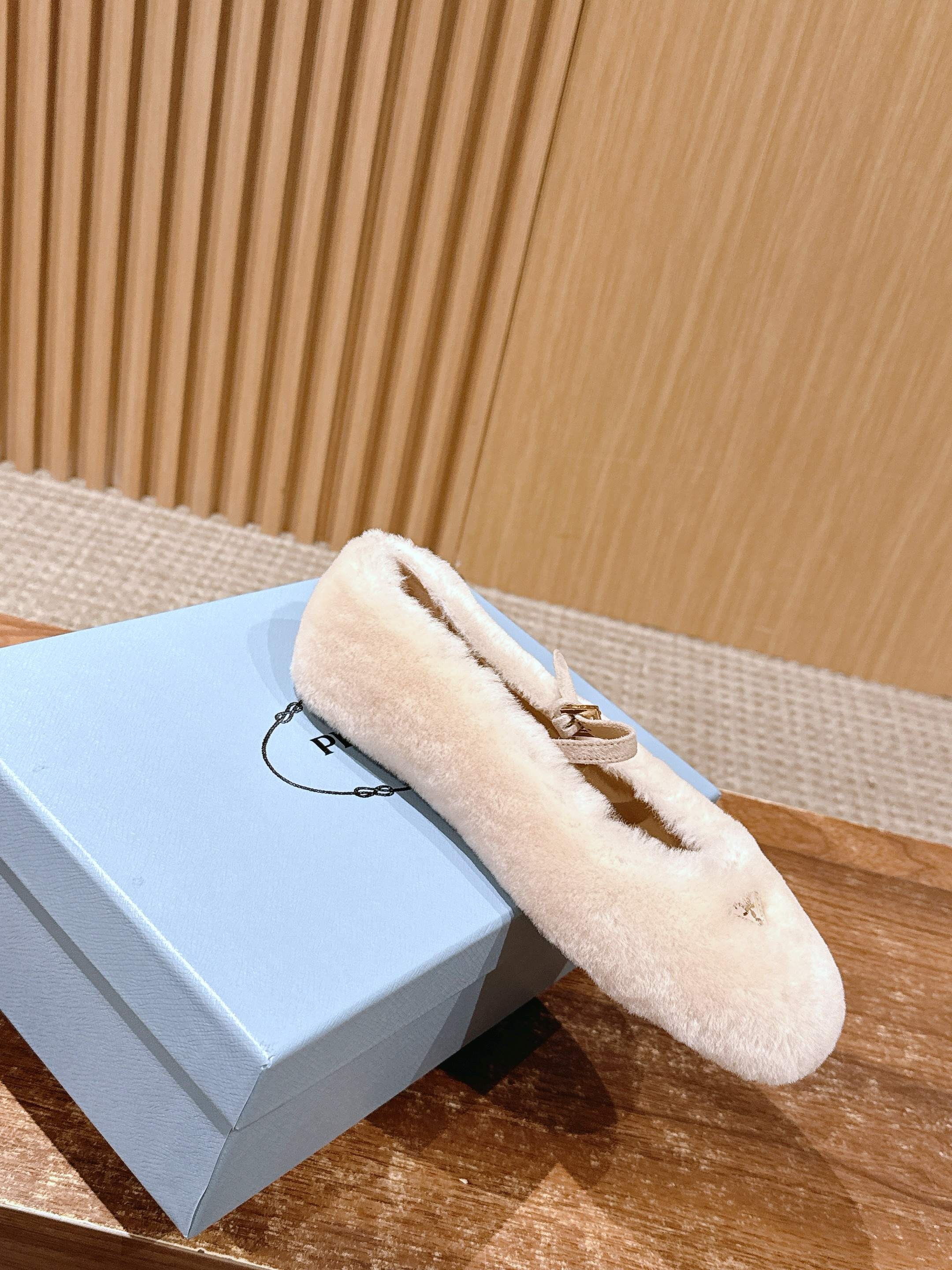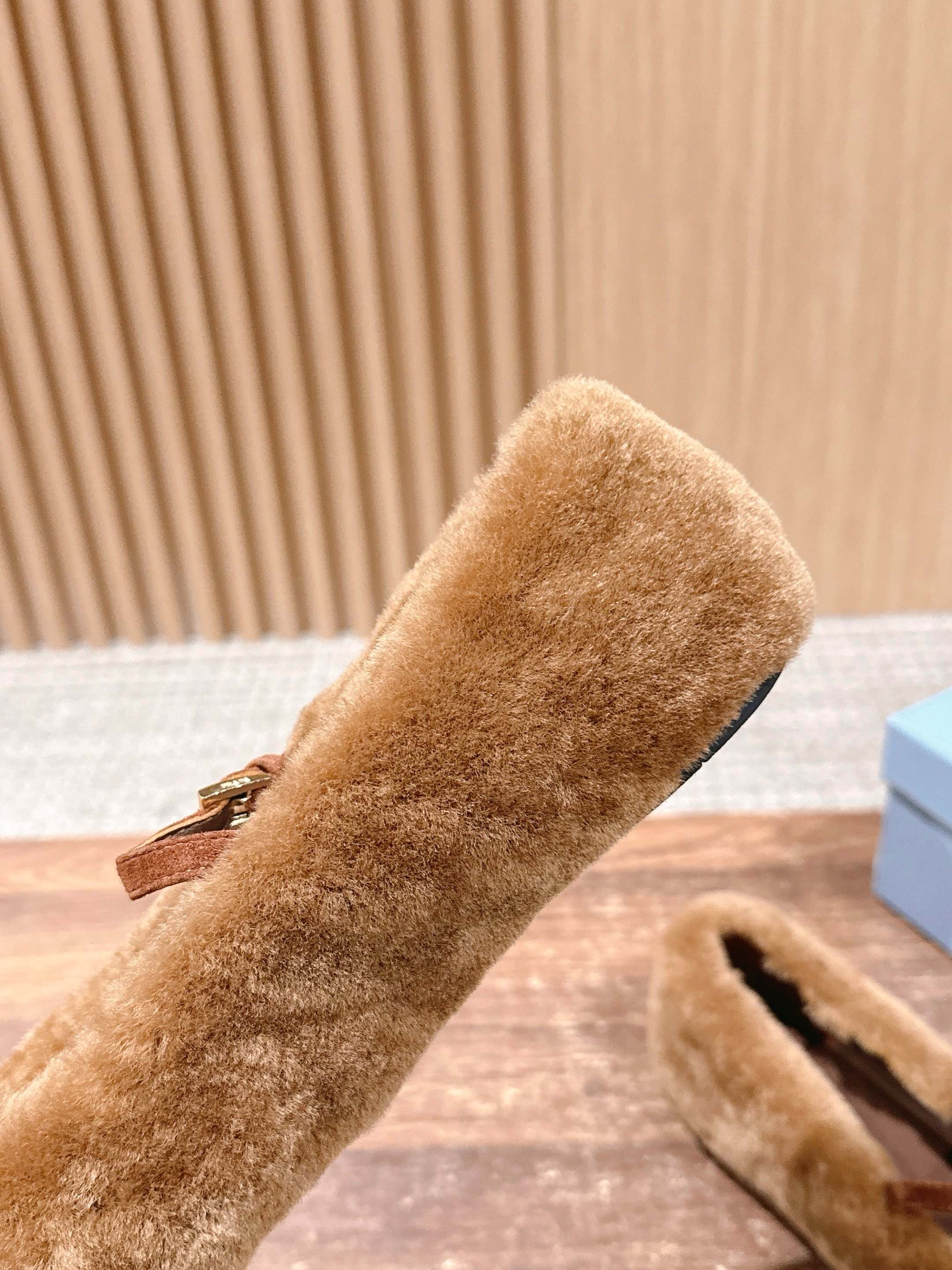 普拉达 秋冬新款毛毛鞋玛丽珍平底鞋(DBG)
