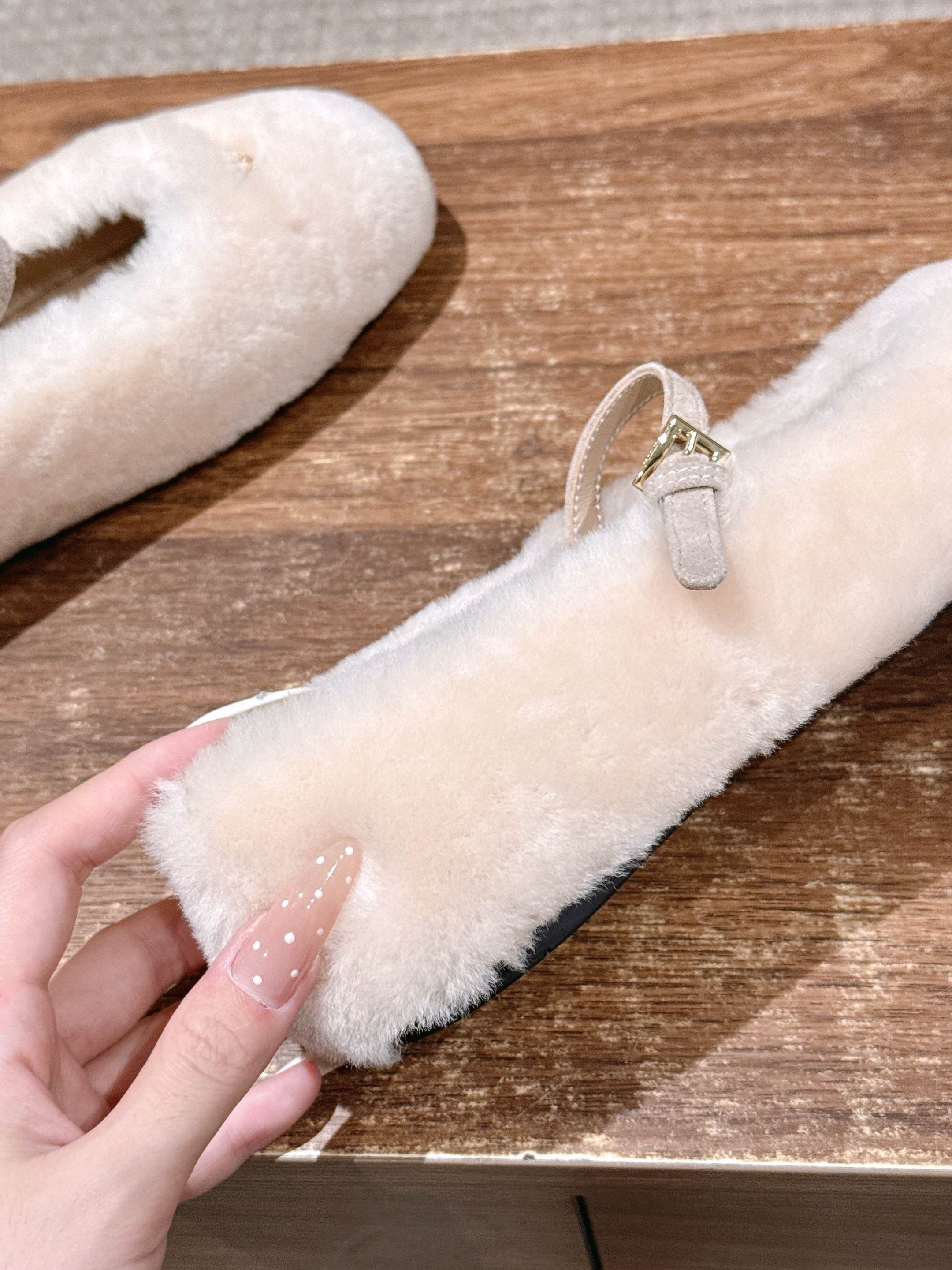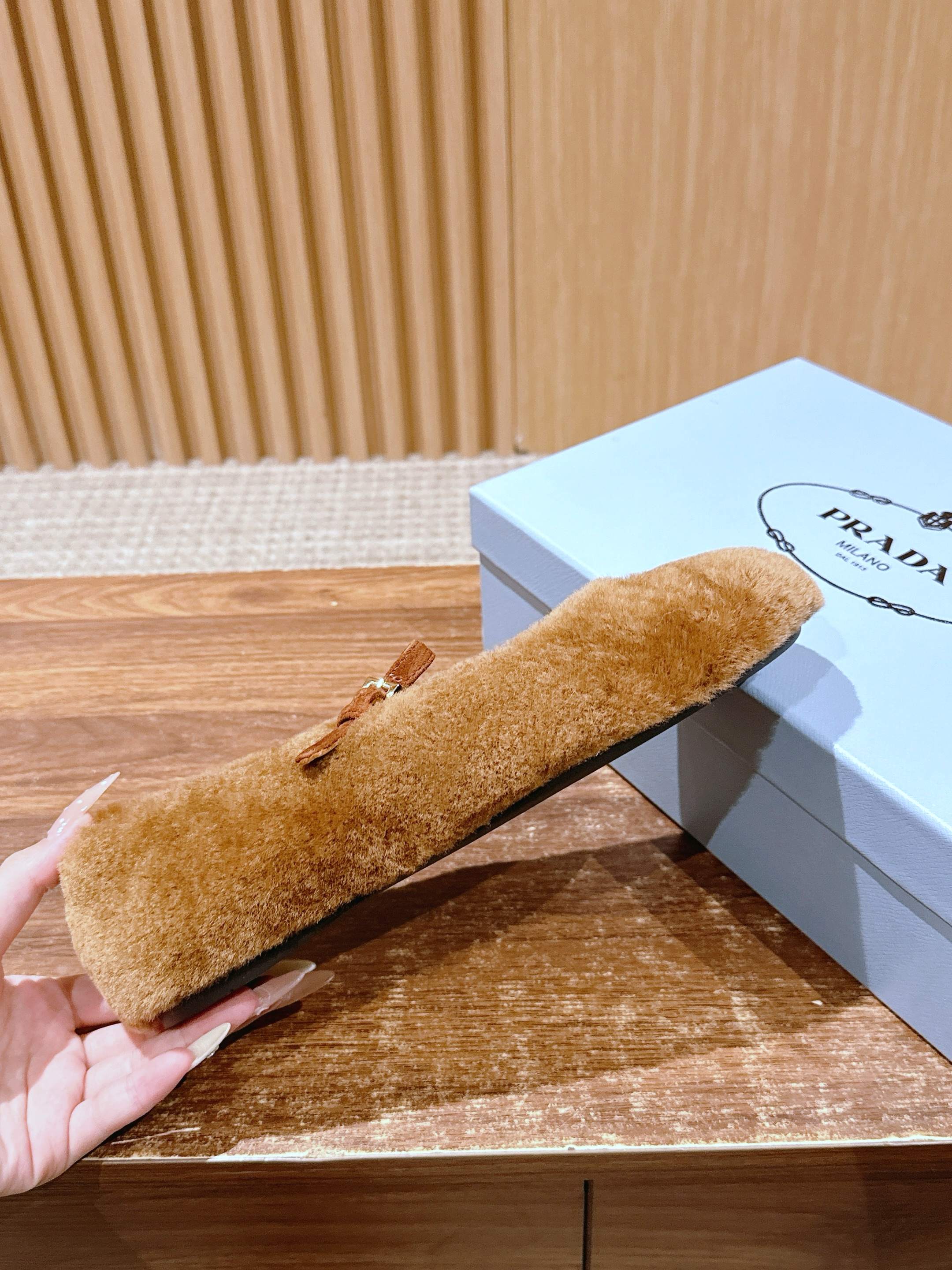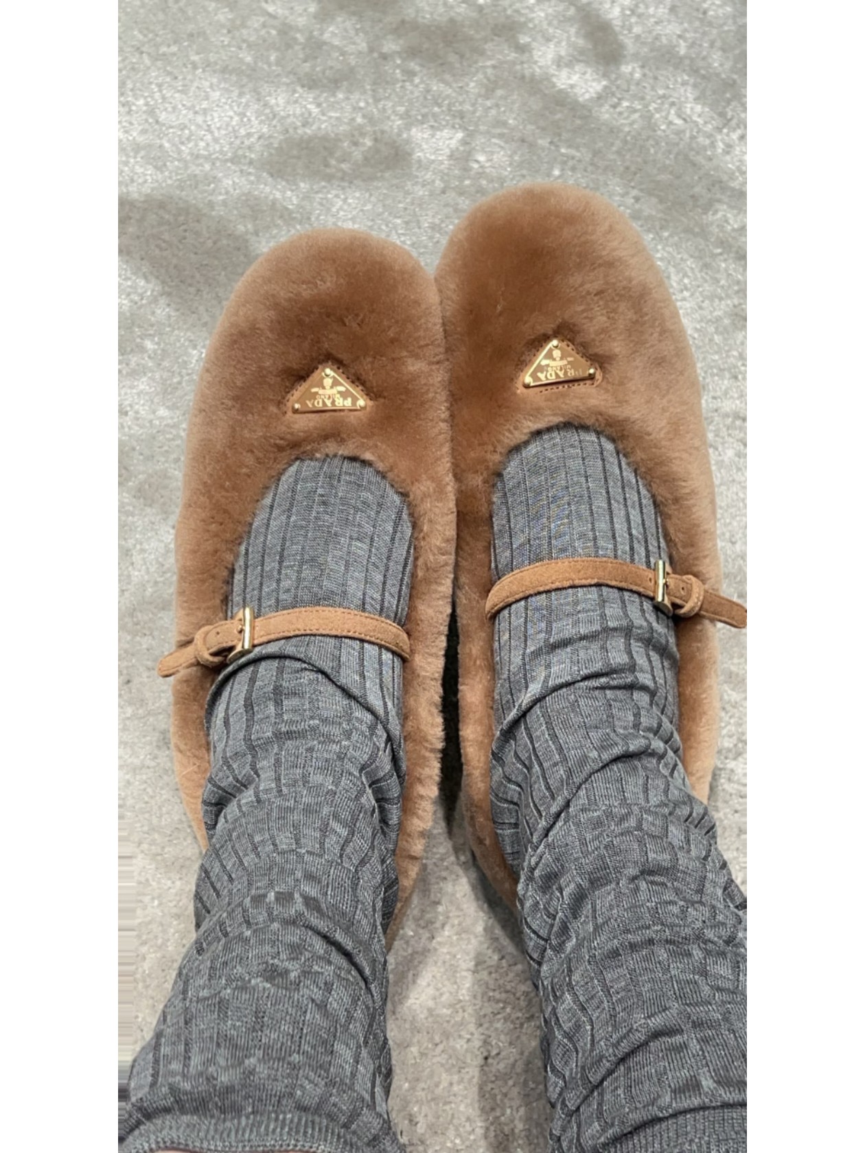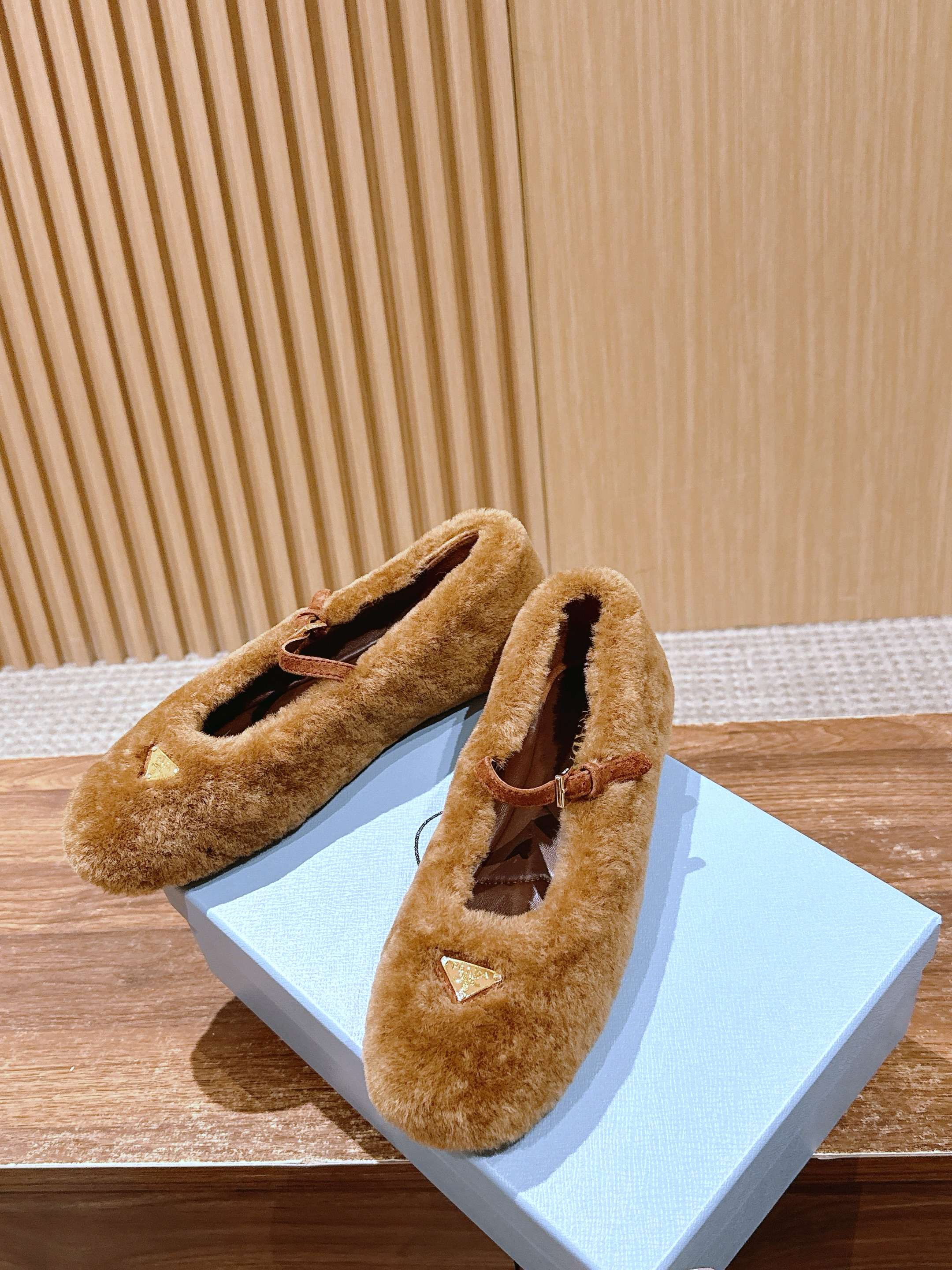 普拉达 秋冬新款毛毛鞋玛丽珍平底鞋(DBG)