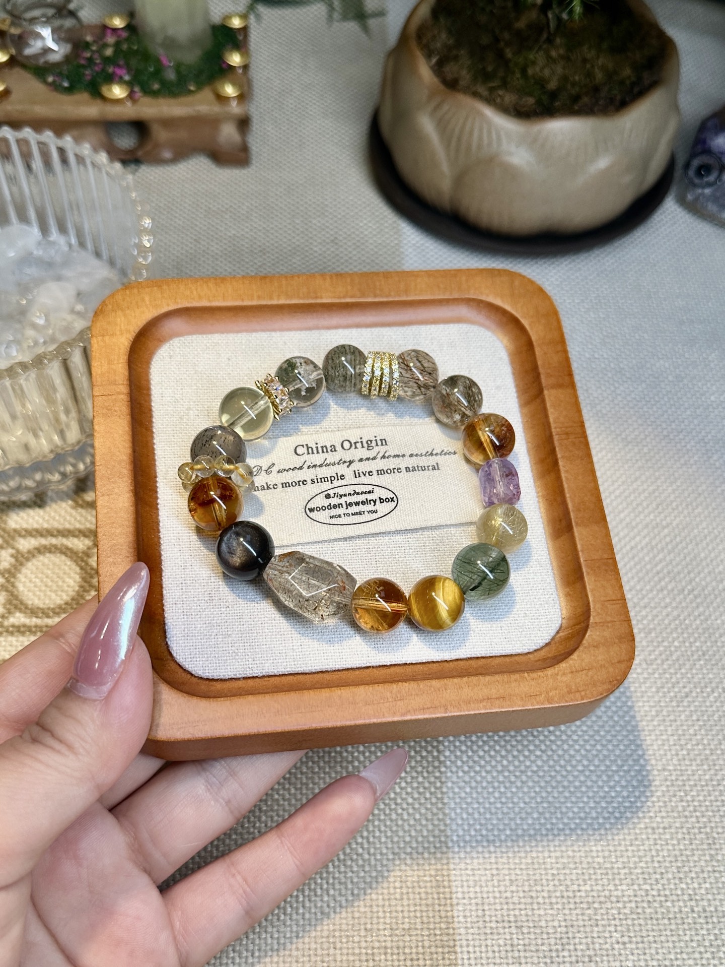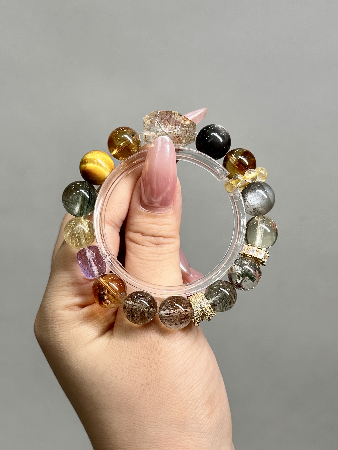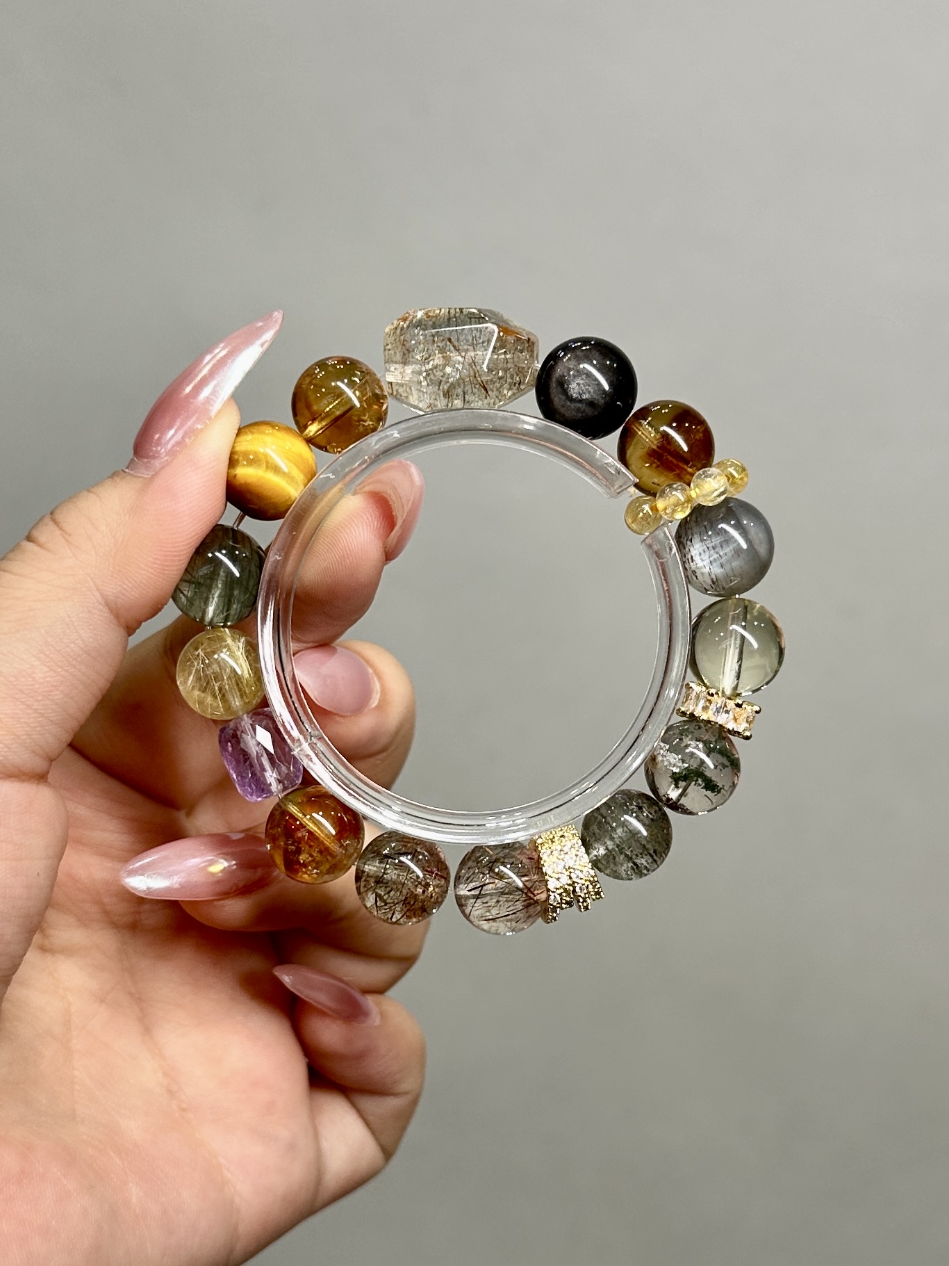 🔮 伊能静同款-七脉轮开启你的全方位开挂人生 ✨黑金超七 银曜石 黄塔金 金发晶 星辉骨干 黄水晶 彩幽灵 幽灵千层 绿发晶 金虎眼