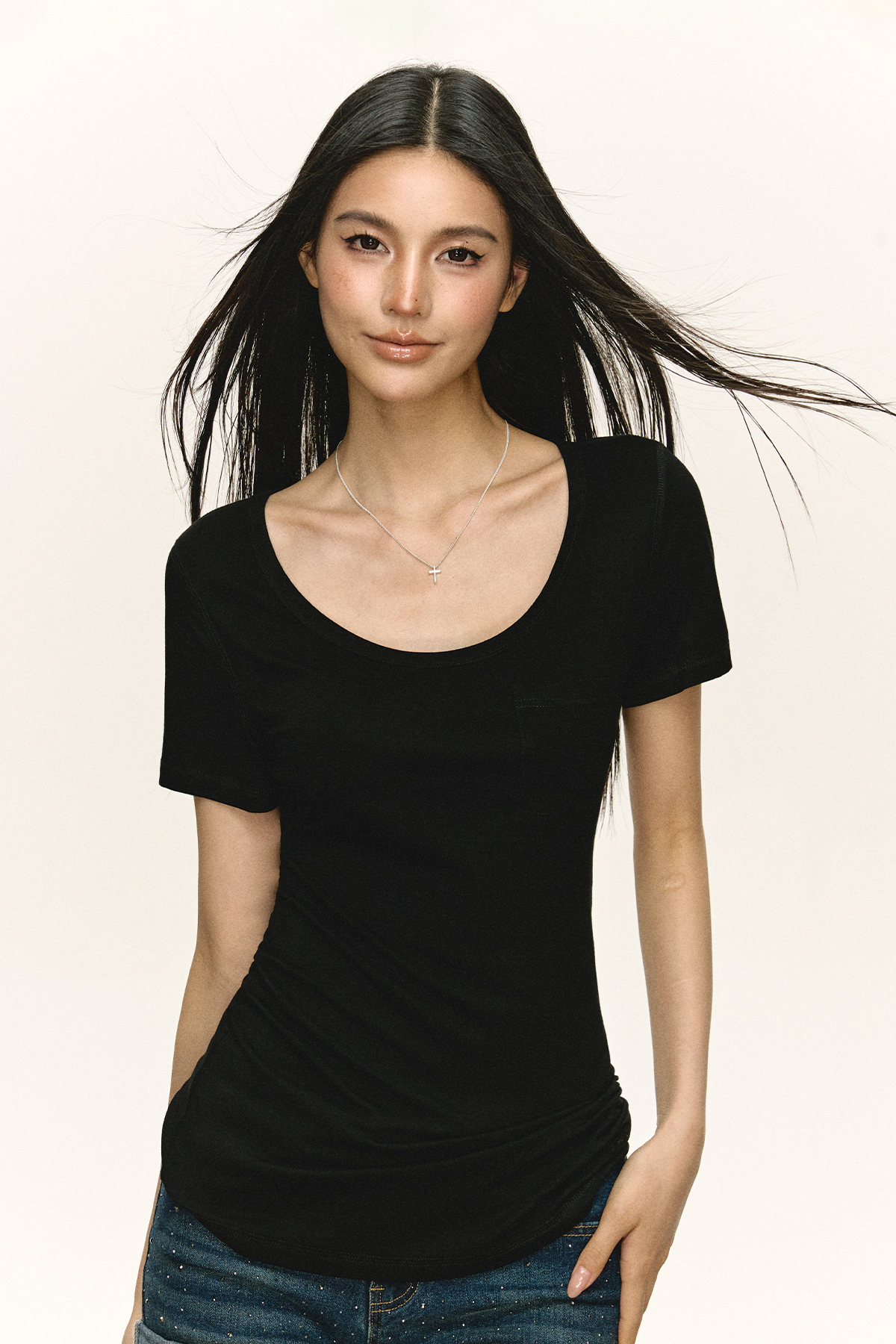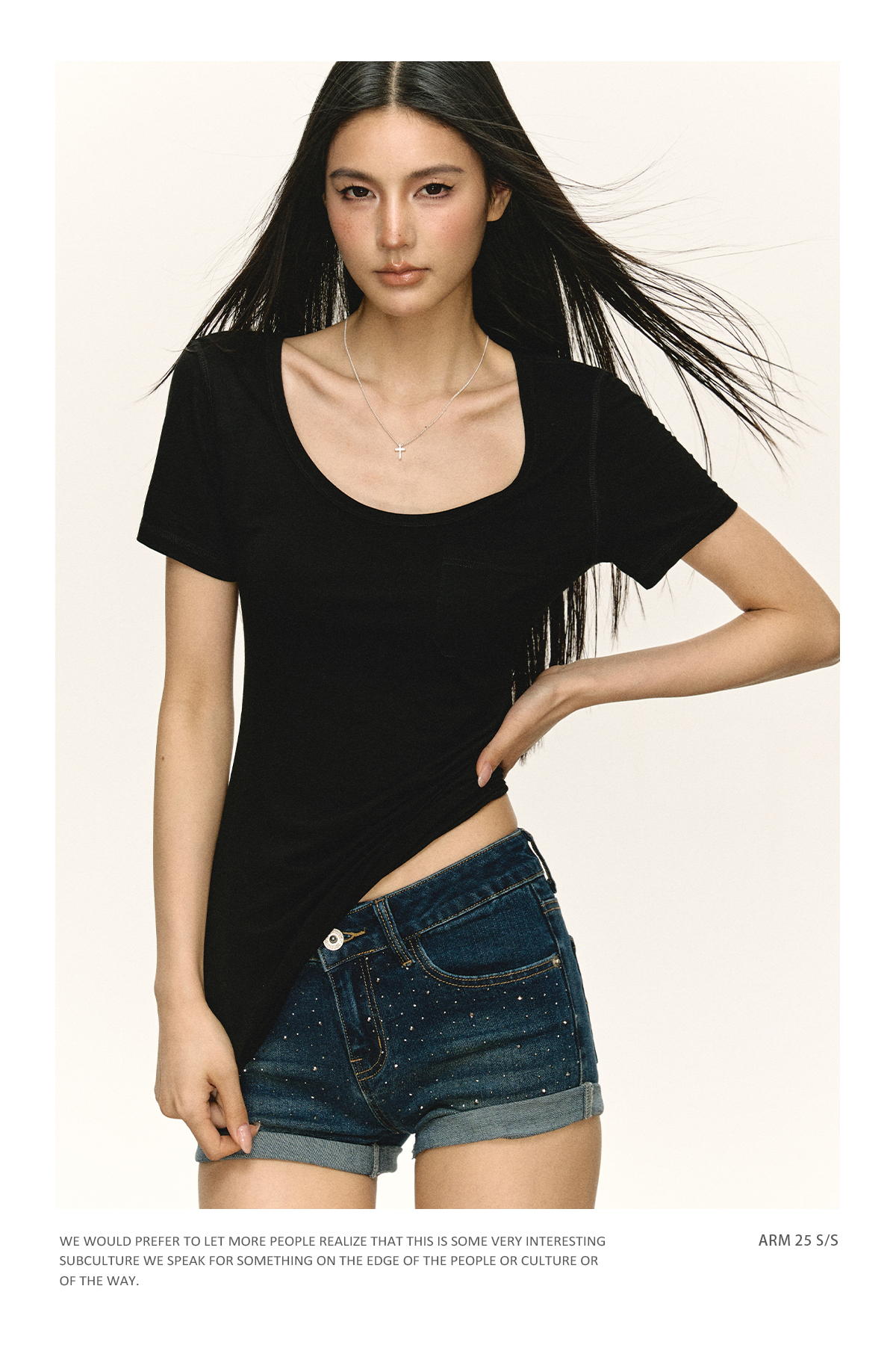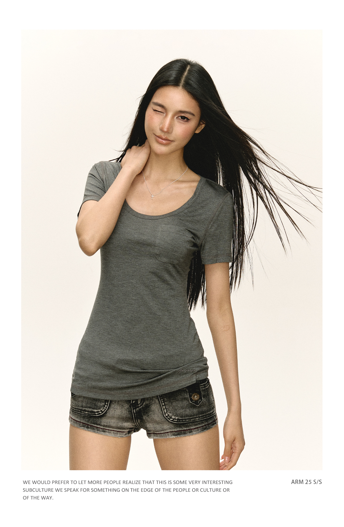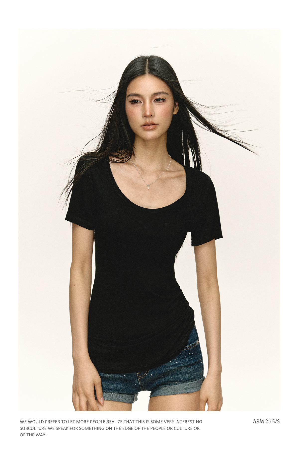 Ariseism 美式复古设计感U领短袖t恤女夏季新款修身上衣