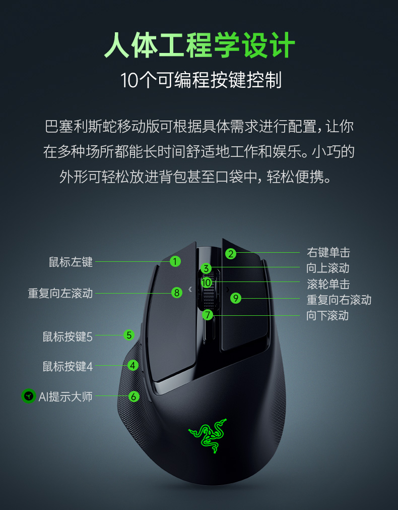 Razer雷蛇巴塞利斯蛇移动版无线鼠标【雷蛇官方直营,3年有限质保】