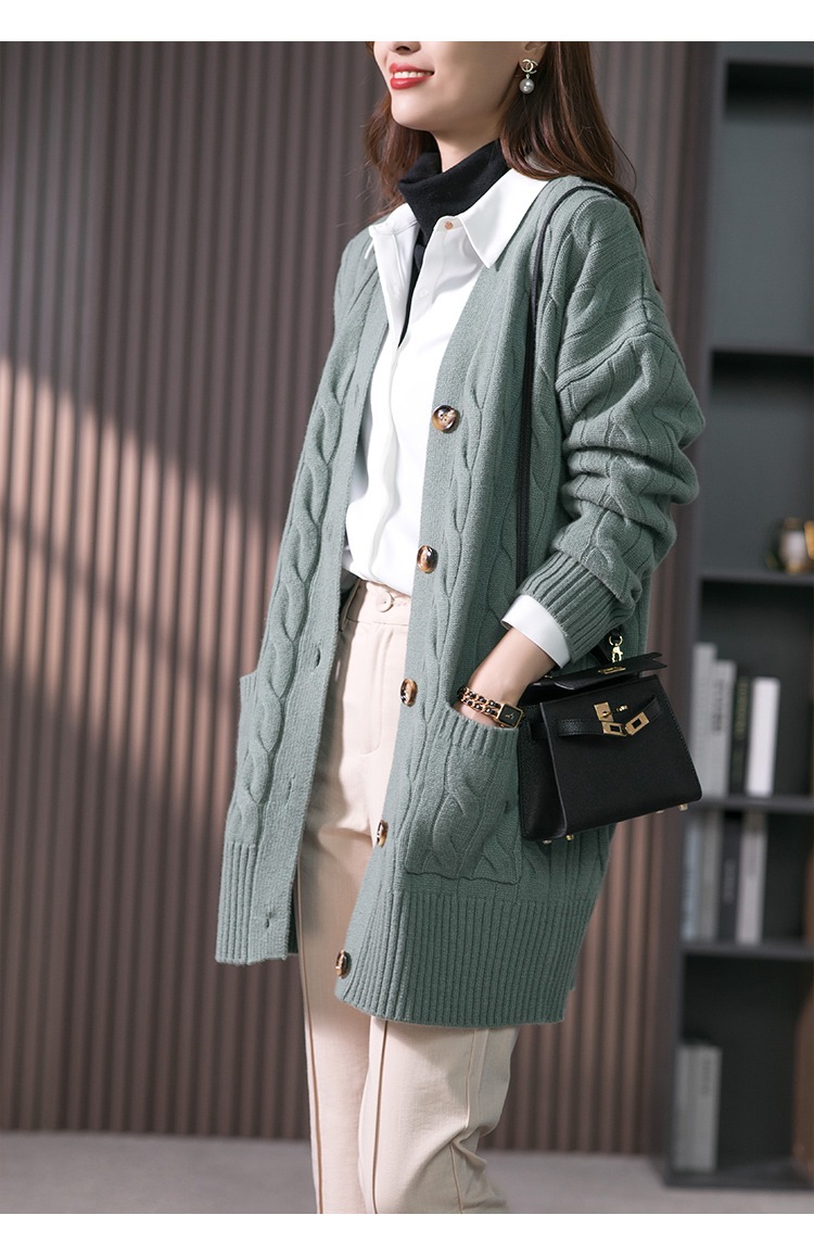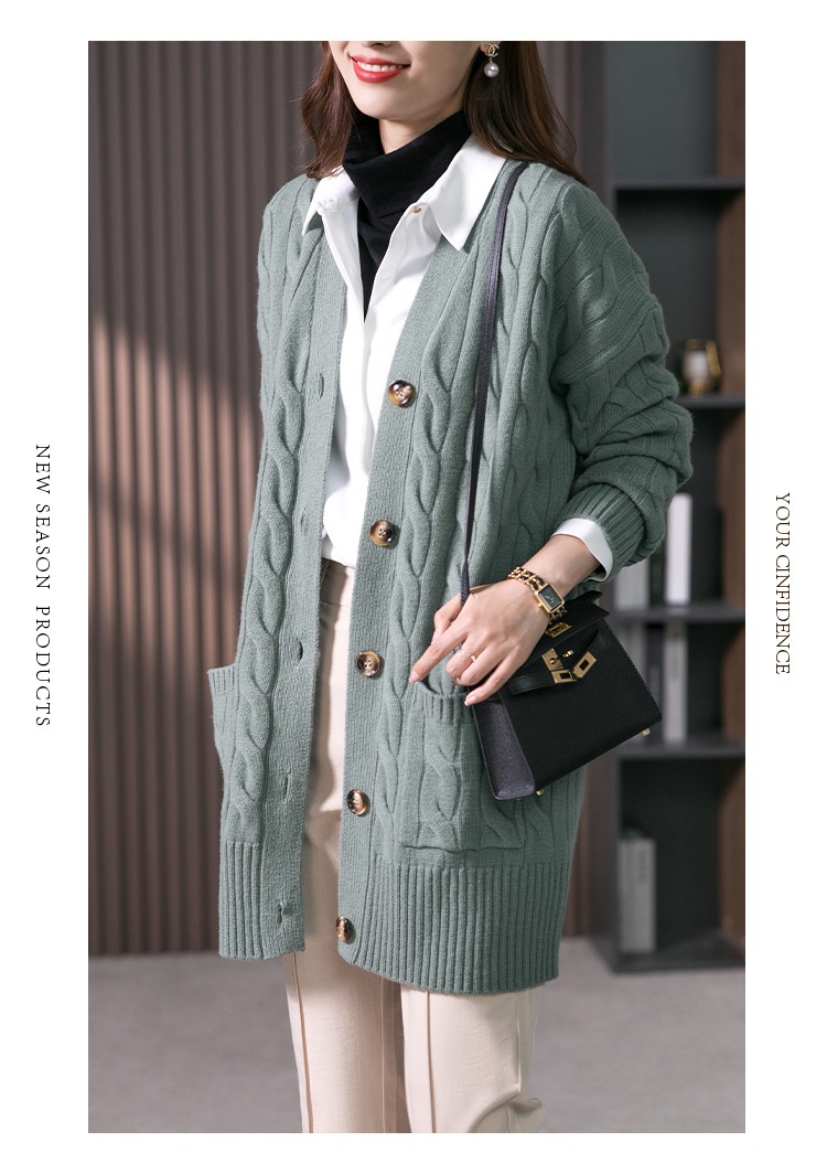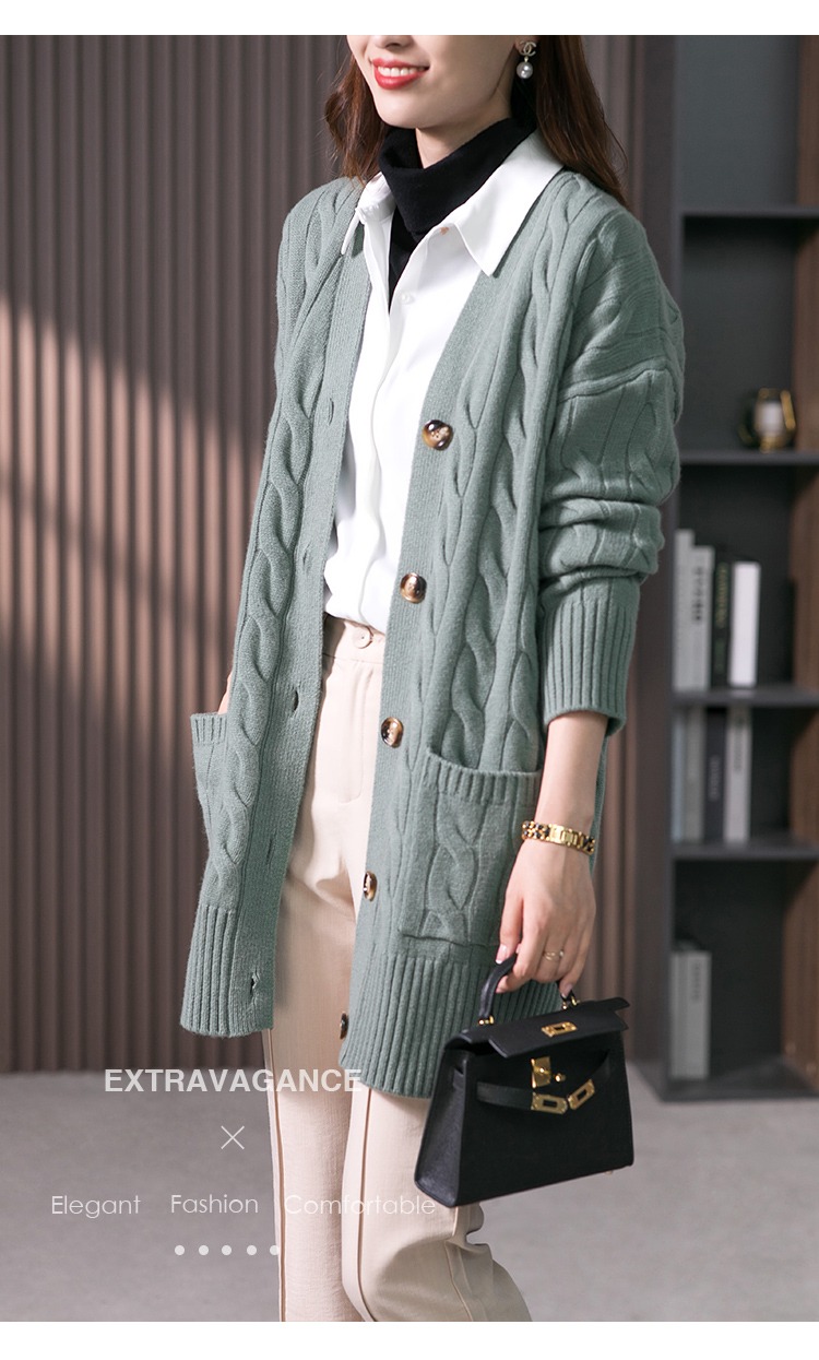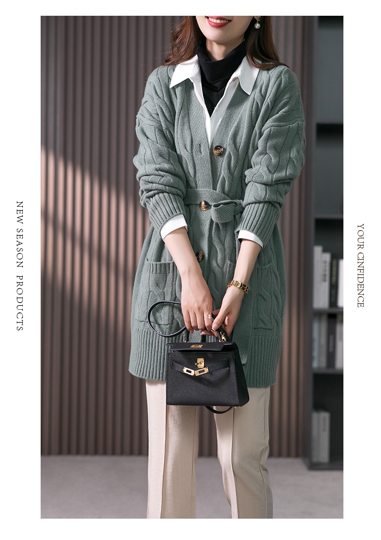 羊绒针织开衫女设计感2023秋季新款宽松羊毛提花外穿毛衣外套