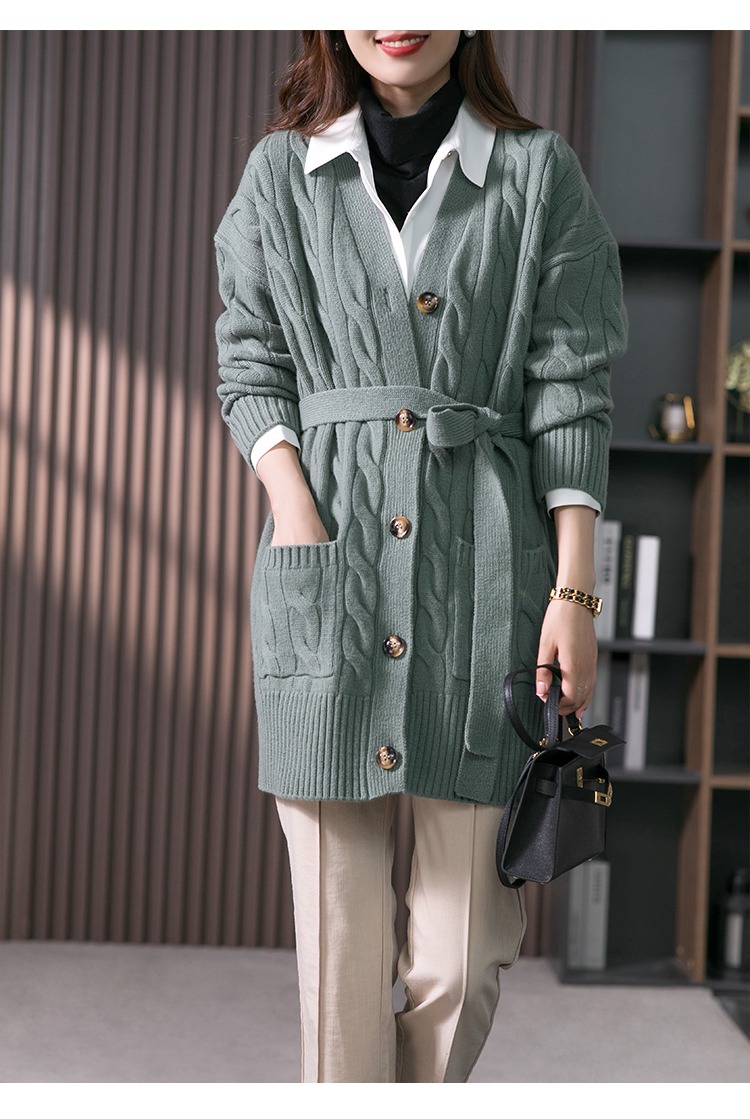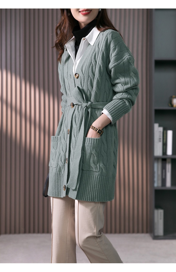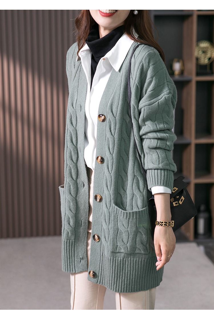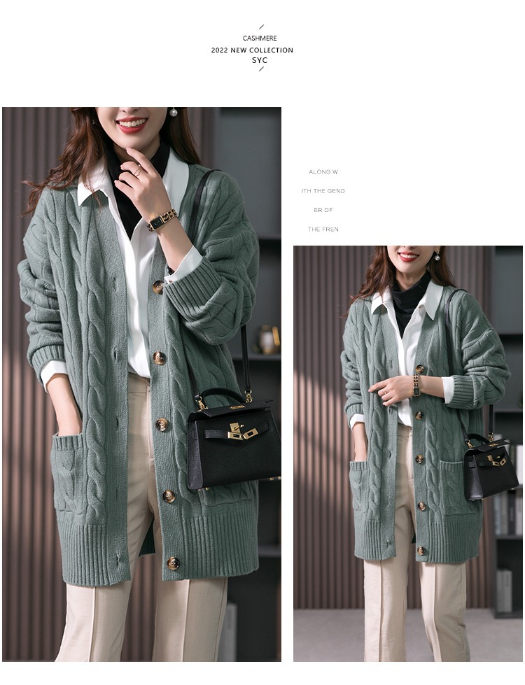 羊绒针织开衫女设计感2023秋季新款宽松羊毛提花外穿毛衣外套
