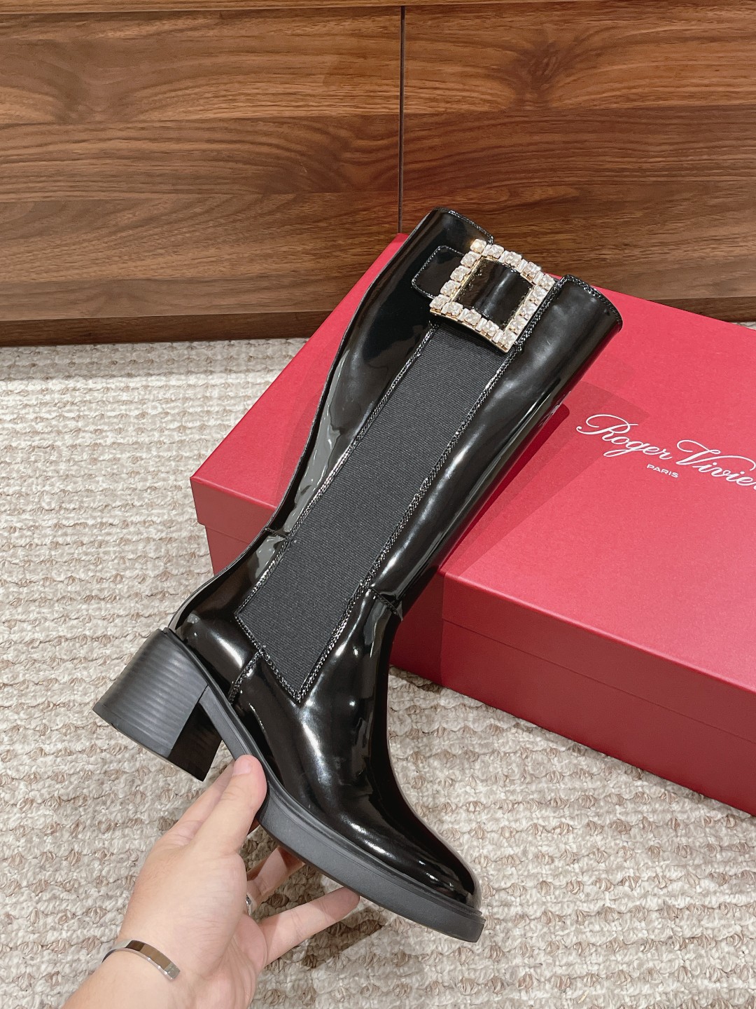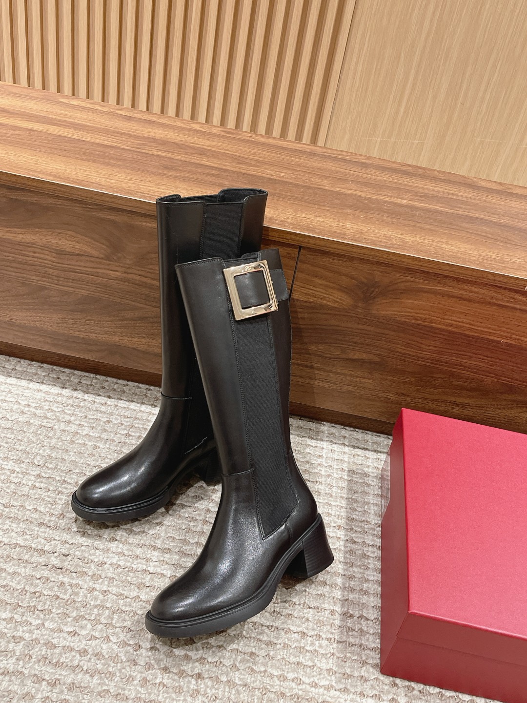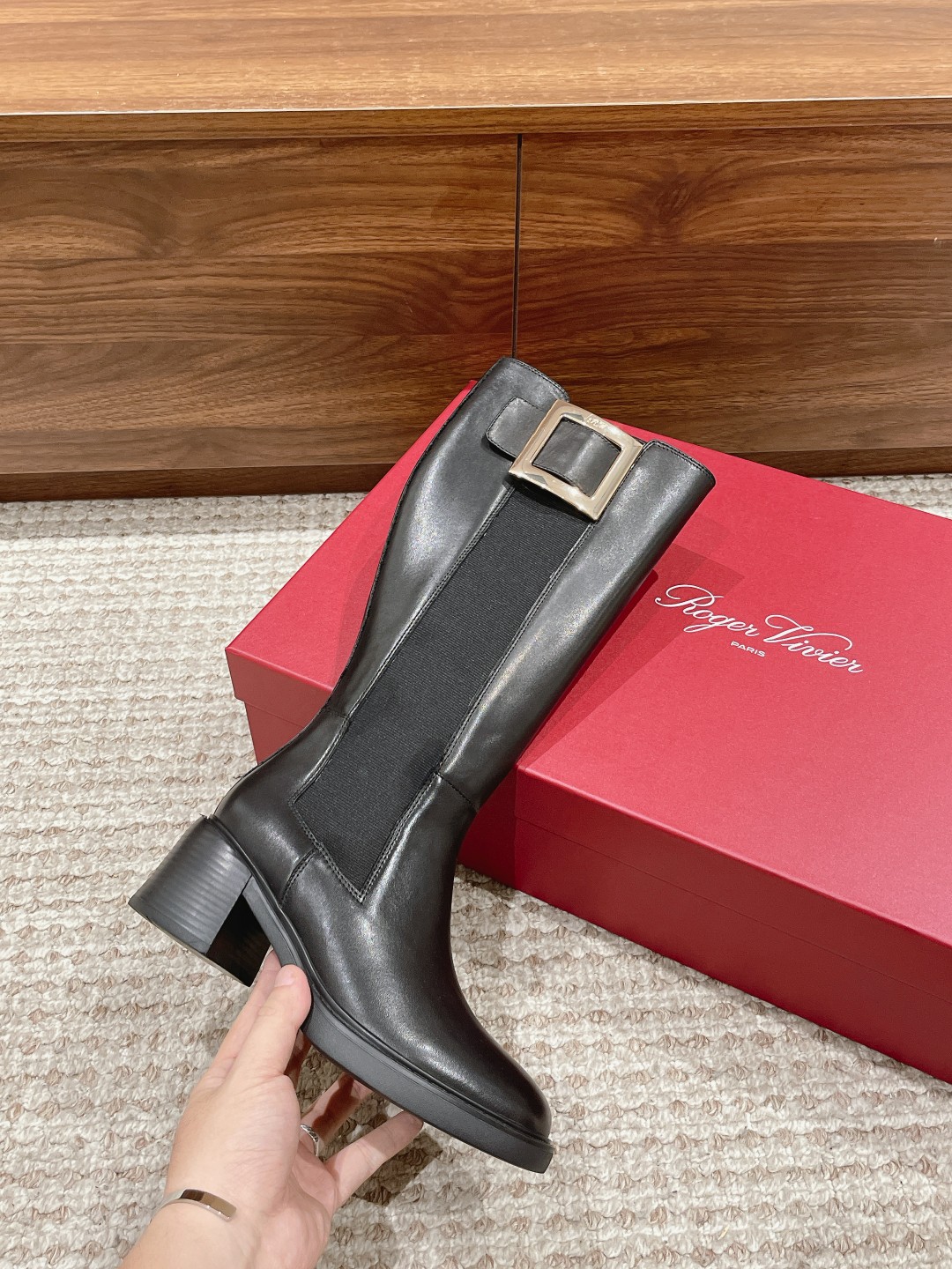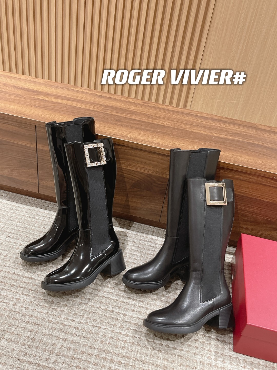 罗杰·维维亚23秋冬方扣粗跟 直筒长靴 简约精致 水钻方扣点缀 气质华丽 小牛皮&开边珠 质感时髦的 原版成型发泡底 脚感轻盈舒适 Size:35-39(40定做不退换)