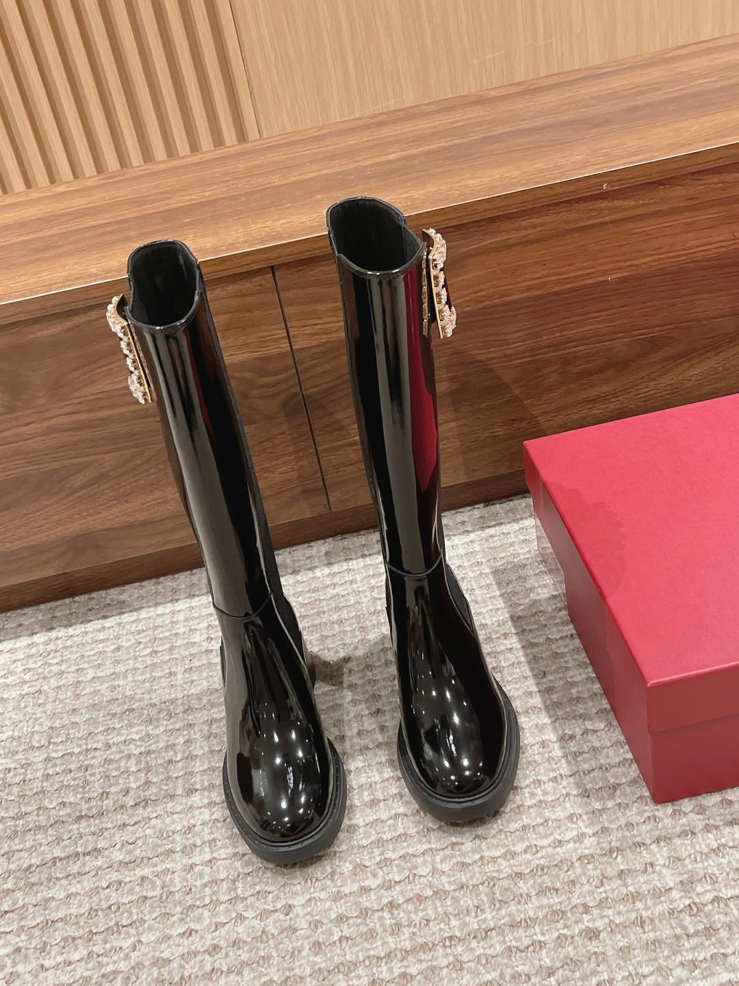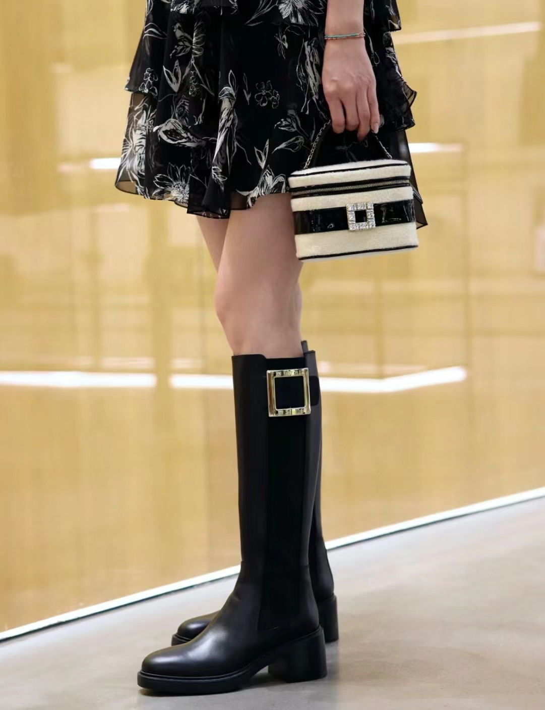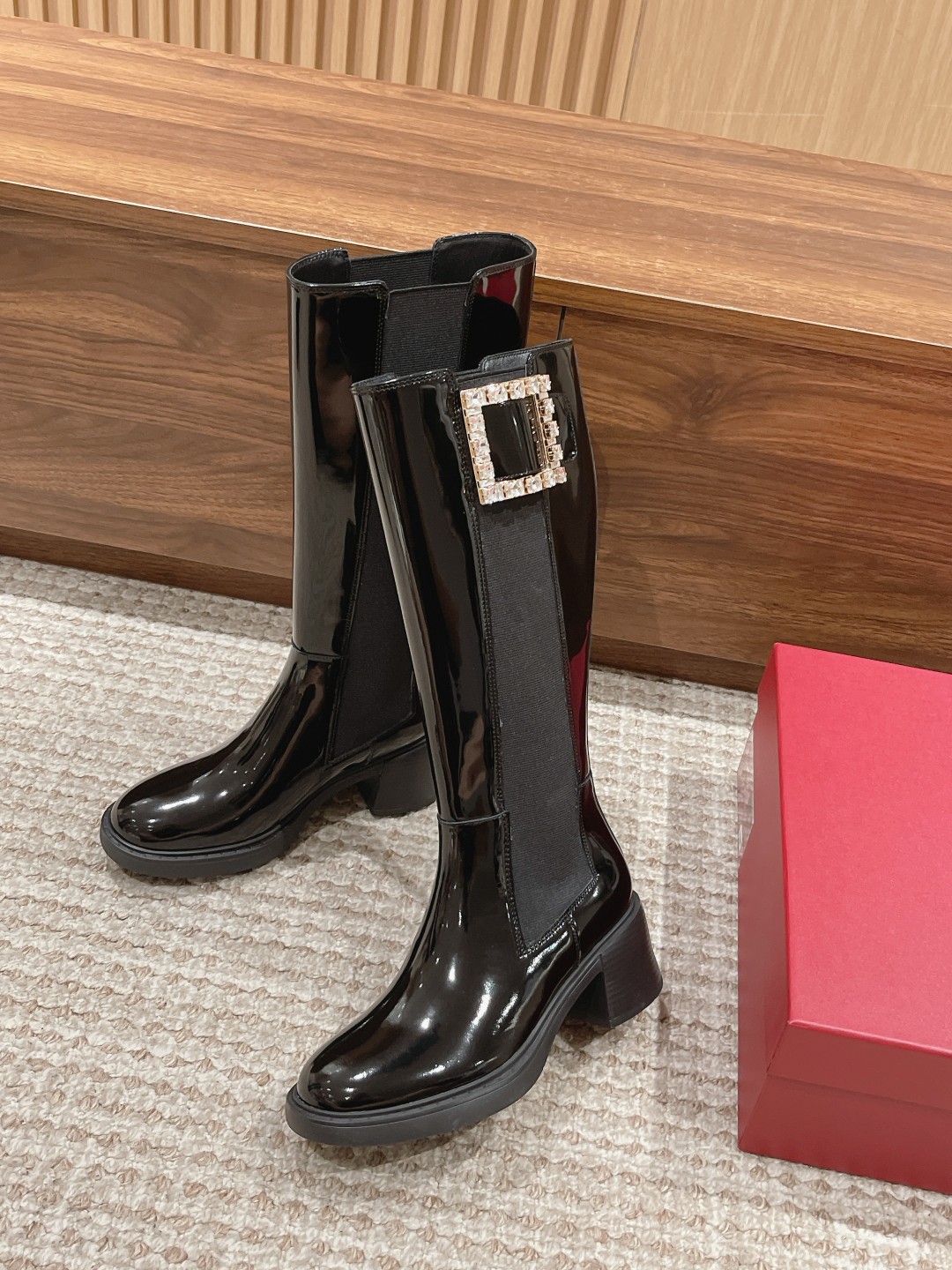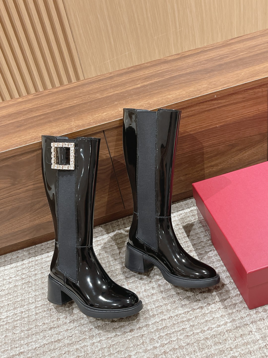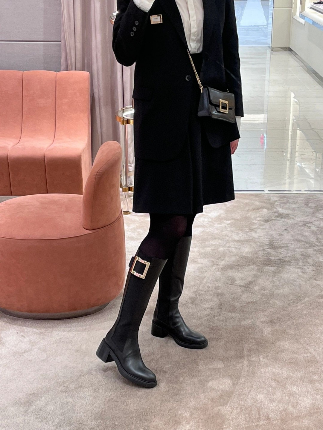 罗杰·维维亚23秋冬方扣粗跟 直筒长靴 简约精致 水钻方扣点缀 气质华丽 小牛皮&开边珠 质感时髦的 原版成型发泡底 脚感轻盈舒适 Size:35-39(40定做不退换)