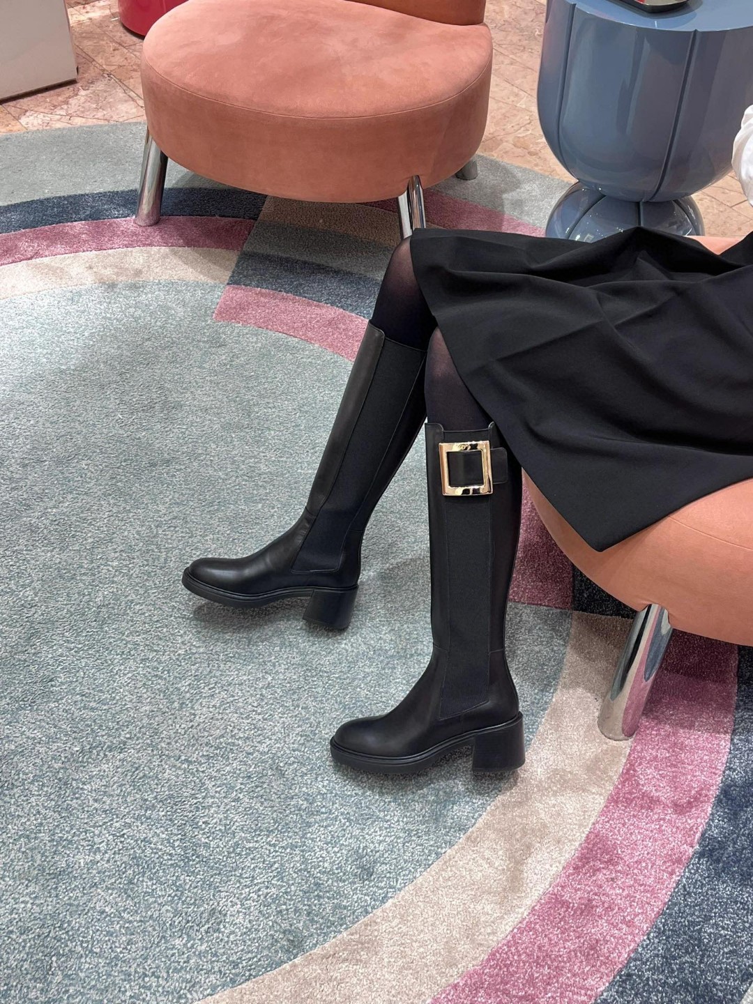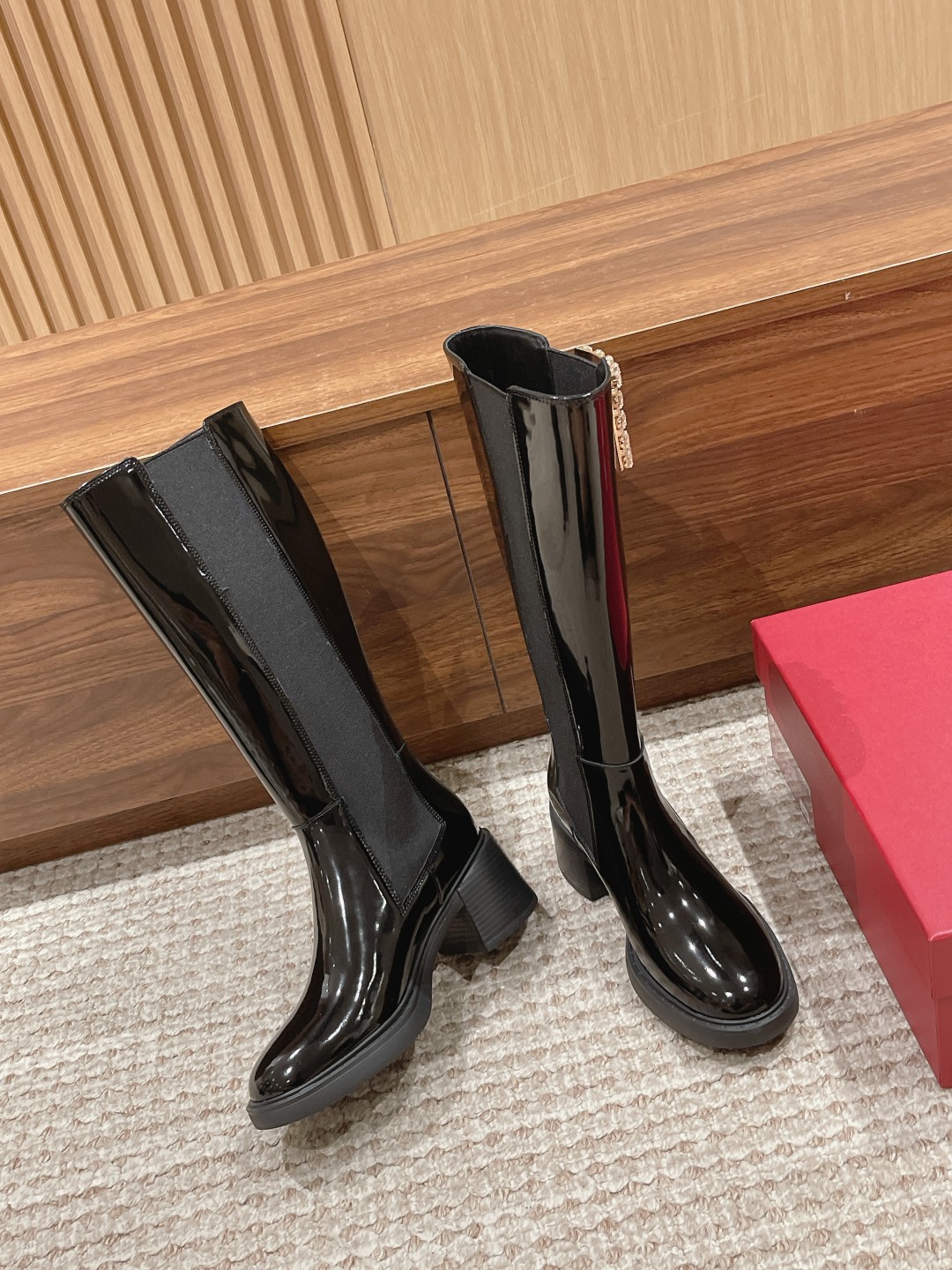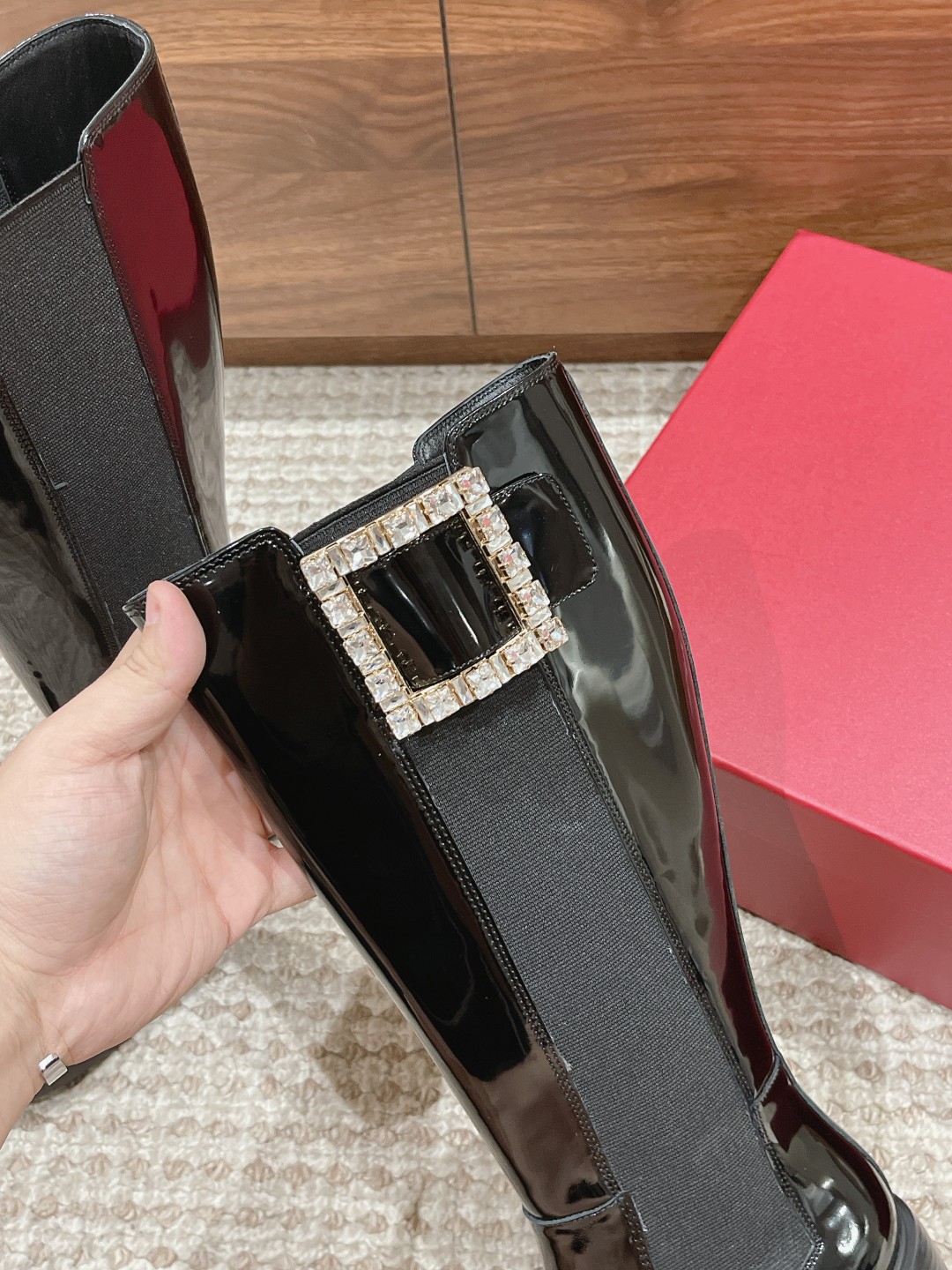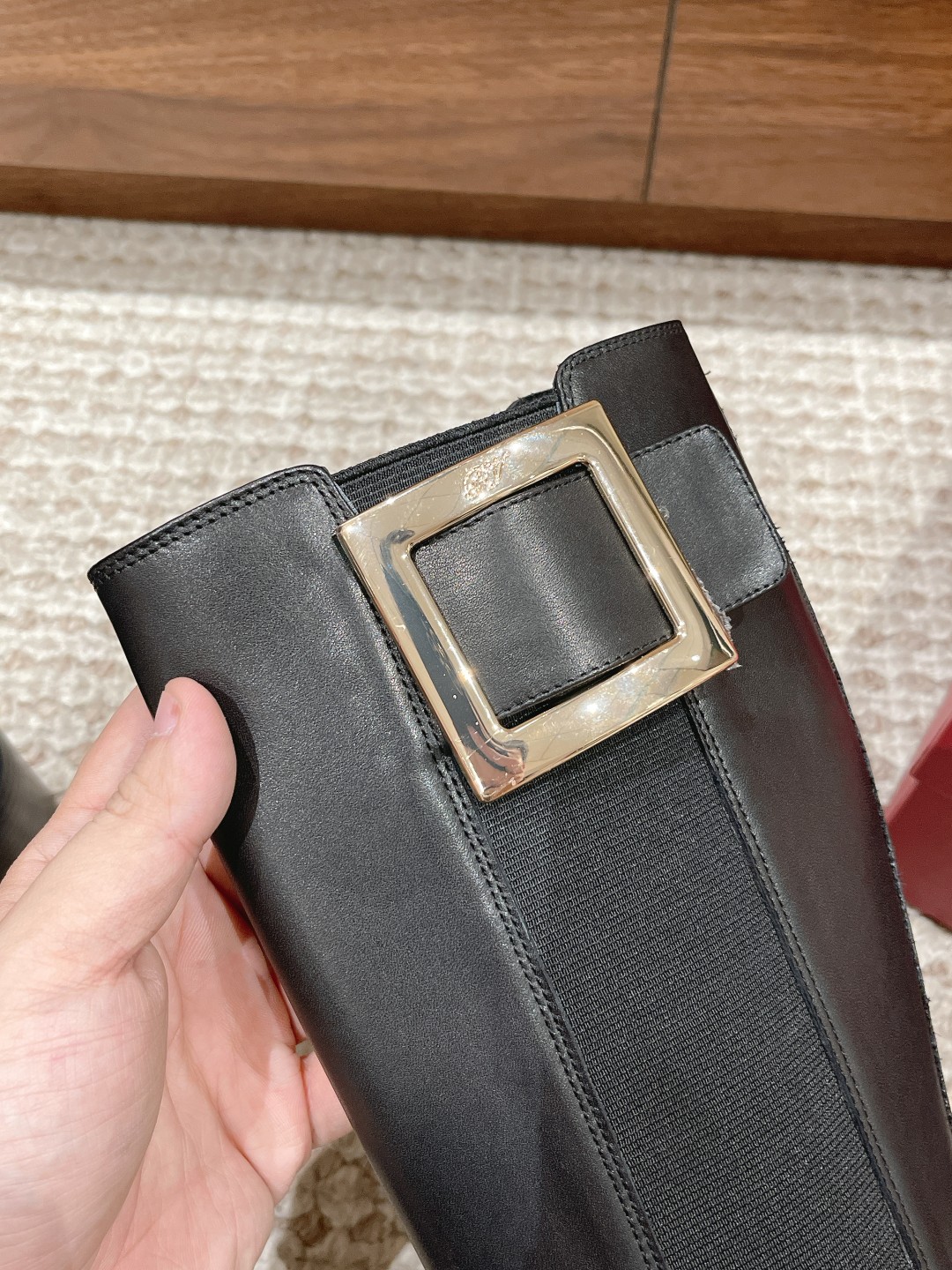 罗杰·维维亚23秋冬方扣粗跟 直筒长靴 简约精致 水钻方扣点缀 气质华丽 小牛皮&开边珠 质感时髦的 原版成型发泡底 脚感轻盈舒适 Size:35-39(40定做不退换)
