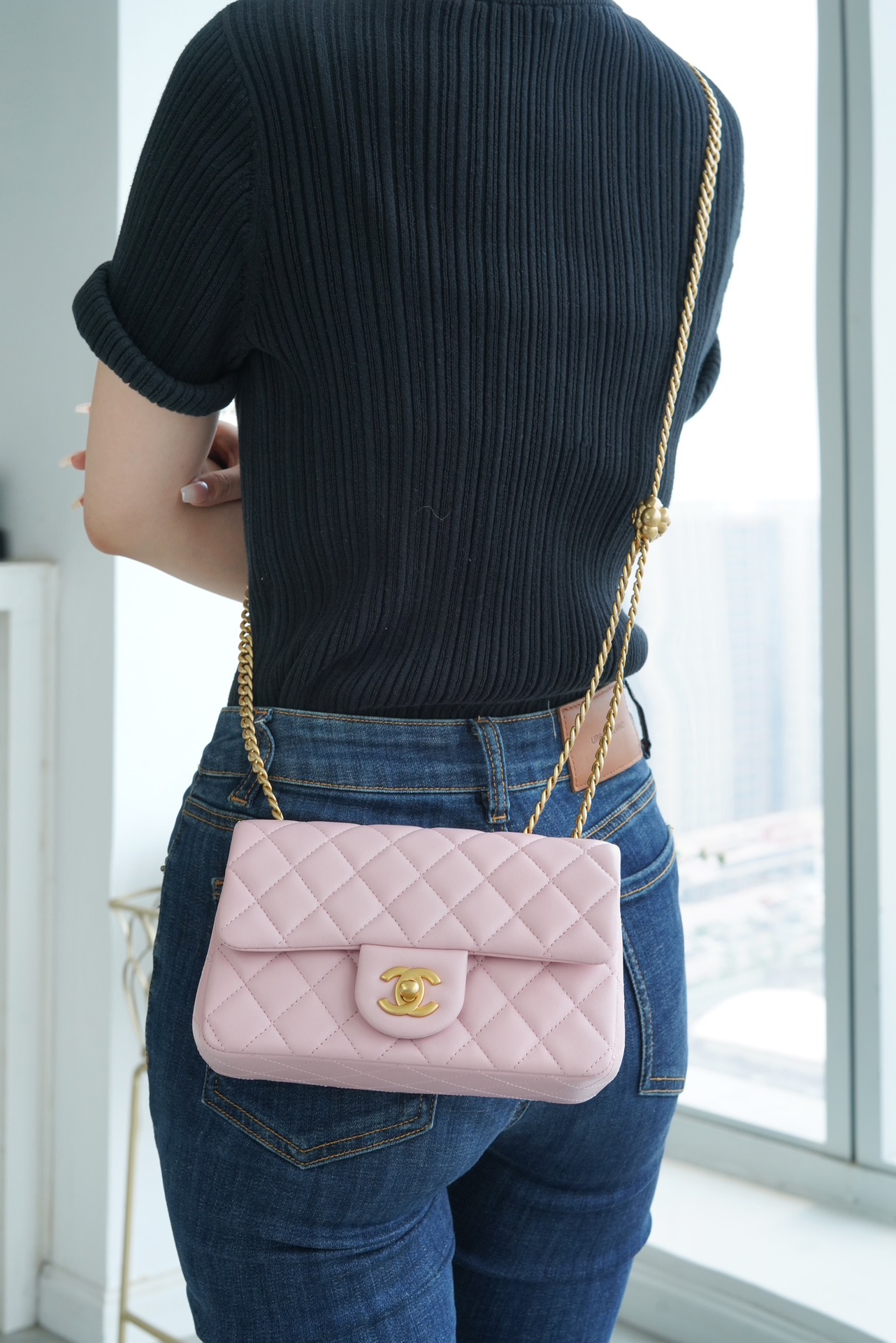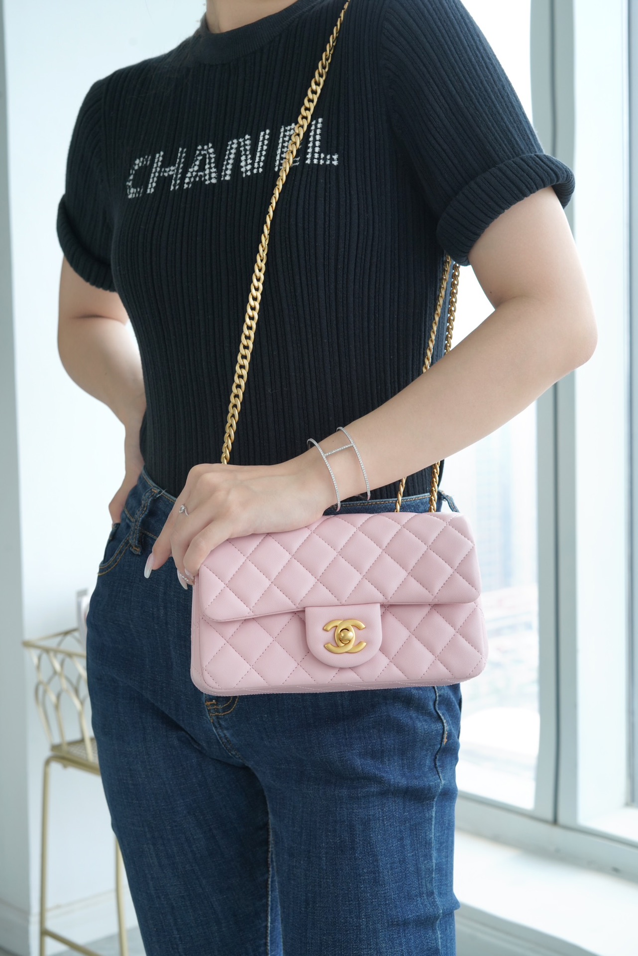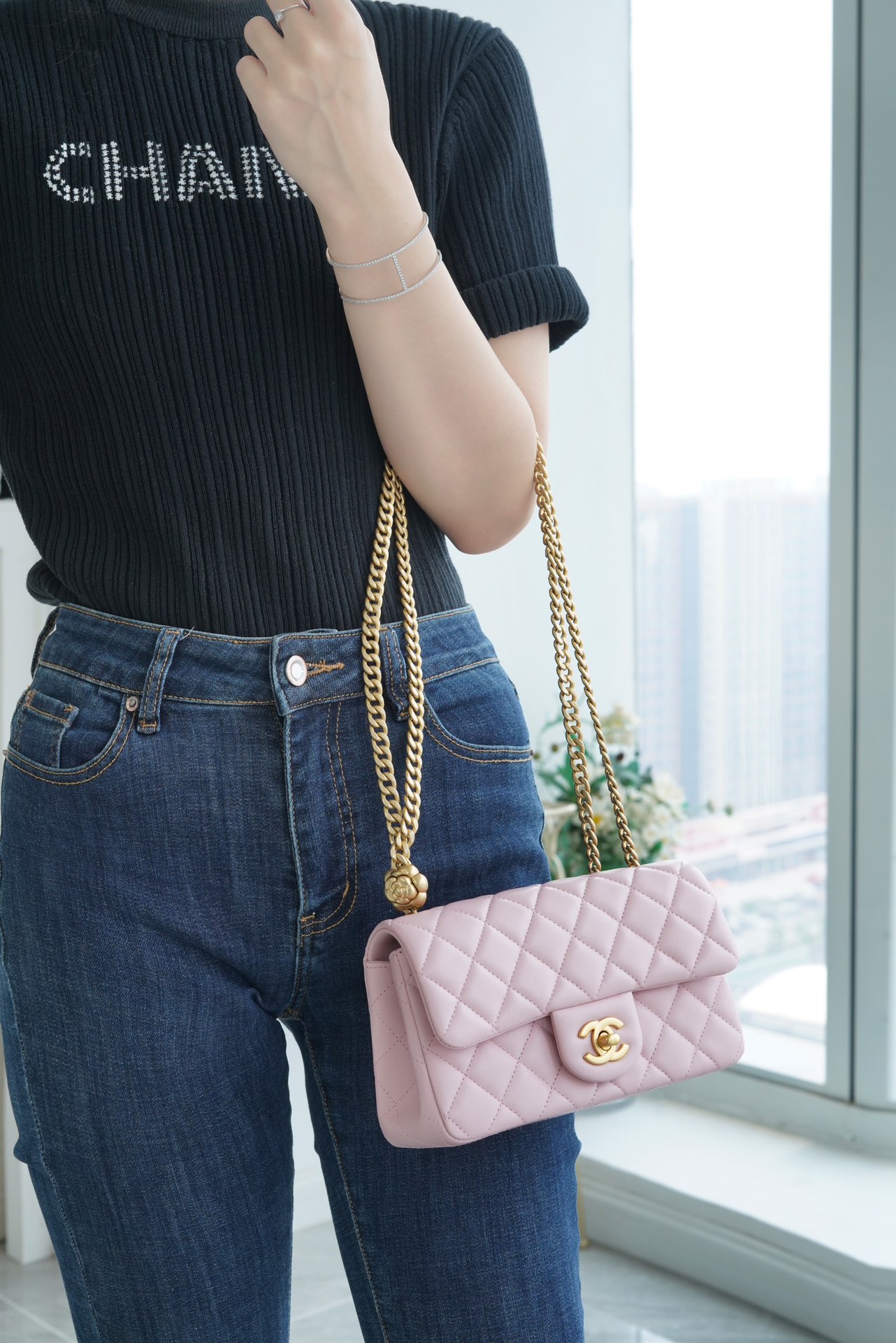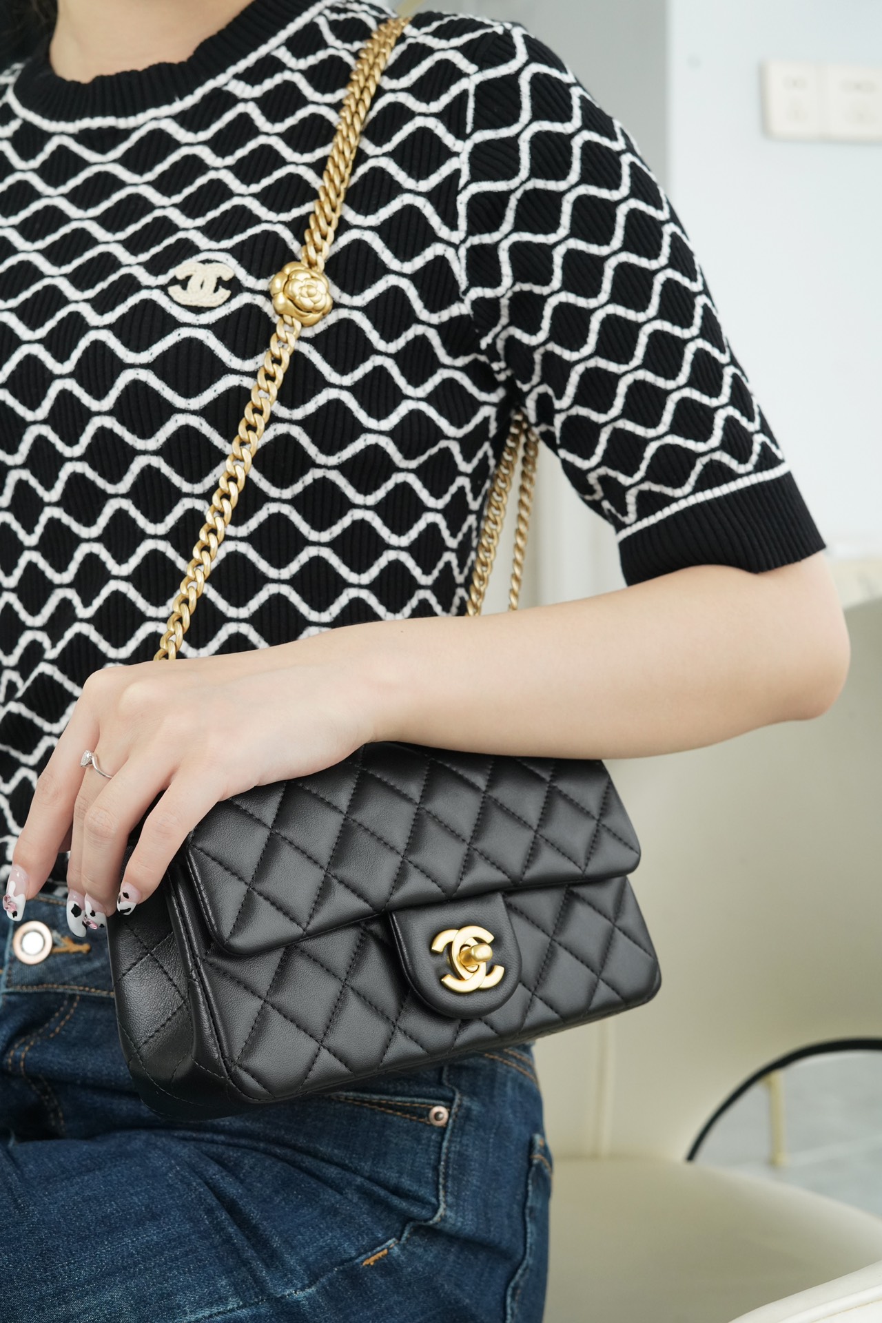 本季的大爆款 ,经典的包型搭配可调节“山茶花”扣,做旧双C ????????设计,五金配以简单的素金链,打破了经典的链条设计,满满的复古感,经典又与众不同~