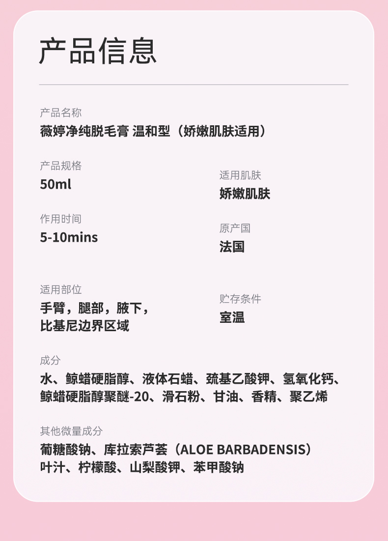 【净纯温和50g】Veet薇婷菁纯脱毛膏温和型娇嫩肌肤适用50ml