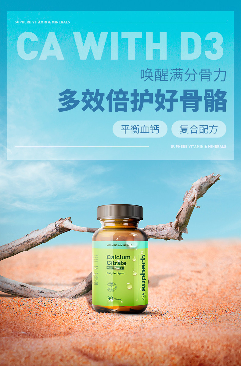 素赫伯进口维生素D3钙复合物改善骨骼强健补充钙质中老年促进吸收