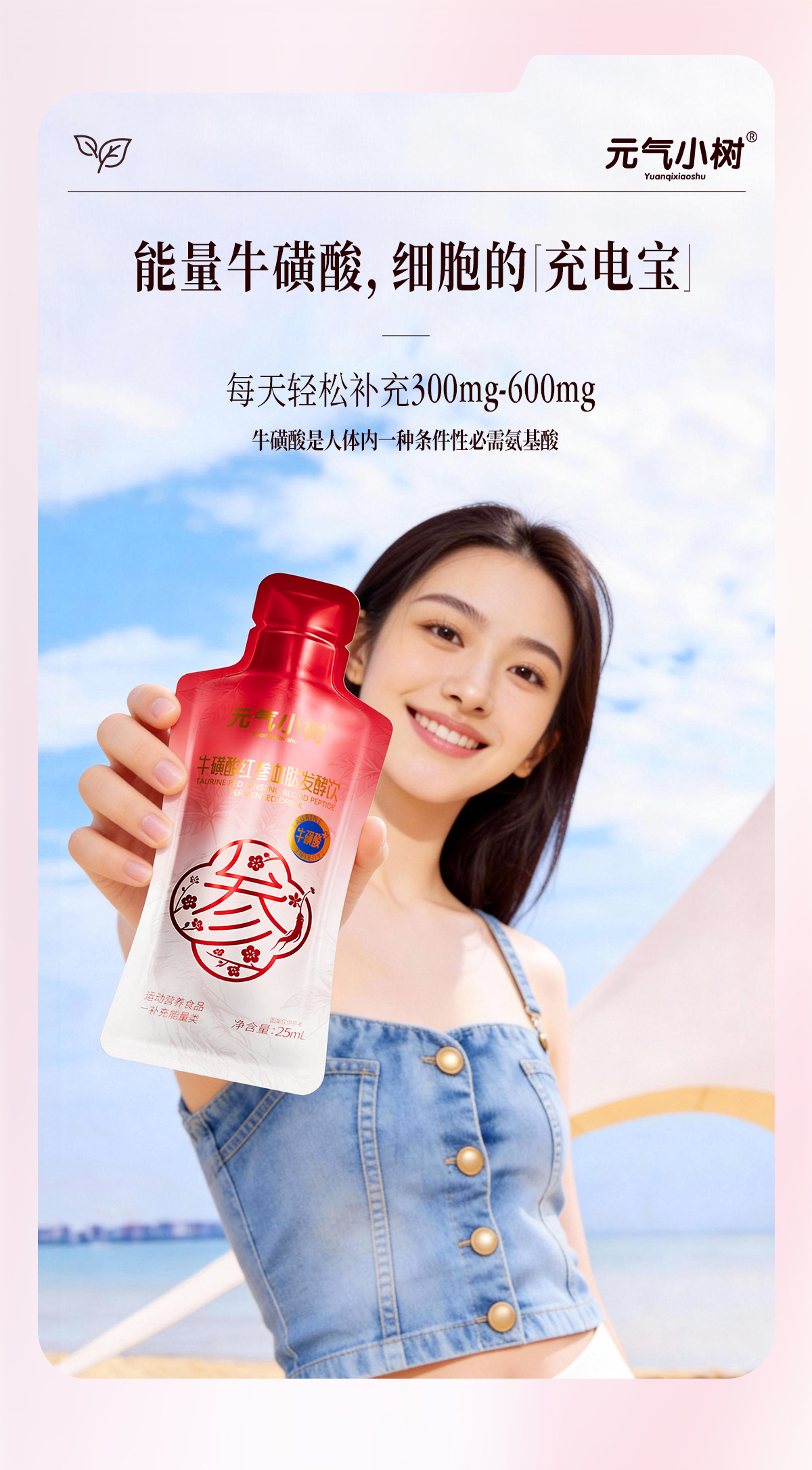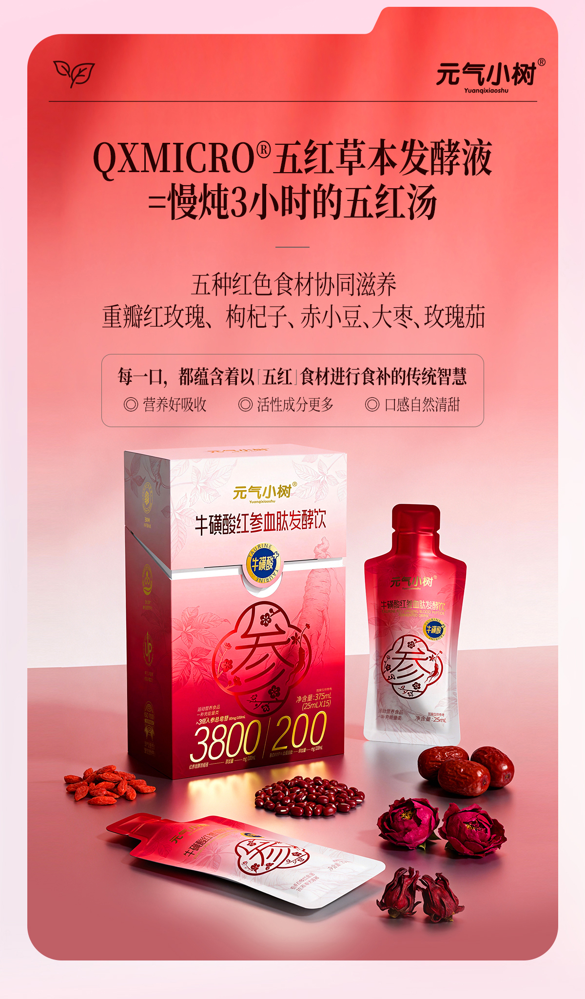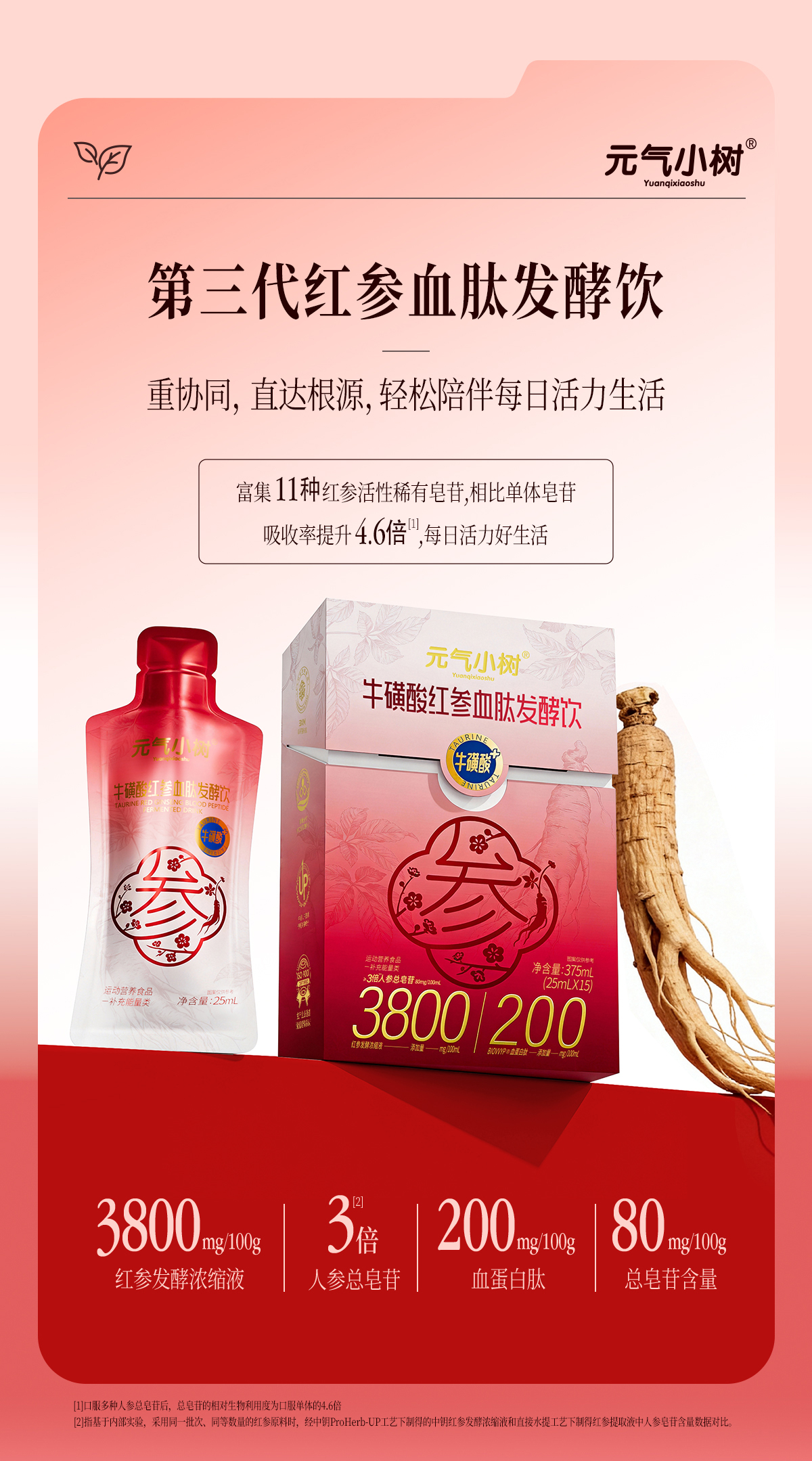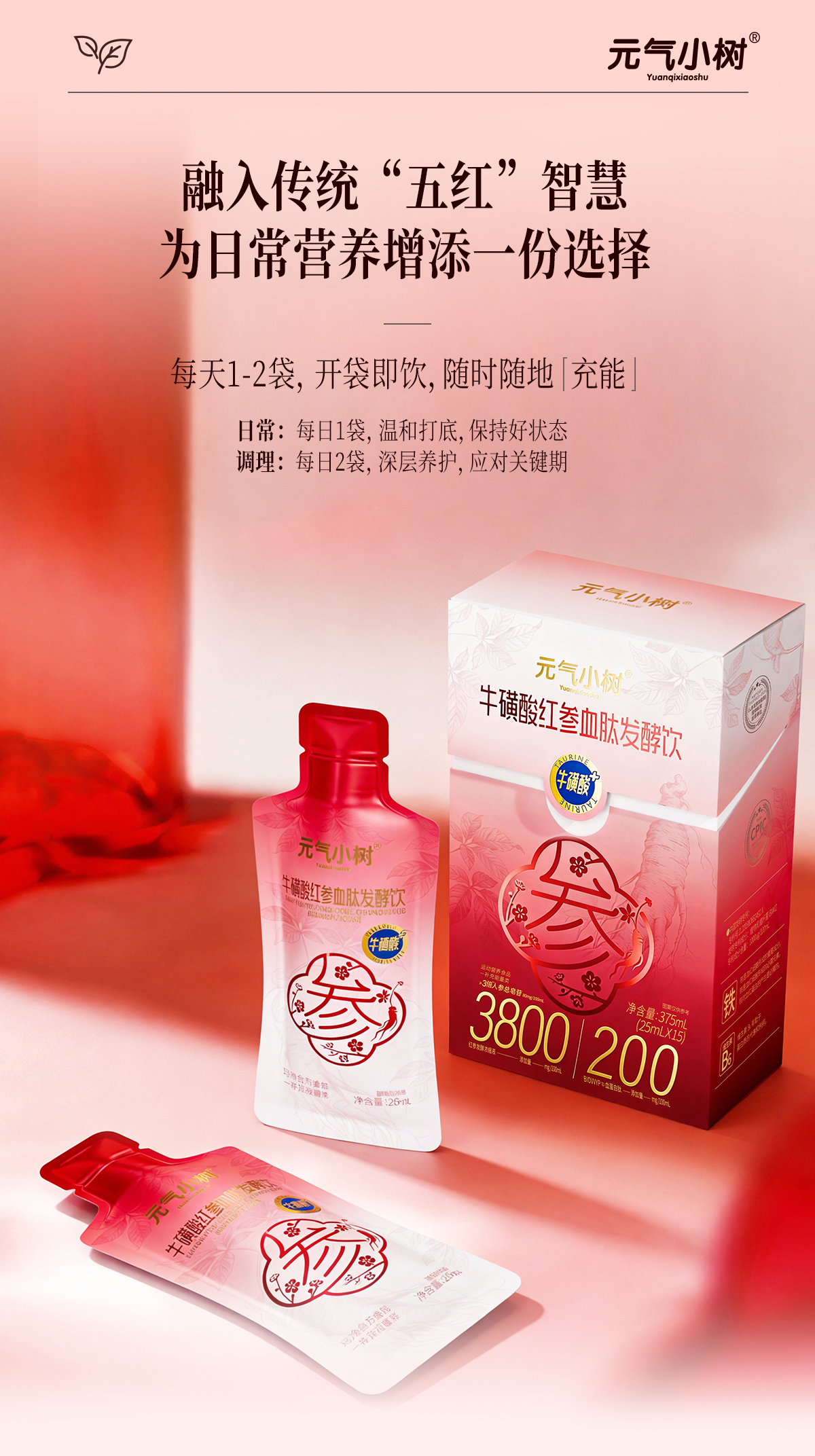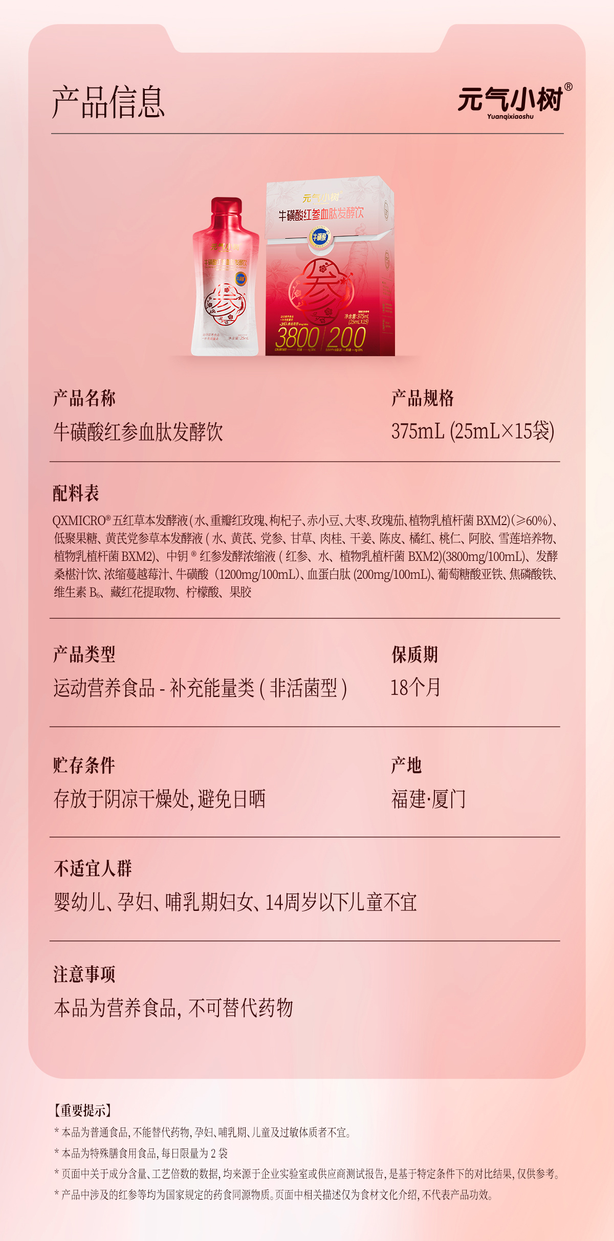 元气小树牛磺酸红参血肽发酵饮25ml*15袋