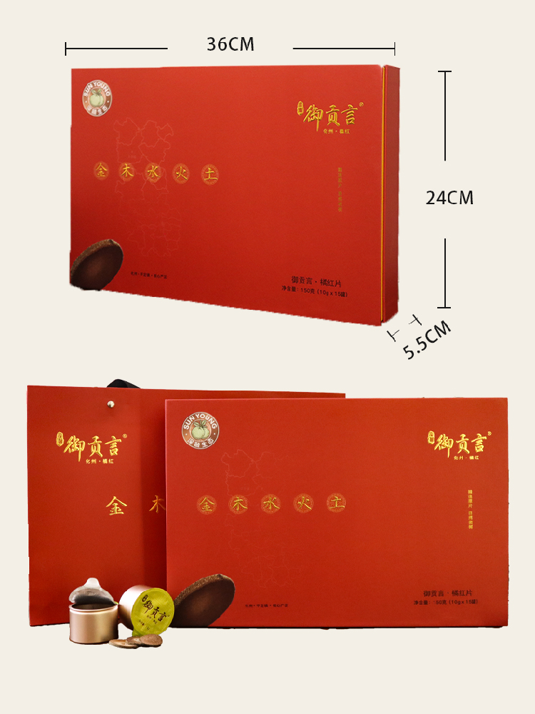 御贡言五行蕴藏,化州橘红臻礼|金木水土火礼盒装.农药残留不得检出【4.4-4.5不发货,6号正常发货】