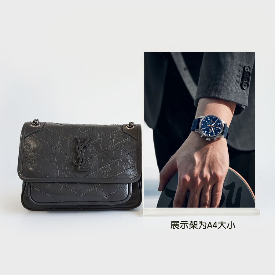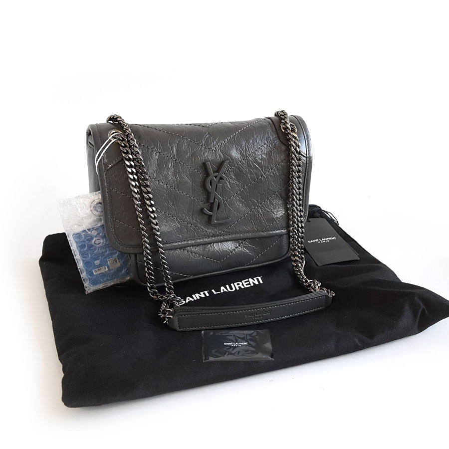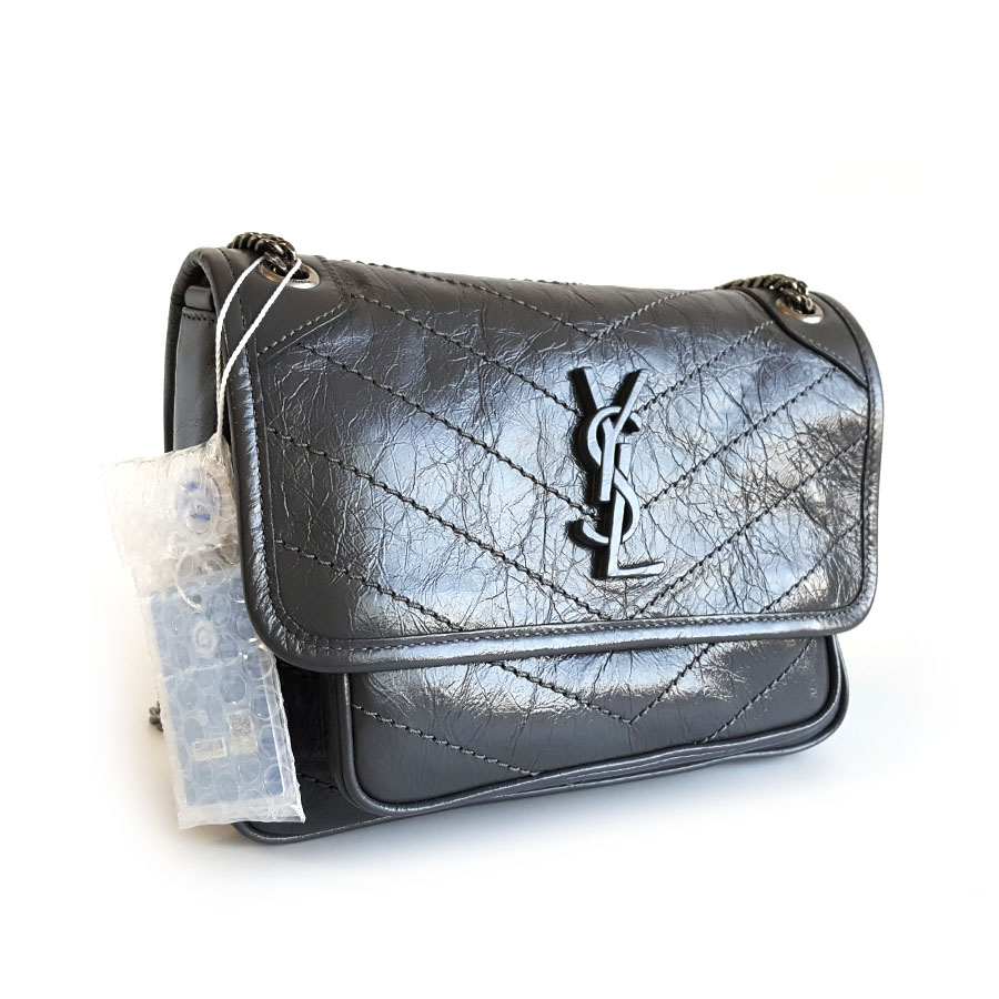 【闲置未使用】YSL圣罗兰NIKI 633160小号灰色D扣baby niki 链条包单肩斜挎包女士140126TJ03