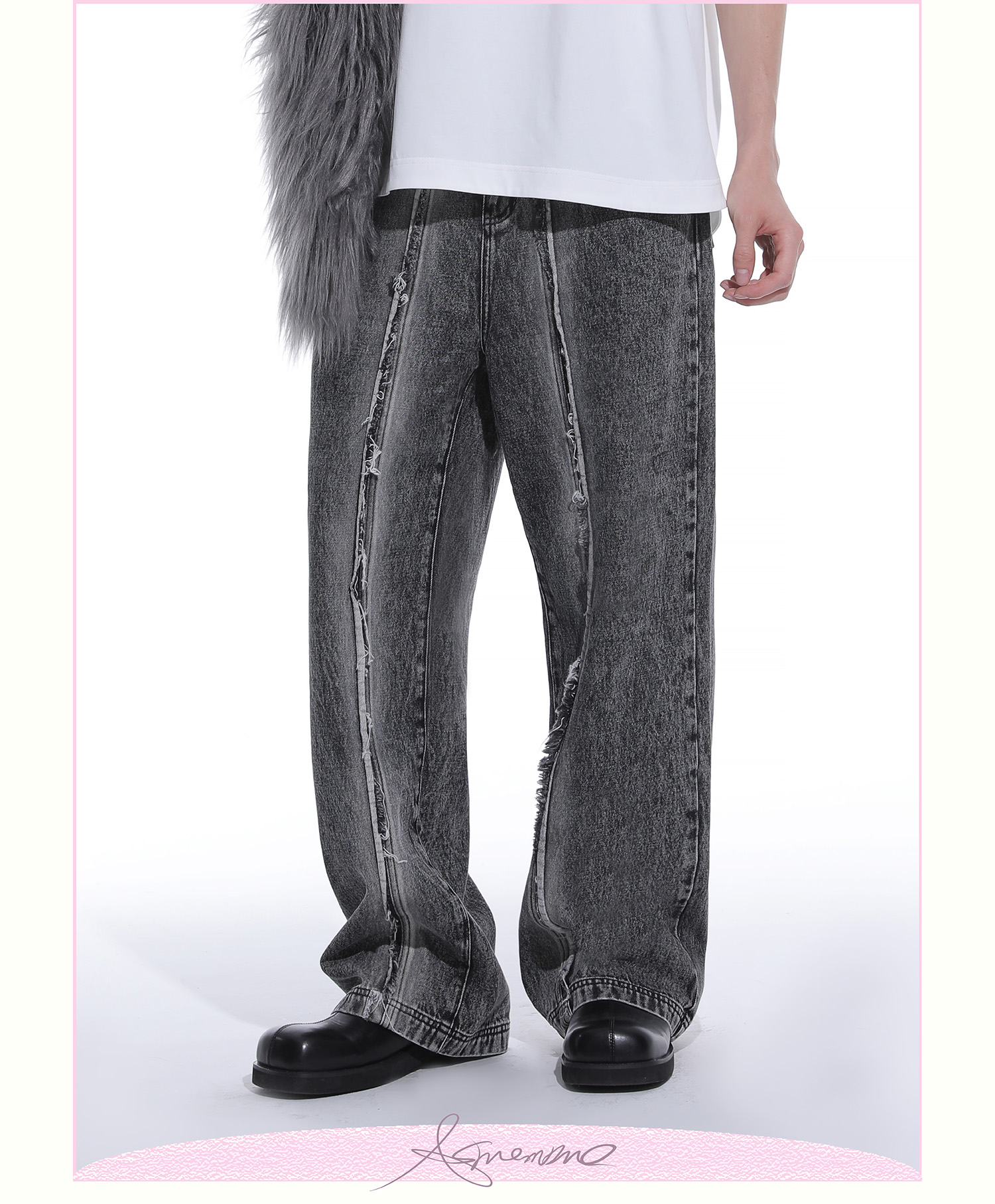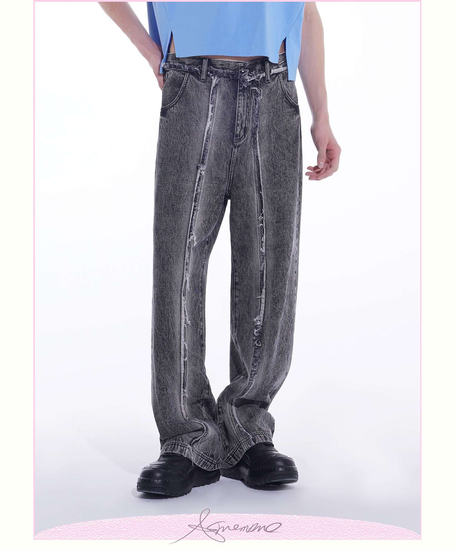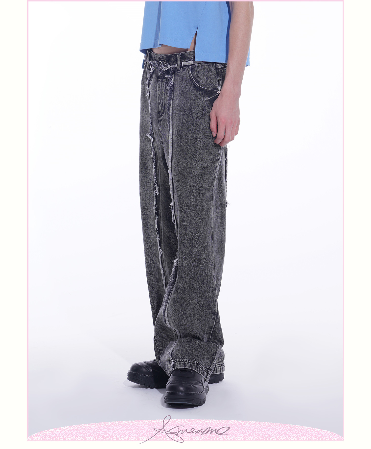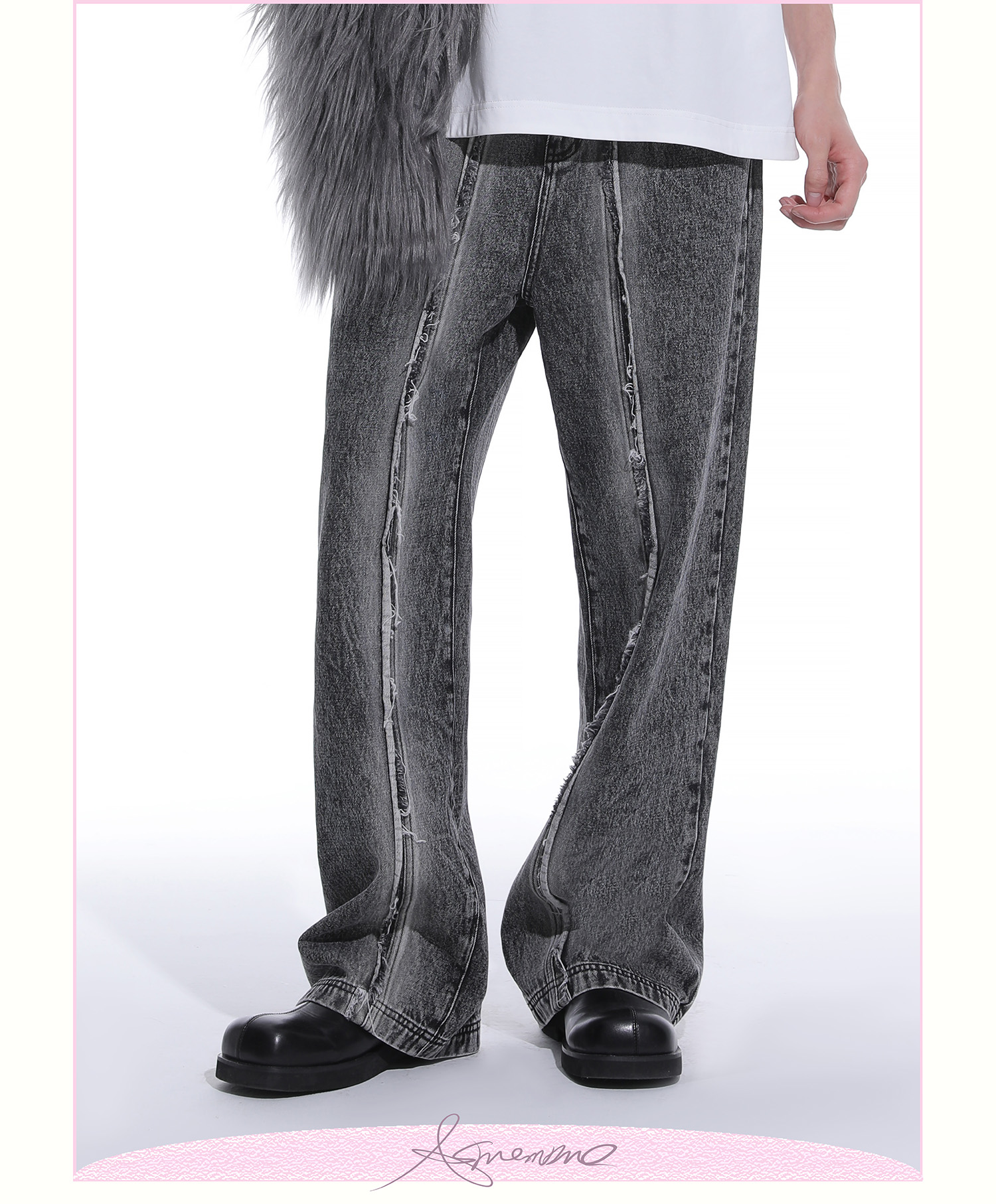 ASMEMMO咦哇•“气泡美式”水洗毛须微喇叭牛仔裤阔腿宽松直筒裤