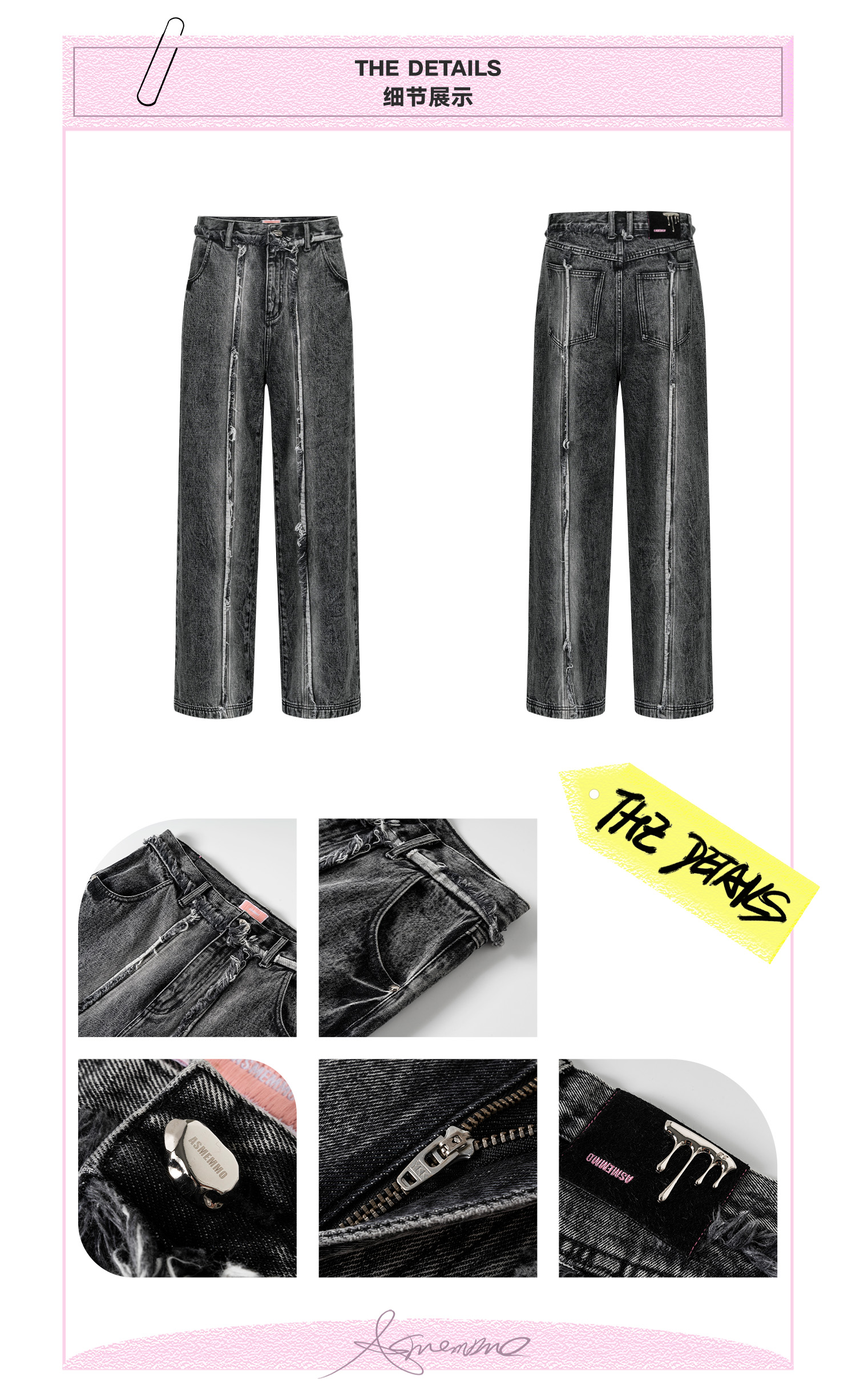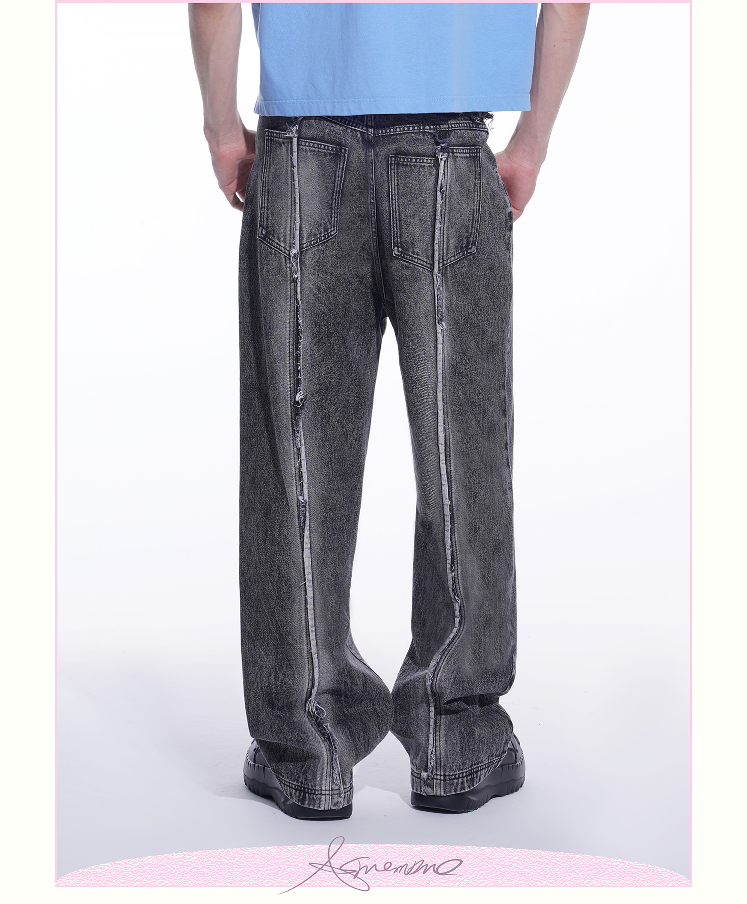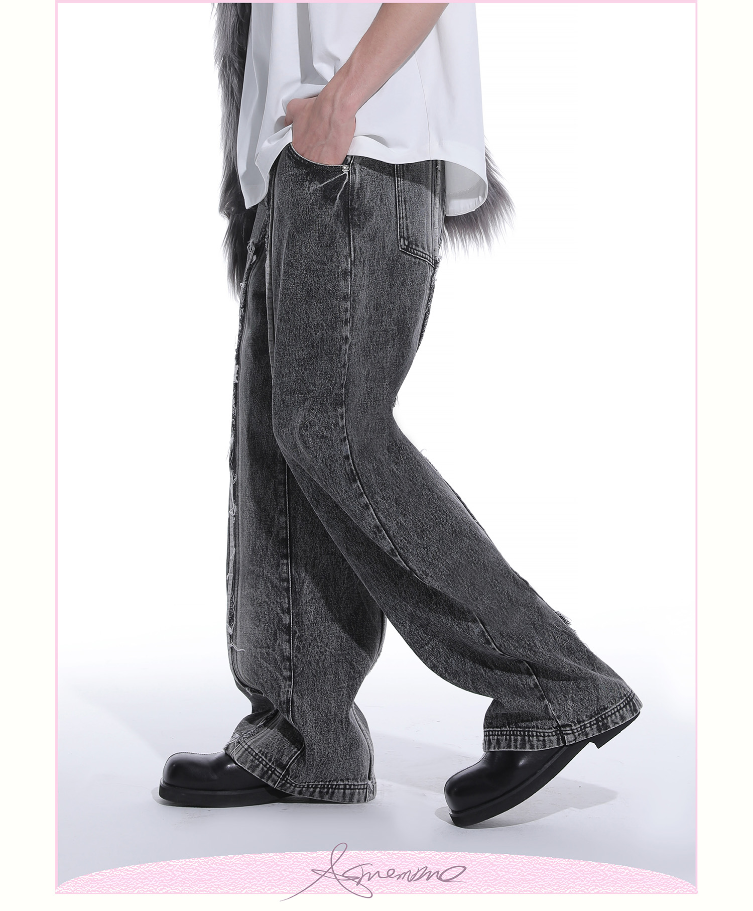 ASMEMMO咦哇•“气泡美式”水洗毛须微喇叭牛仔裤阔腿宽松直筒裤
