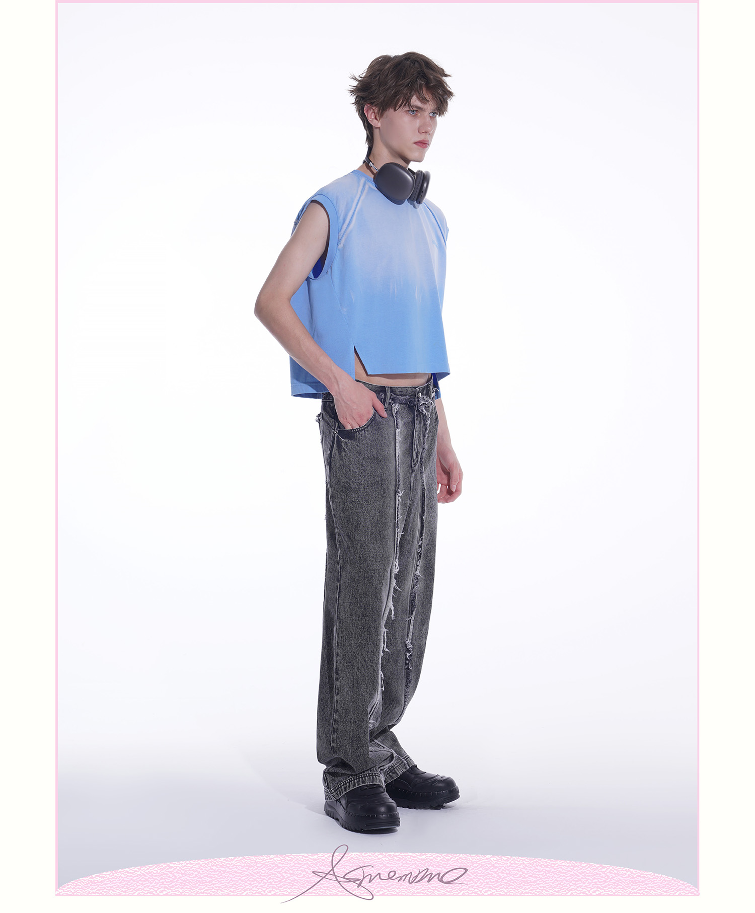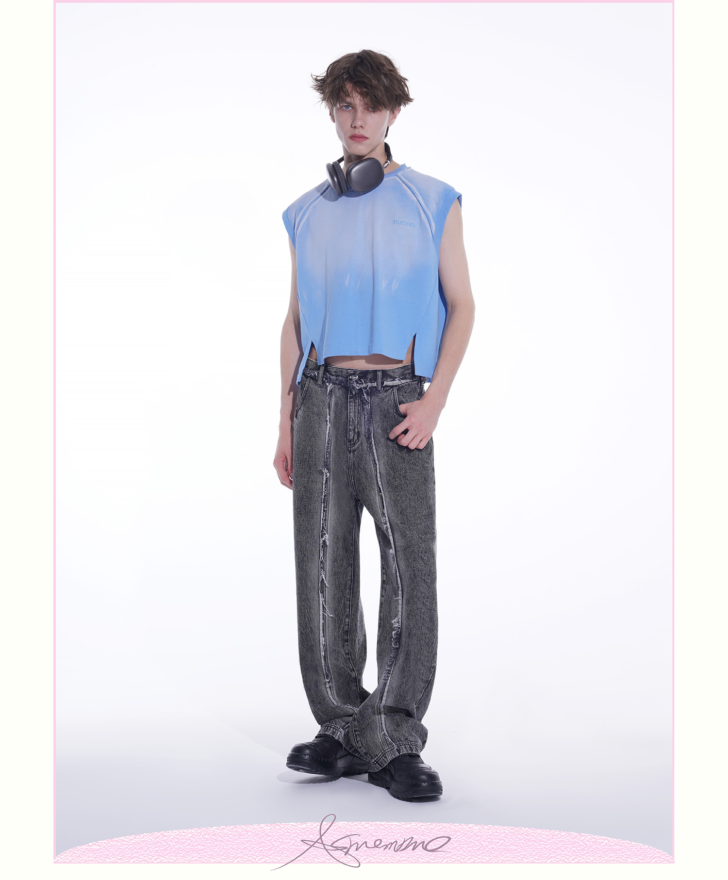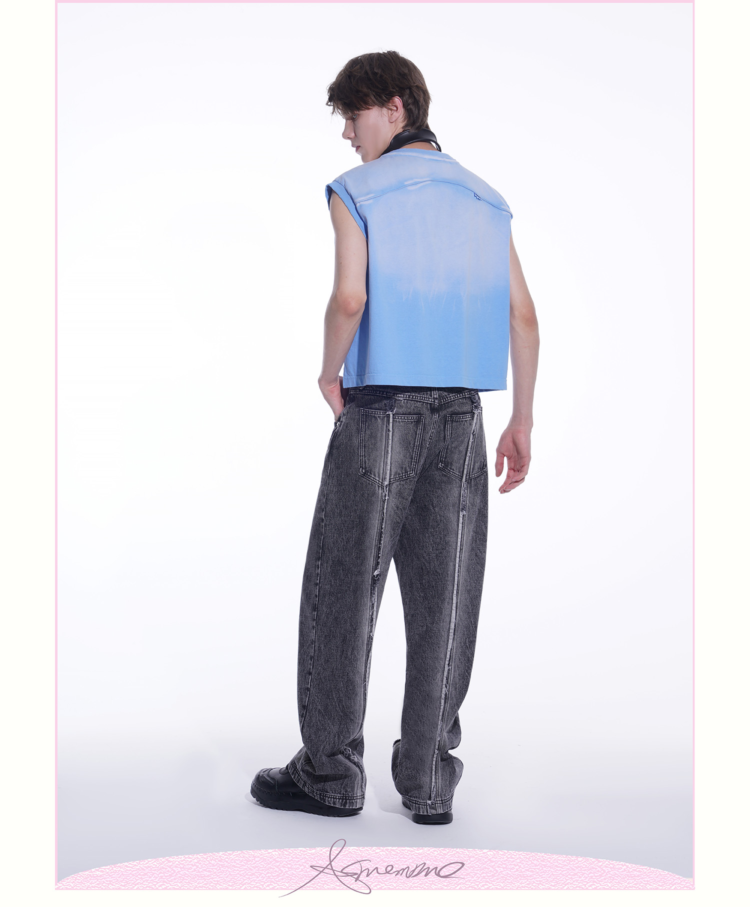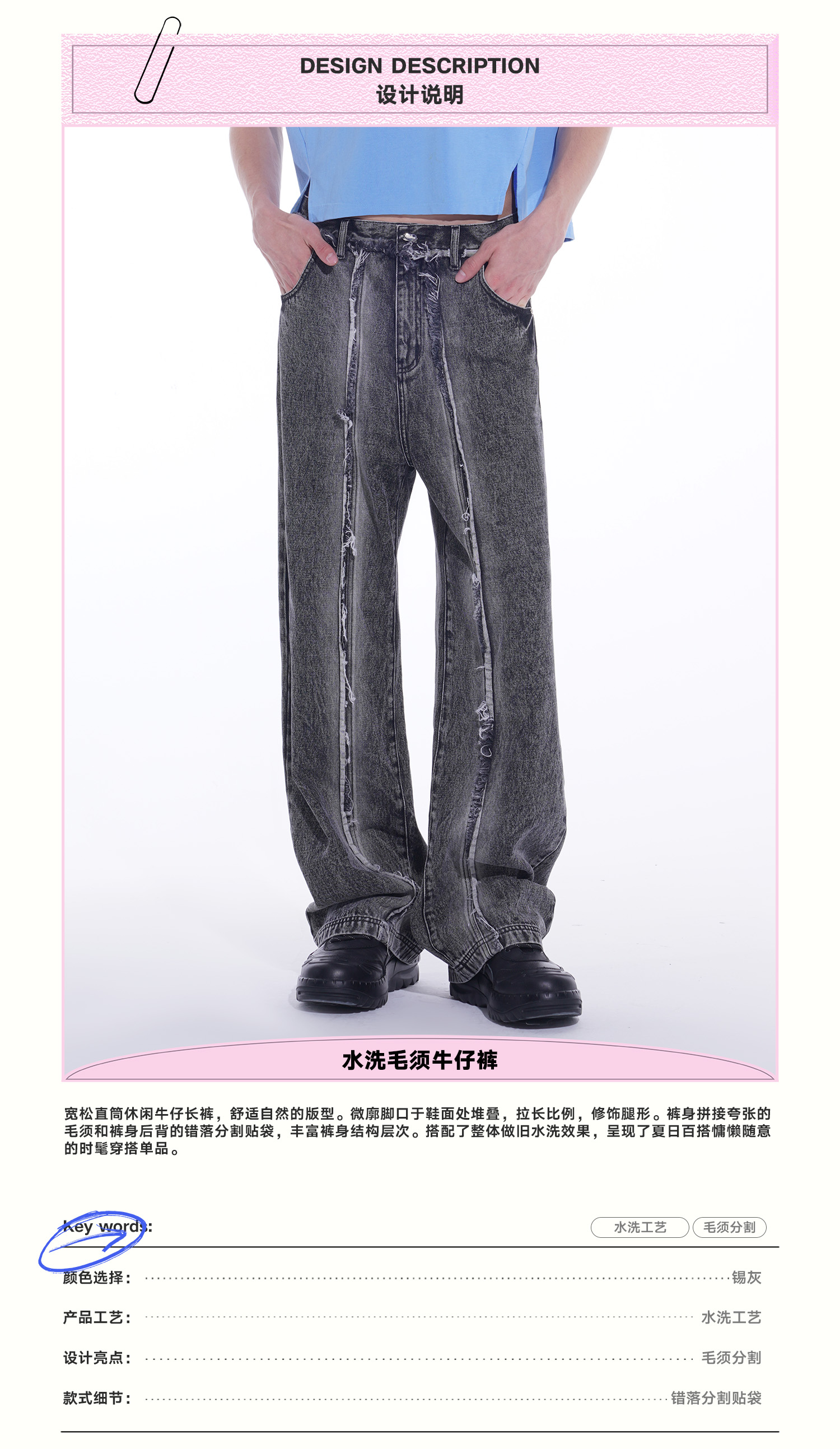 ASMEMMO咦哇•“气泡美式”水洗毛须微喇叭牛仔裤阔腿宽松直筒裤