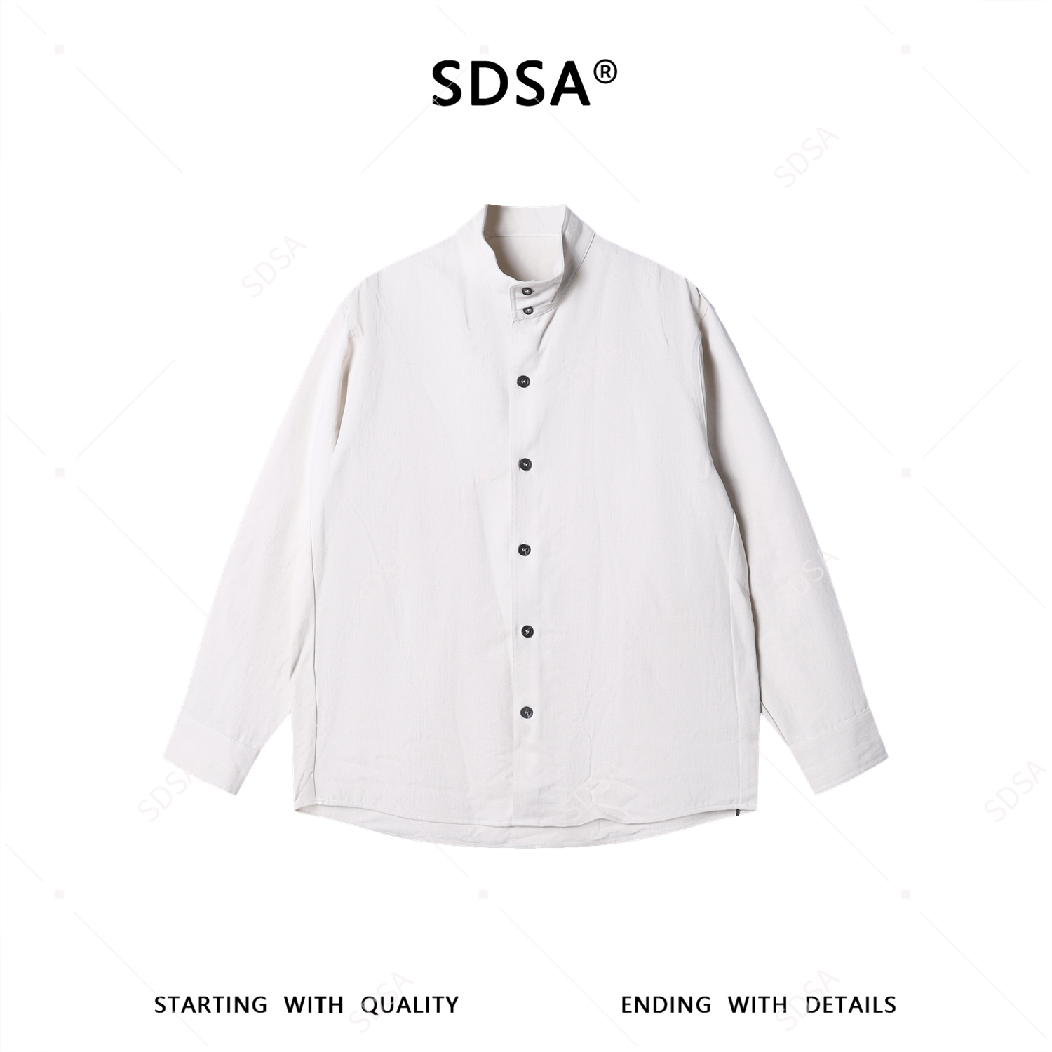 9219SDSA男士秋冬新款痞帅男装休闲时尚纽扣立领长袖衬衫百搭纯色衬衣