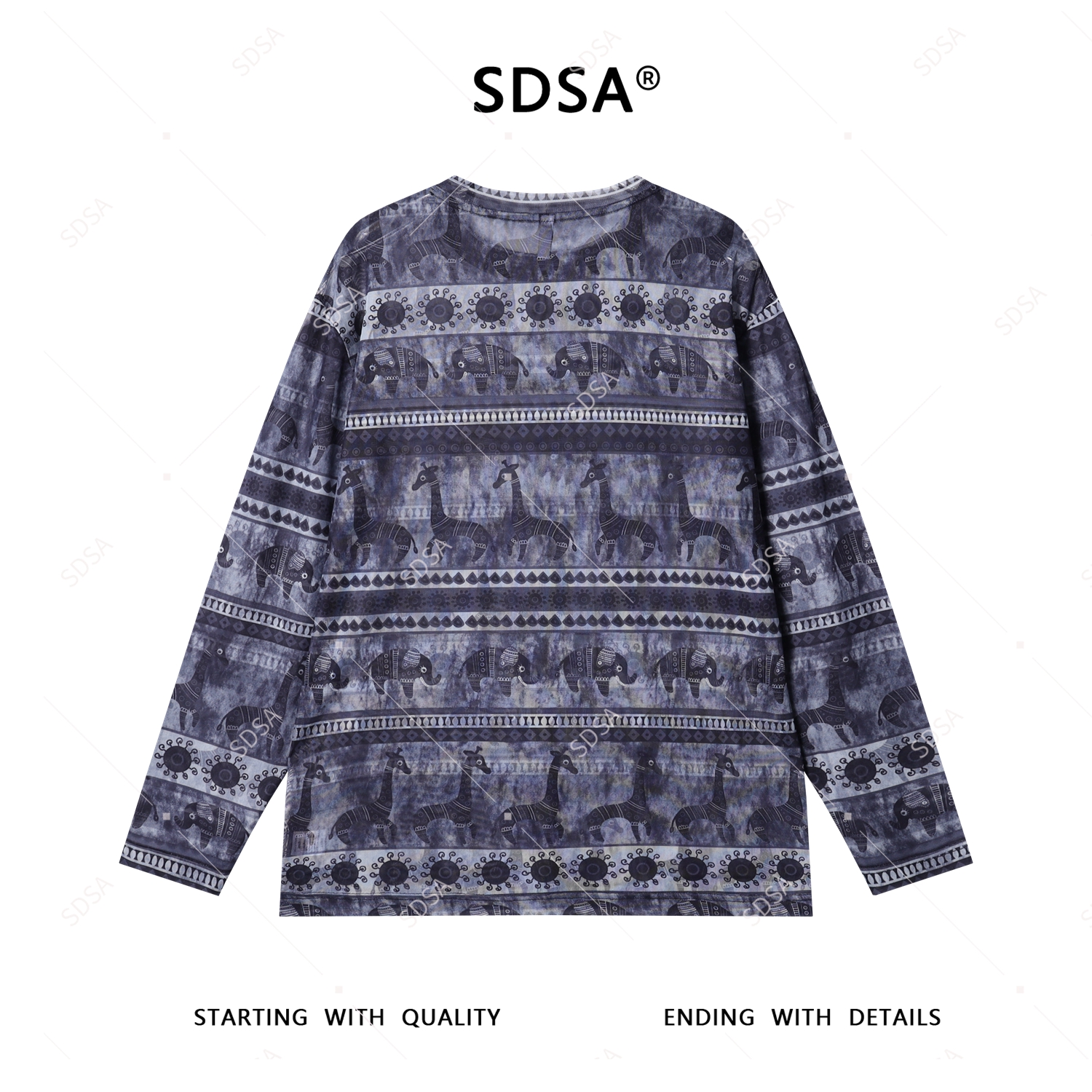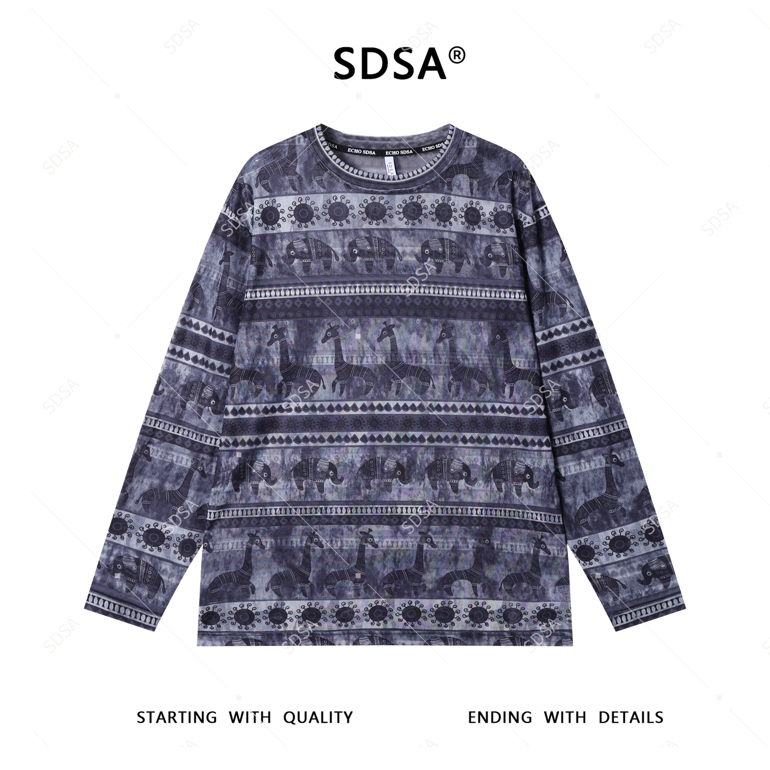 T4261SDSA夏季新款男士痞帅潮牌动物图案设计圆领长袖T恤时尚百搭上衣