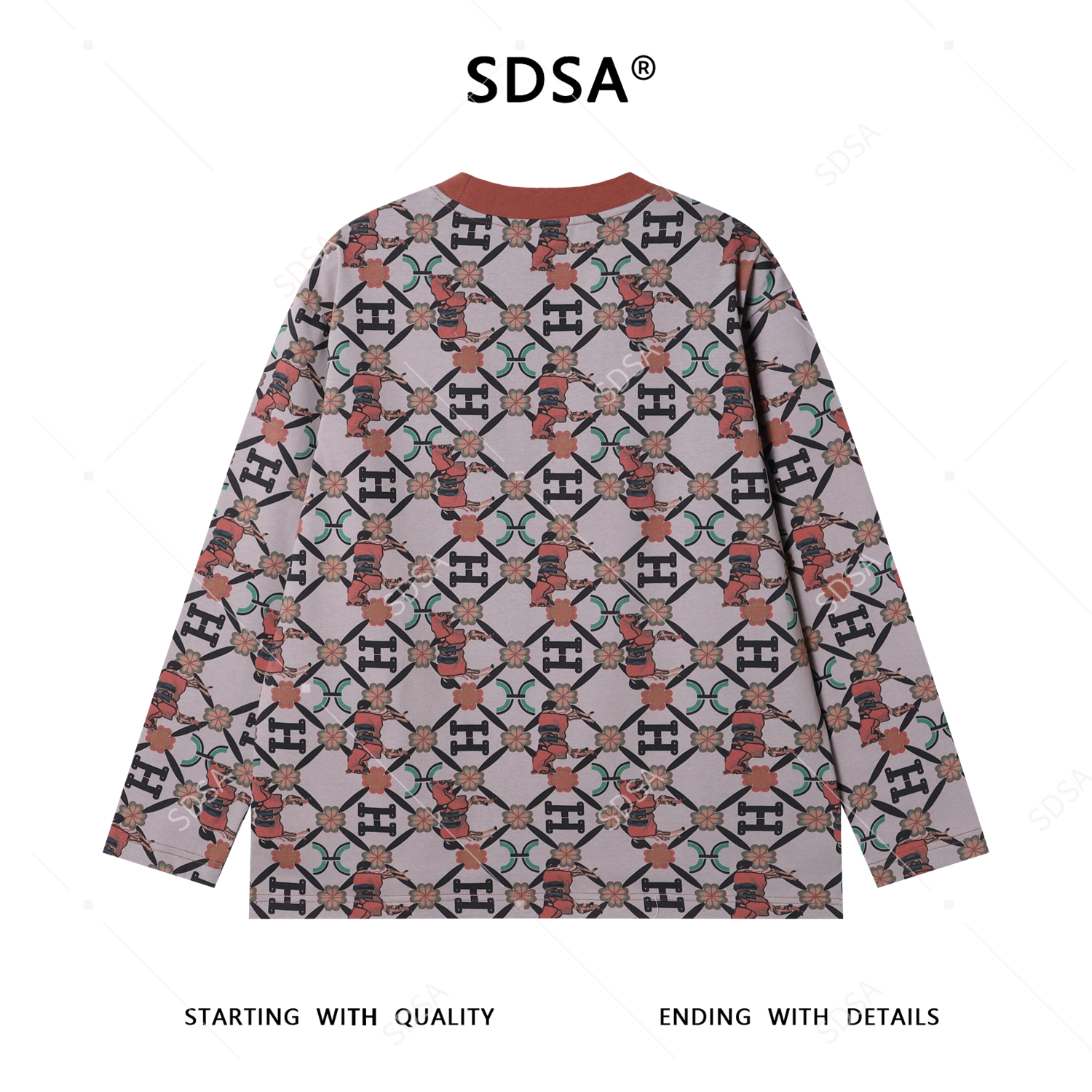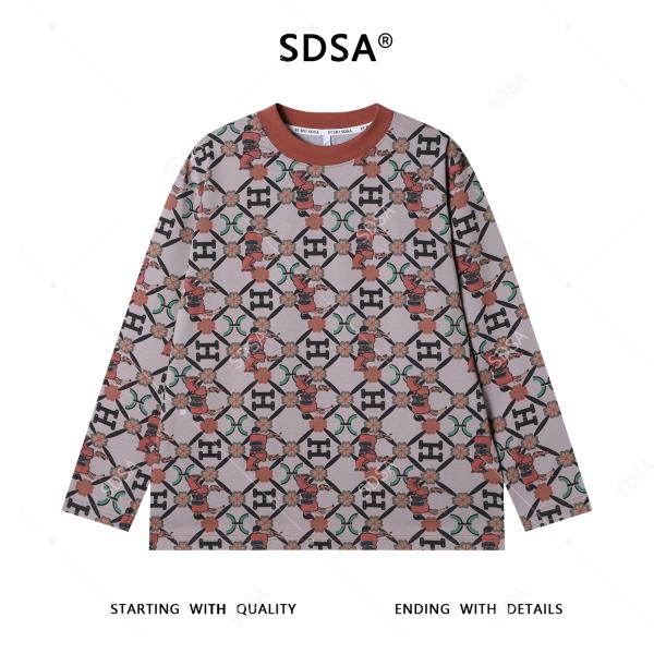 T4815SDSA男士秋冬新款痞帅男装潮牌满印字母花卉圆领长袖T恤时尚宽松
