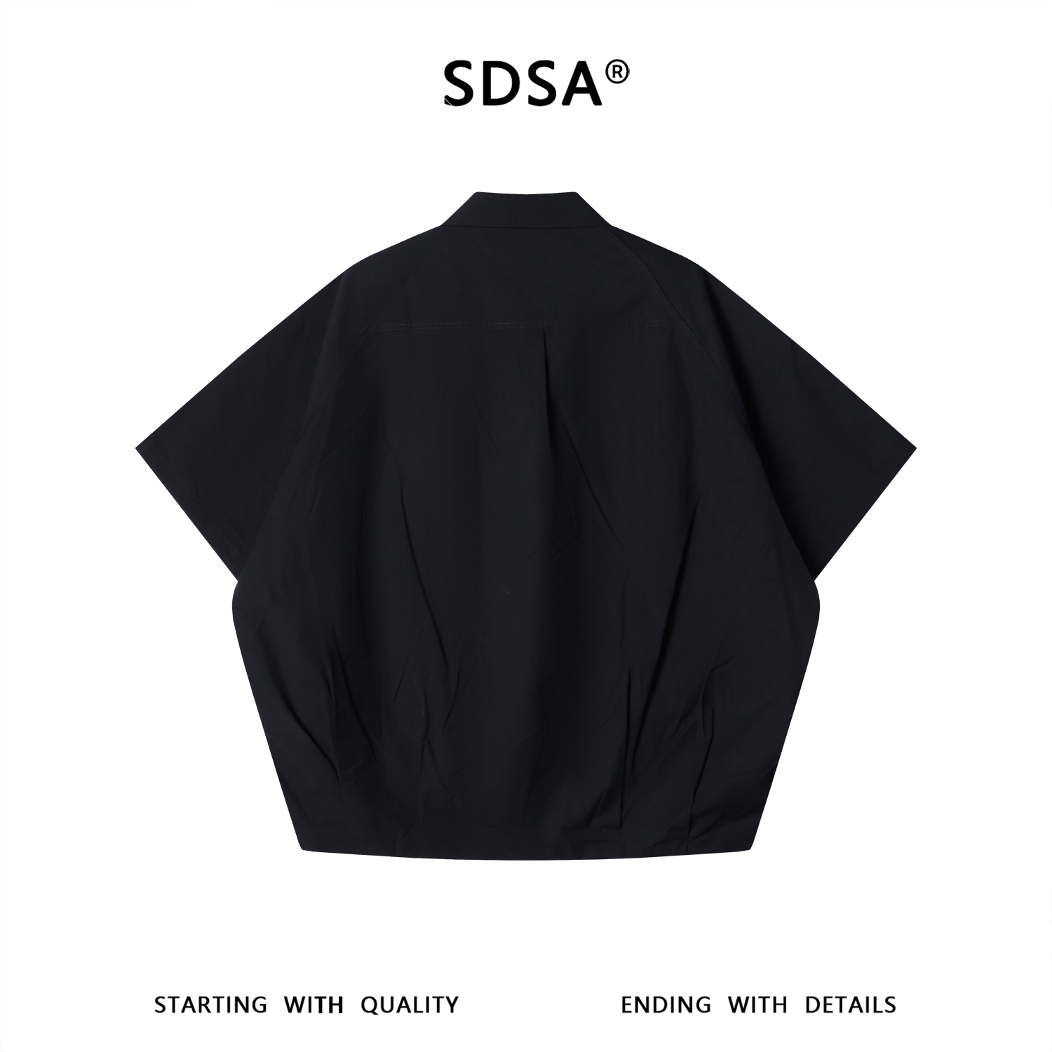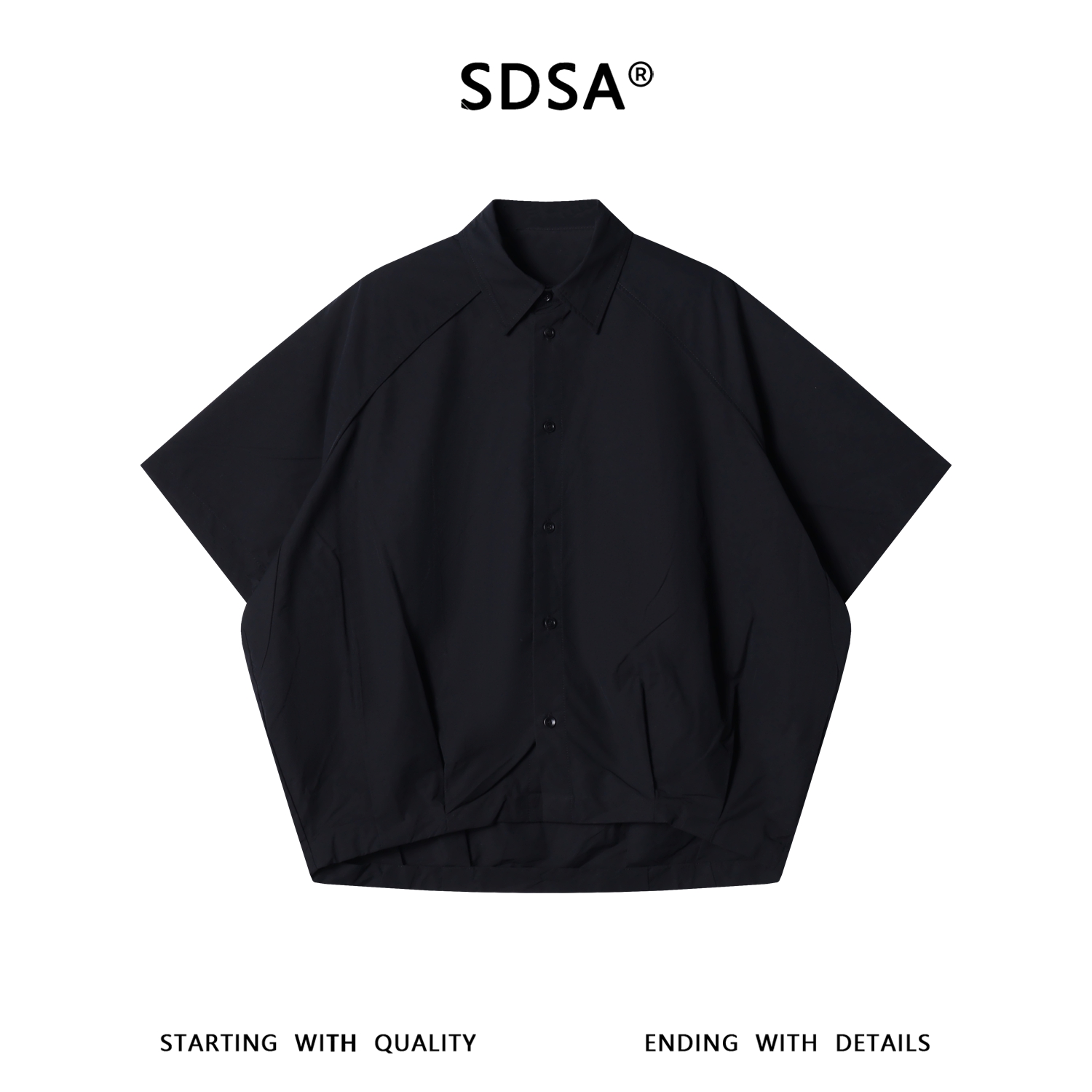 SDSA男装2026新款高贵轻奢潮牌机能风插肩袖黑衬衫宽松短袖