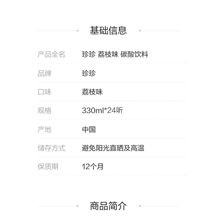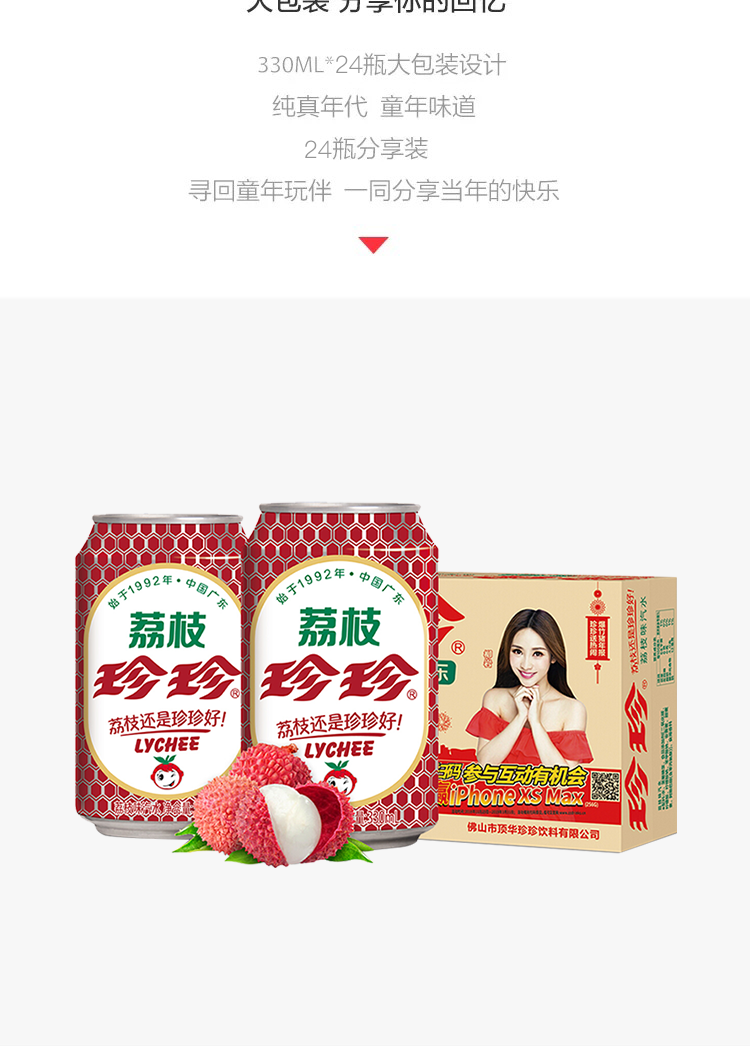 珍珍 荔枝碳酸饮料 330ml*24听 80、90后童年的味道