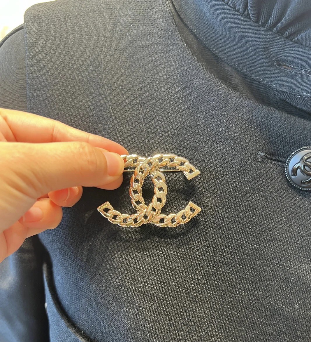 【小香链条双c胸针】Z 4900!24春夏最新款系列!老规矩先到先得💥现huo💥闭眼冲✔️太爱啦❣️!线条非常的流畅,镜面抛光非常Bling✨链条设计时尚十足,巨美巨美❤️真心不是盖的,我们做五金的工艺,可以说能够把ZP珠宝类的真金真钻的都做得极致,更何况这ZP是黄铜材质的首饰类,看细节,完完全全把细节做得跟ZP完全一致❗️为什么工艺这么精湛??因为我们厂里的师傅每一个都是做开金货的老师傅,而且每一个都习惯在显微镜🔬下放大无数倍来做,因此,可以非常自豪的说,我们出品的五金,绝对是无❗️对❗️手❗️只想说,认识我们,从此你花一百多就等于省几千赚几千的节奏,姊妹们,完美程度自己感受,另外,追我们家的新款一年,可以毫不夸张的说你绝对省了800-900万❗️❗️❗️[机智][机智]