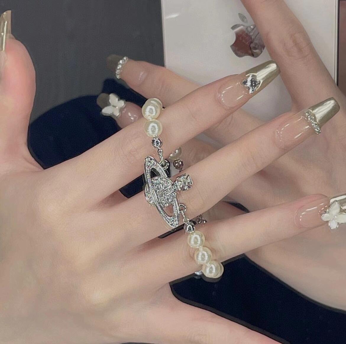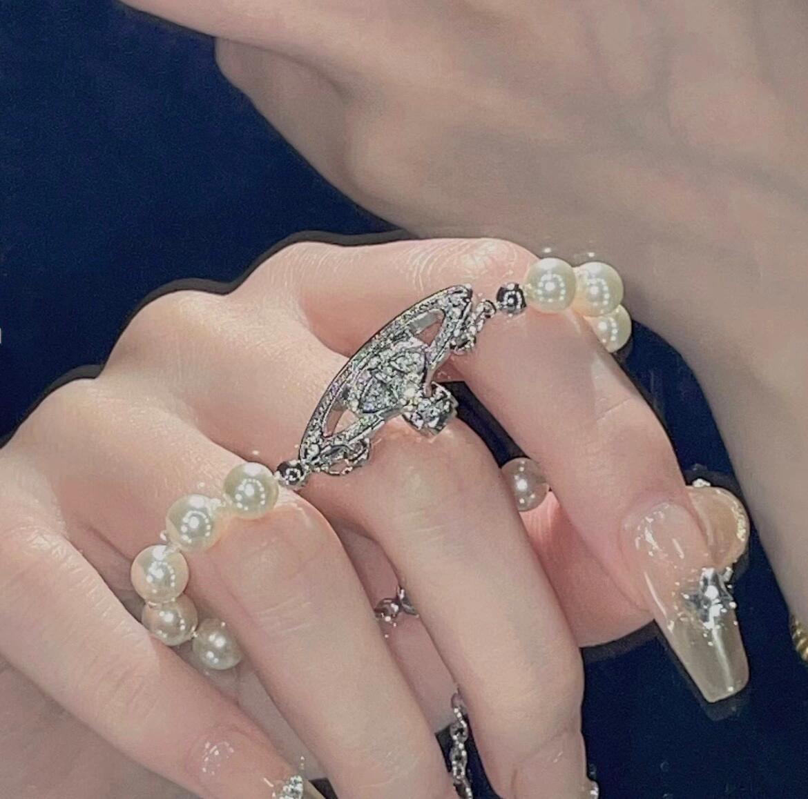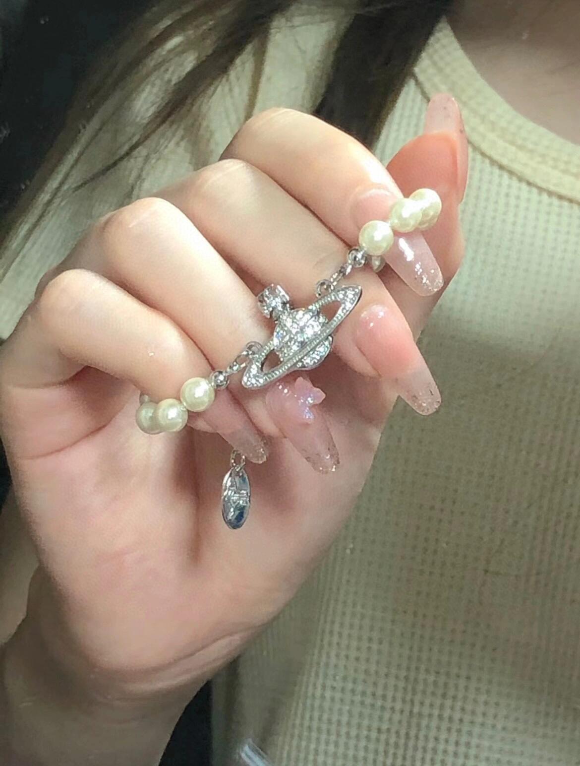 土星上边的钻也是定制的施华洛水钻,而非市面上随随便便用个塑料珠子和钻就做出来的!拿到手完完全全可以感受到它的质感,手感,光泽感超nice👍🏻用水钻的点缀出现在土星的设计上,增添不少冷艳时髦的俏丽模样,使得朋克同时又有点小少女,自带一群时尚粉!真的敲好看,可盐可甜,可纯可欲!一眼便钟情,绝对是“实用+高级”界的杠把子,yyds 永不过时的珍珠手链
