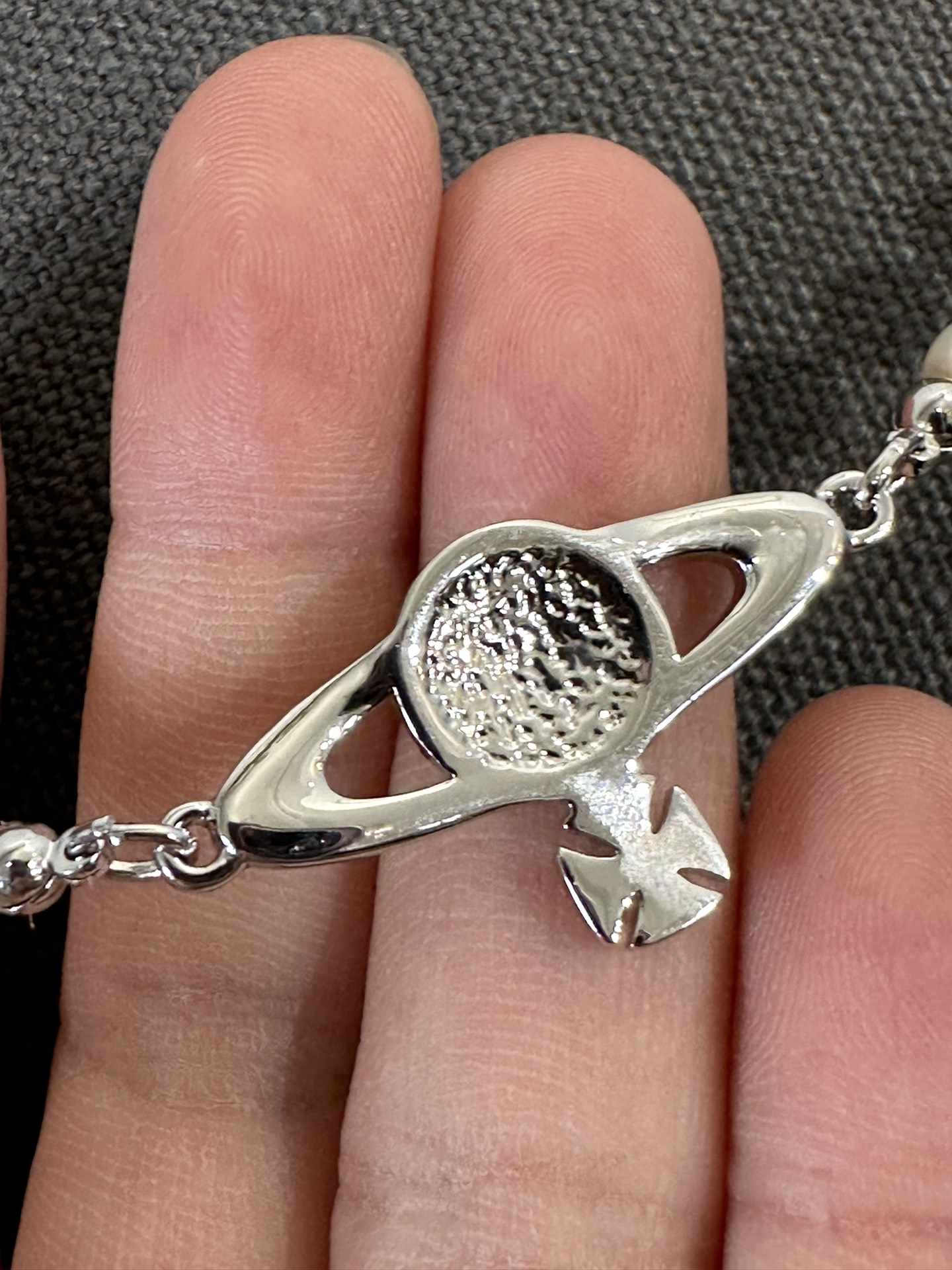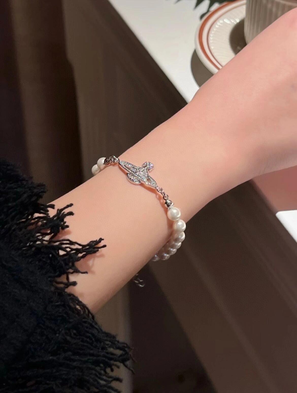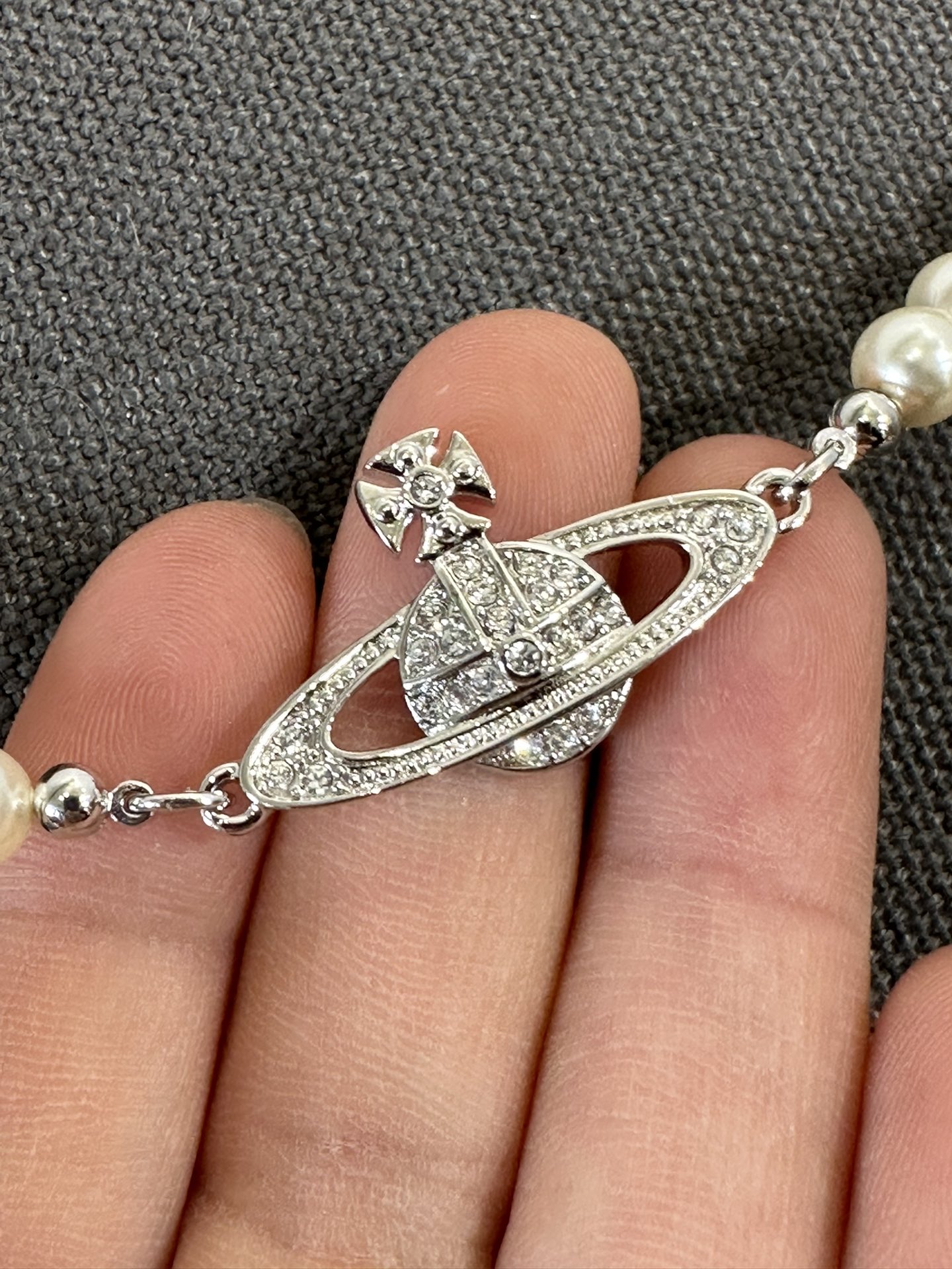 土星上边的钻也是定制的施华洛水钻,而非市面上随随便便用个塑料珠子和钻就做出来的!拿到手完完全全可以感受到它的质感,手感,光泽感超nice👍🏻用水钻的点缀出现在土星的设计上,增添不少冷艳时髦的俏丽模样,使得朋克同时又有点小少女,自带一群时尚粉!真的敲好看,可盐可甜,可纯可欲!一眼便钟情,绝对是“实用+高级”界的杠把子,yyds 永不过时的珍珠手链