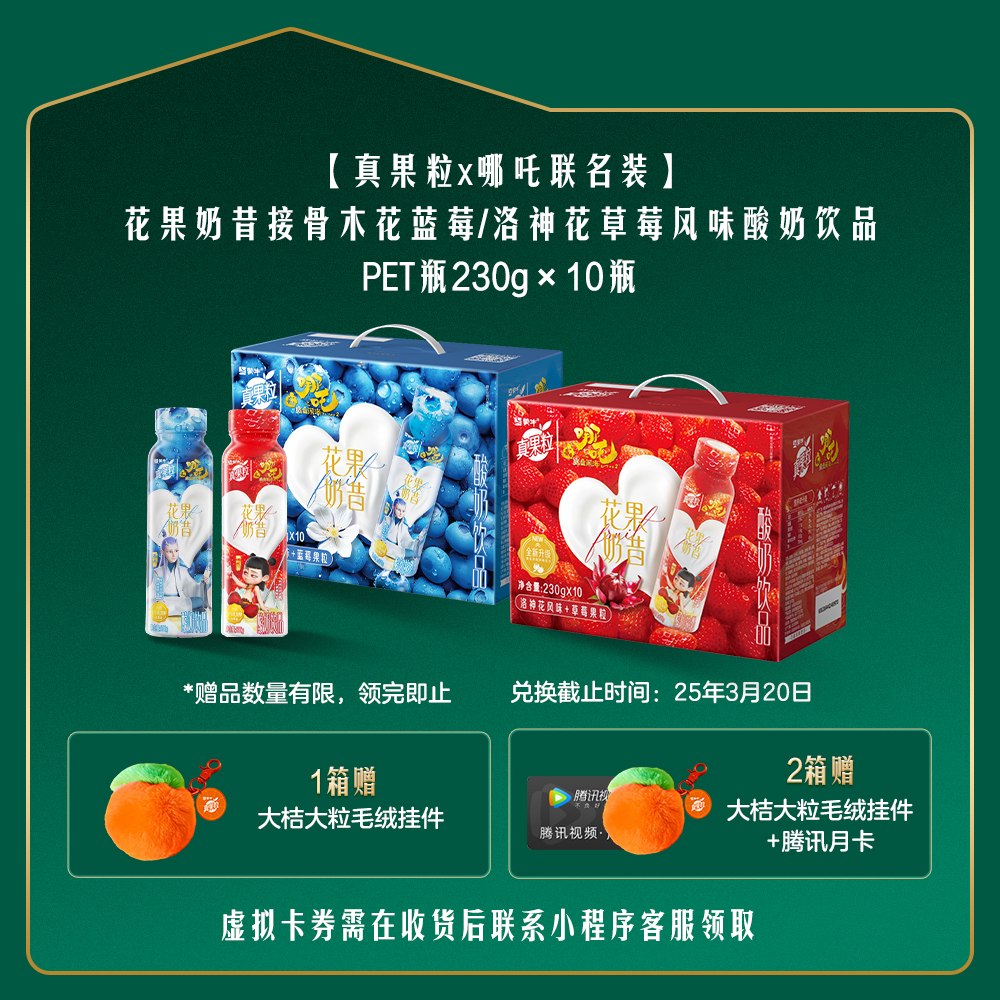【真果粒x哪吒联名装】花果奶昔接骨木花蓝莓/洛神花草莓风味酸奶饮品PET瓶230g×10瓶