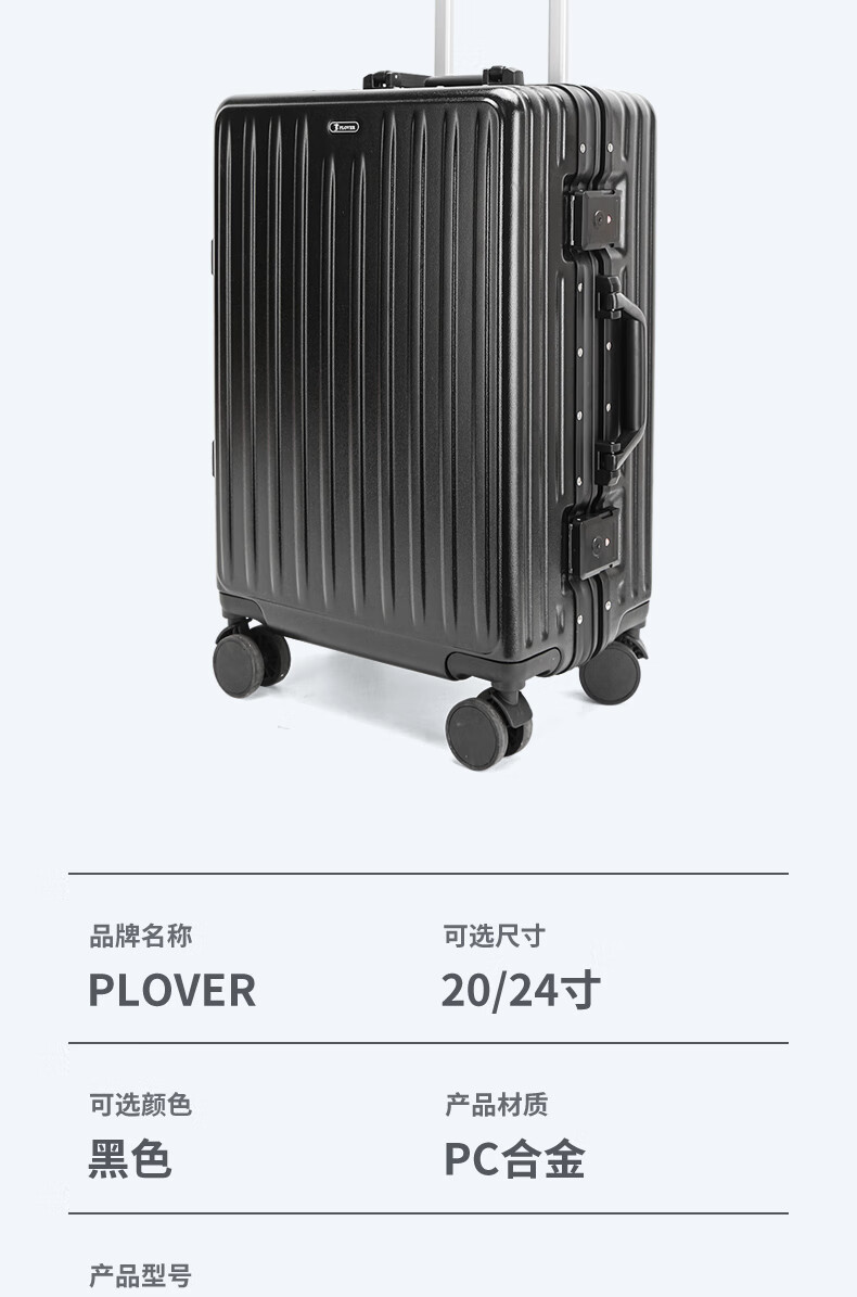 PLOVER行李箱登机箱时尚出行男女大学生GD2713 黑色 GD2713-20A(20寸)