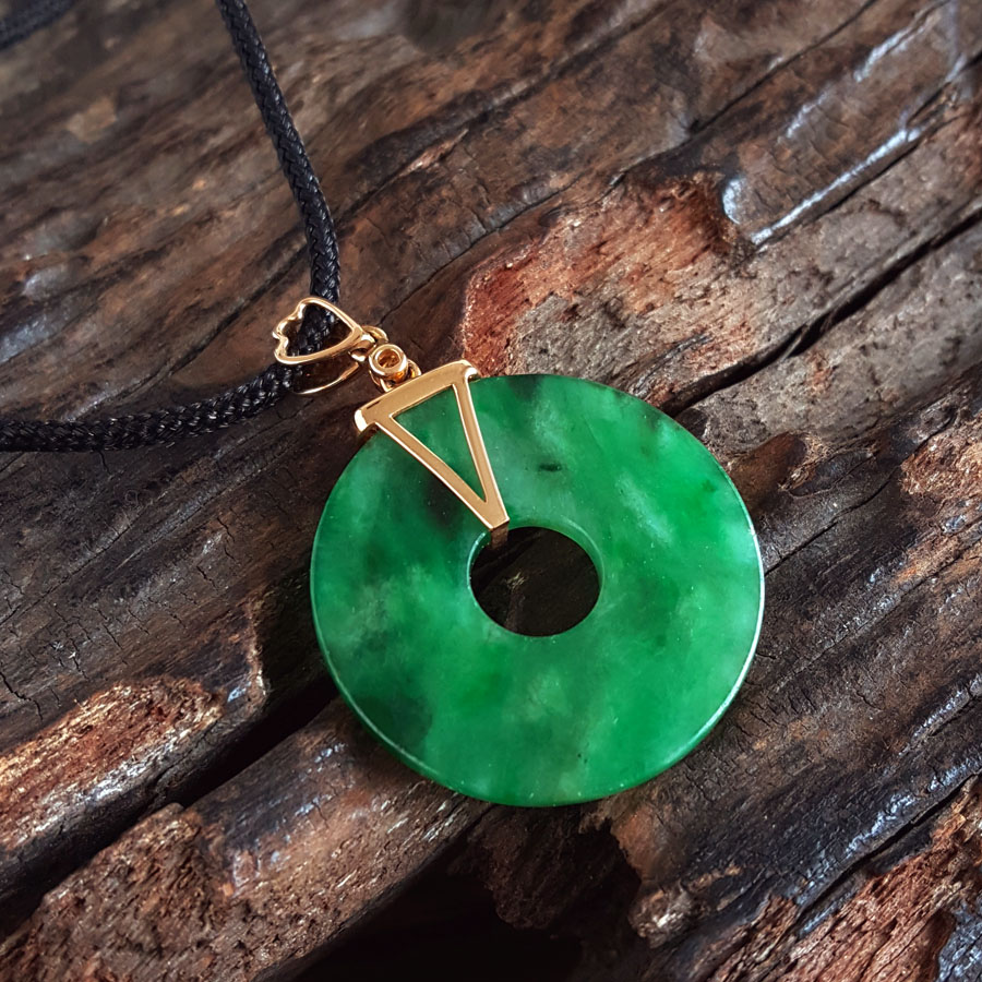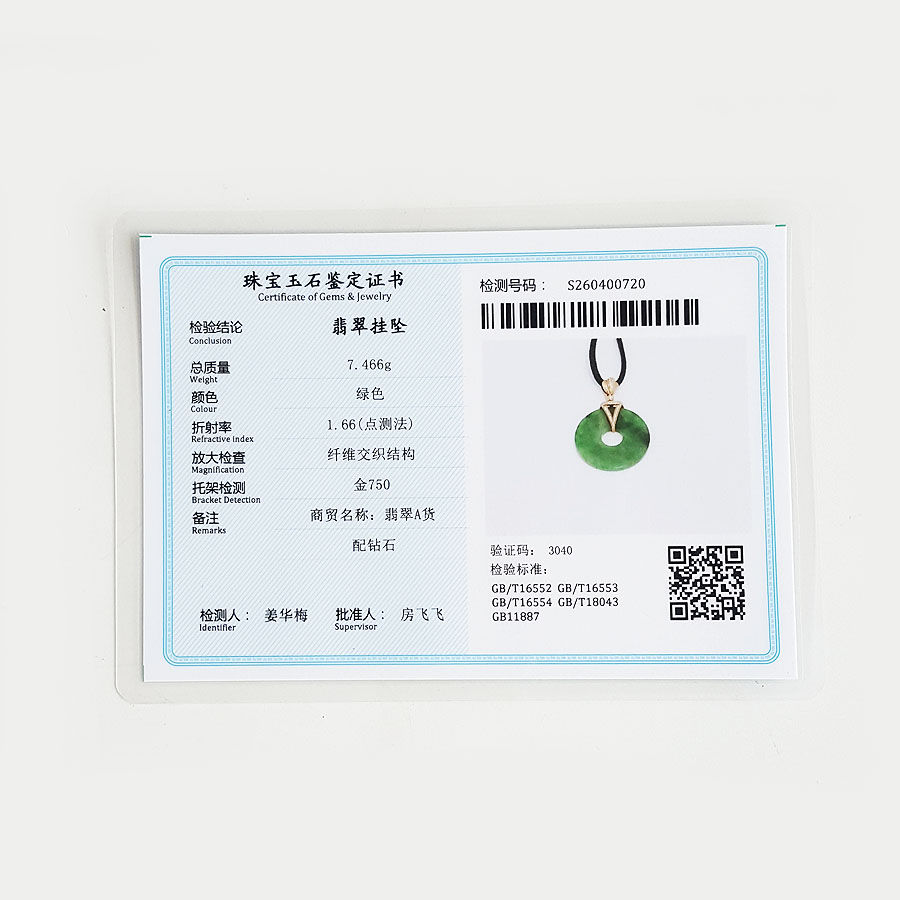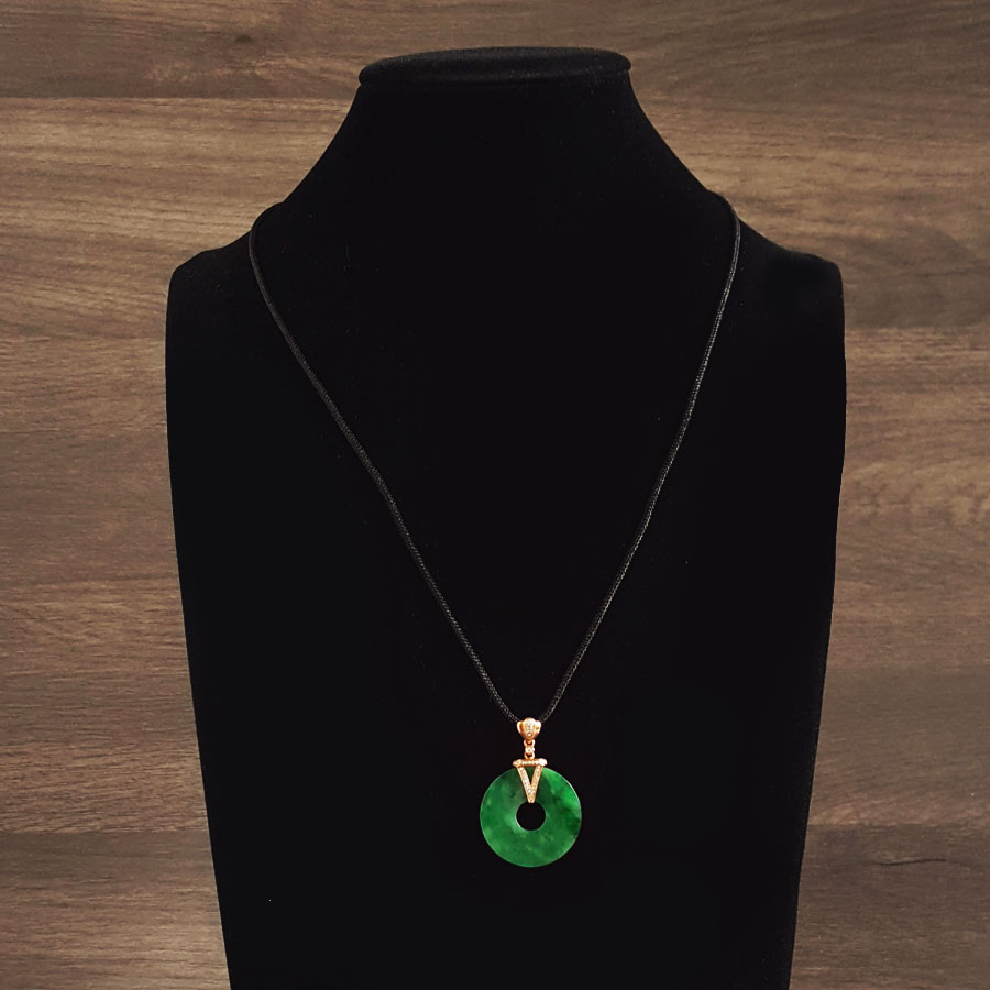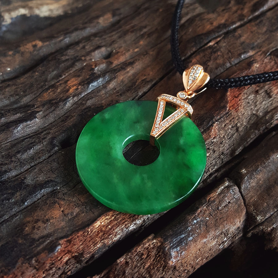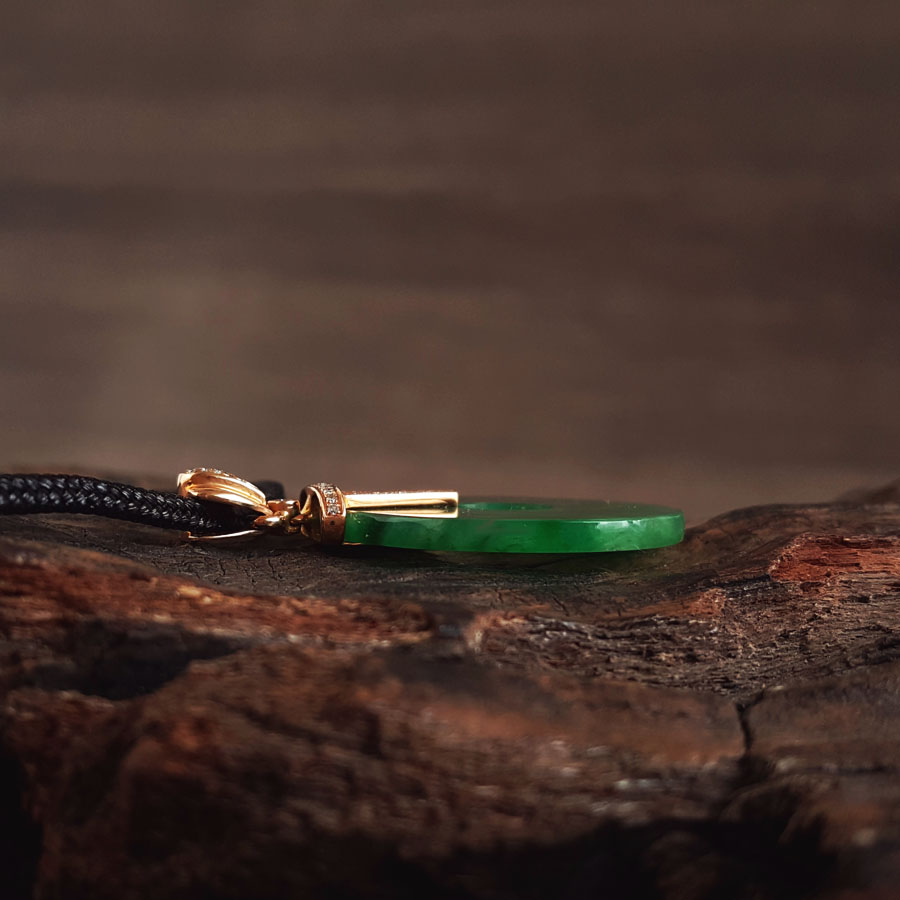 名称 | AU750玫瑰金镶钻镶天然细腻满绿糯冰种平安扣翡翠吊坠项链 |
