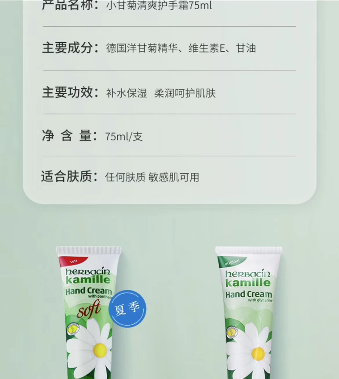 双支装 贺本清 HERBACIN 小甘菊经典护手霜 75ml*2