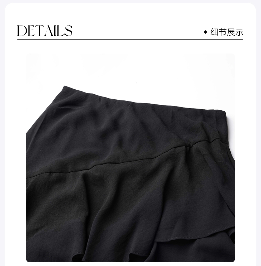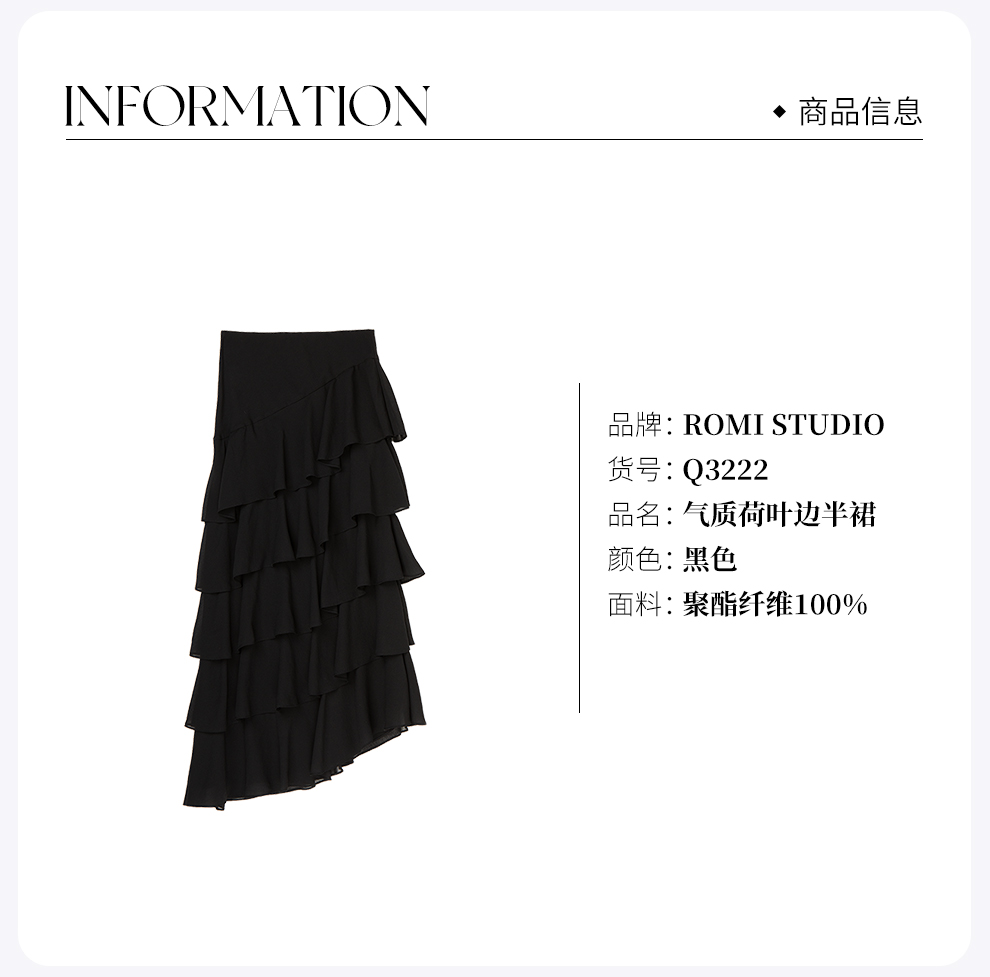 ROMI STUDIO“Vintage”系列气质垂坠感A字荷叶边松紧长款半裙Q3222