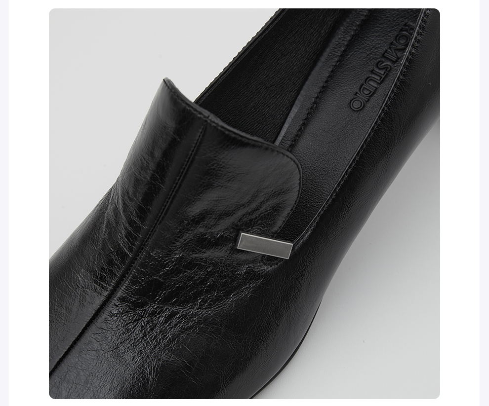 ROMI STUDIO 油蜡牛皮革和羊皮革极简方头粗跟高跟鞋 RWCAP33480