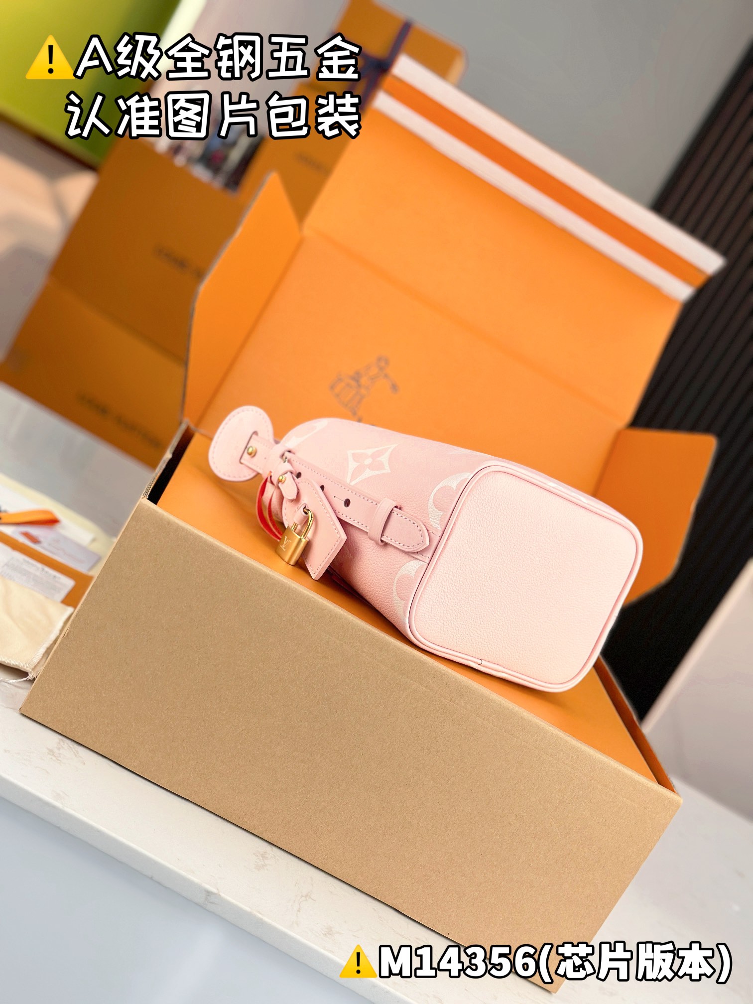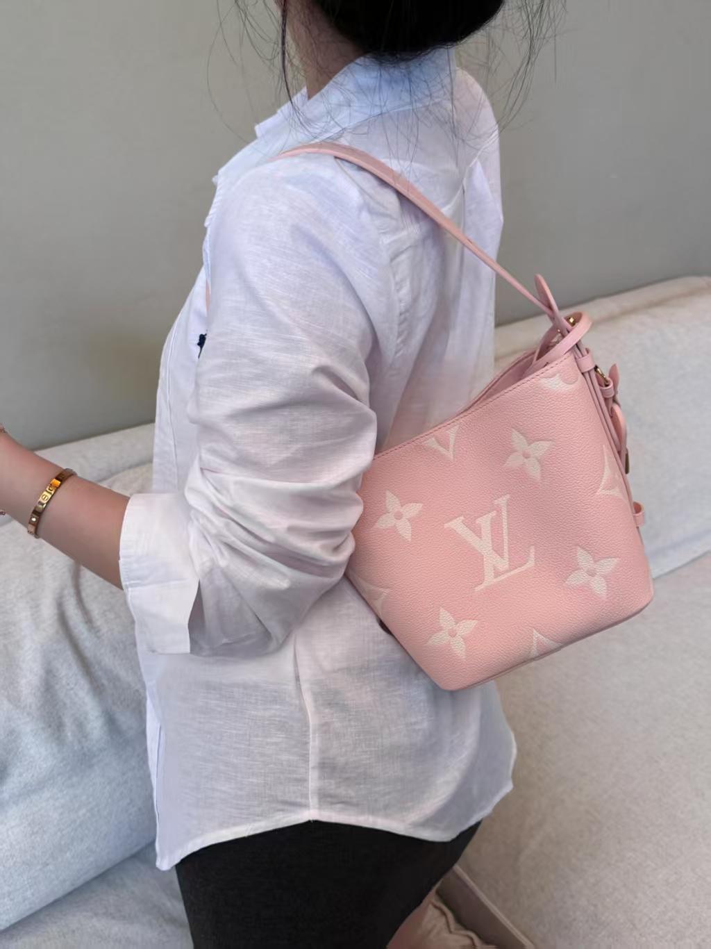 驴家LV ALL IN系列 金扣老花图案可调节肩带 小牛皮 水桶包手提包 女款 樱花粉(CB)