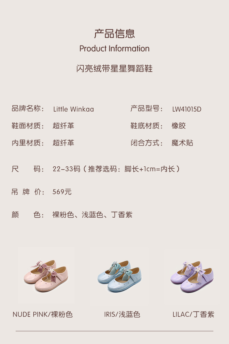 小温卡女童电绣星星蝴蝶花朵公主鞋舞蹈鞋LW41015