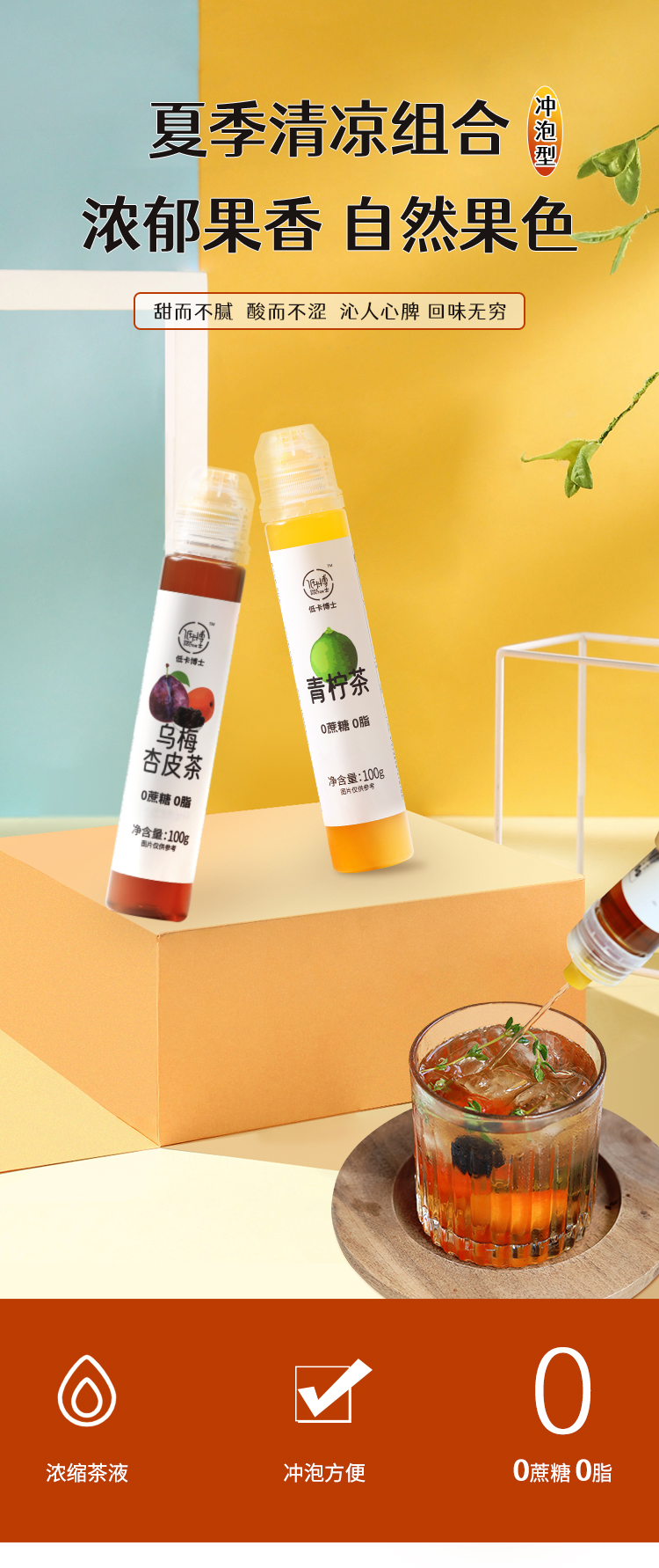 专属 低卡博士青柠乌梅茶混合装浓缩茶液饮品0蔗糖0脂干净清新酸甜果香