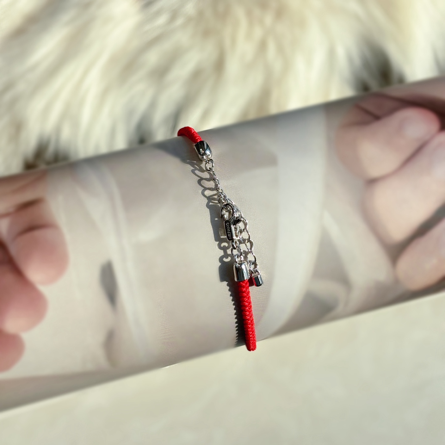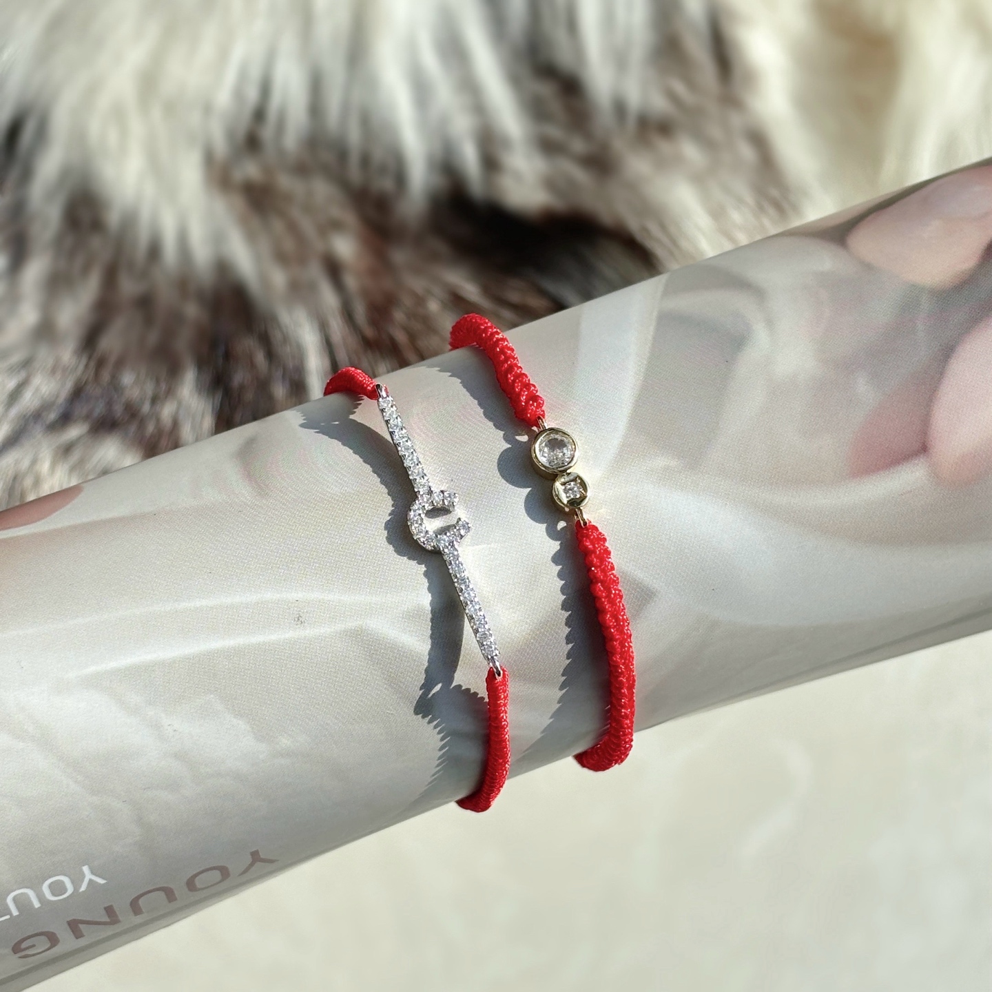 Hefan!何*方 财源滚滚红绳手链/星光马蹄扣红绳手链 新年开运就带它,把好运焊死在腕间——何*方新款趣味新年系列财源滚滚红绳手链/星光马蹄扣红绳手链来袭!小红绳是2026开年流行的“骐骥红”色系,既保留正红色的喜庆热烈,又兼具复古红的温润质感,亮眼却不浮夸,上手自带显白滤镜,轻松适配各种肤色!红绳编织紧密扎实,纹理细腻规整,佩戴时贴合手腕曲线,柔软不硌肤!搭配带着吉祥寓意的吊坠装饰,既是新年开运的点睛配饰,也是提升造型精致度的时尚利器,不管是自留还是作为新年礼物,都能让心意与美感双双拉满! 【财源滚滚红绳手链】在红绳中间缀入两个圆形锆石,一大一小相扣成“福禄双全”的葫芦意象,小的那枚还是钱币的模样!象征“财源滚滚、事事圆满”!锆石采用精湛的切割工艺,在光线下折射出璀璨光芒,金色包边勾勒出精致轮廓,与红绳形成经典的红金配色,太好戴了,简洁的设计,轻抬手腕,瞬间迷人!被众多时尚博主列为新年开运配饰首选,轻松拿捏轻奢国风的时髦感! 【星光马蹄扣手绳手链】设计堪称“浪漫与吉祥的结合体”!更承载着“星光闪耀、马年顺遂”的新年祈愿!小红绳自带平安顺遂的美好祝愿,中心的银色星光马蹄扣,完美复刻经典马蹄扣的吉祥寓意,寓意“幸运与力量”,扣身巧妙镶嵌多颗微镶锆石,如同星光点缀,灯光下折射出细碎闪耀的光泽!佩戴瞬间轻松成为腕间焦点,男女同款的中性设计,让男生佩戴显利落酷感,女生佩戴添温婉灵动!两款手链叠戴更是时髦到不行! 财源滚滚红绳手链:17cm 延长链:3cm 星光马蹄扣手绳手链:16cm 延长链:3cm
