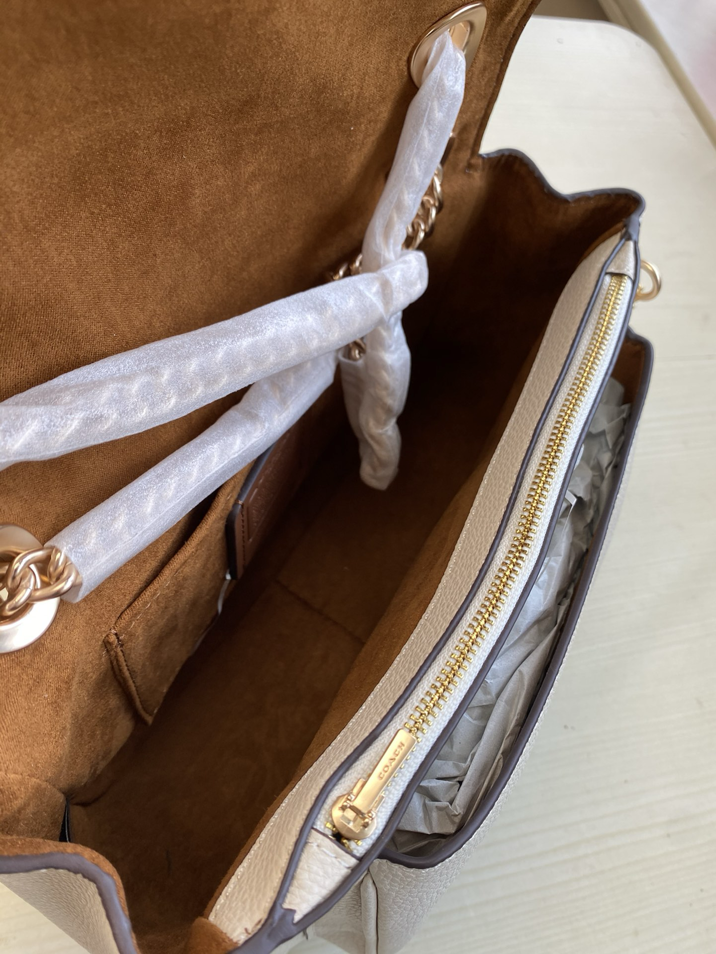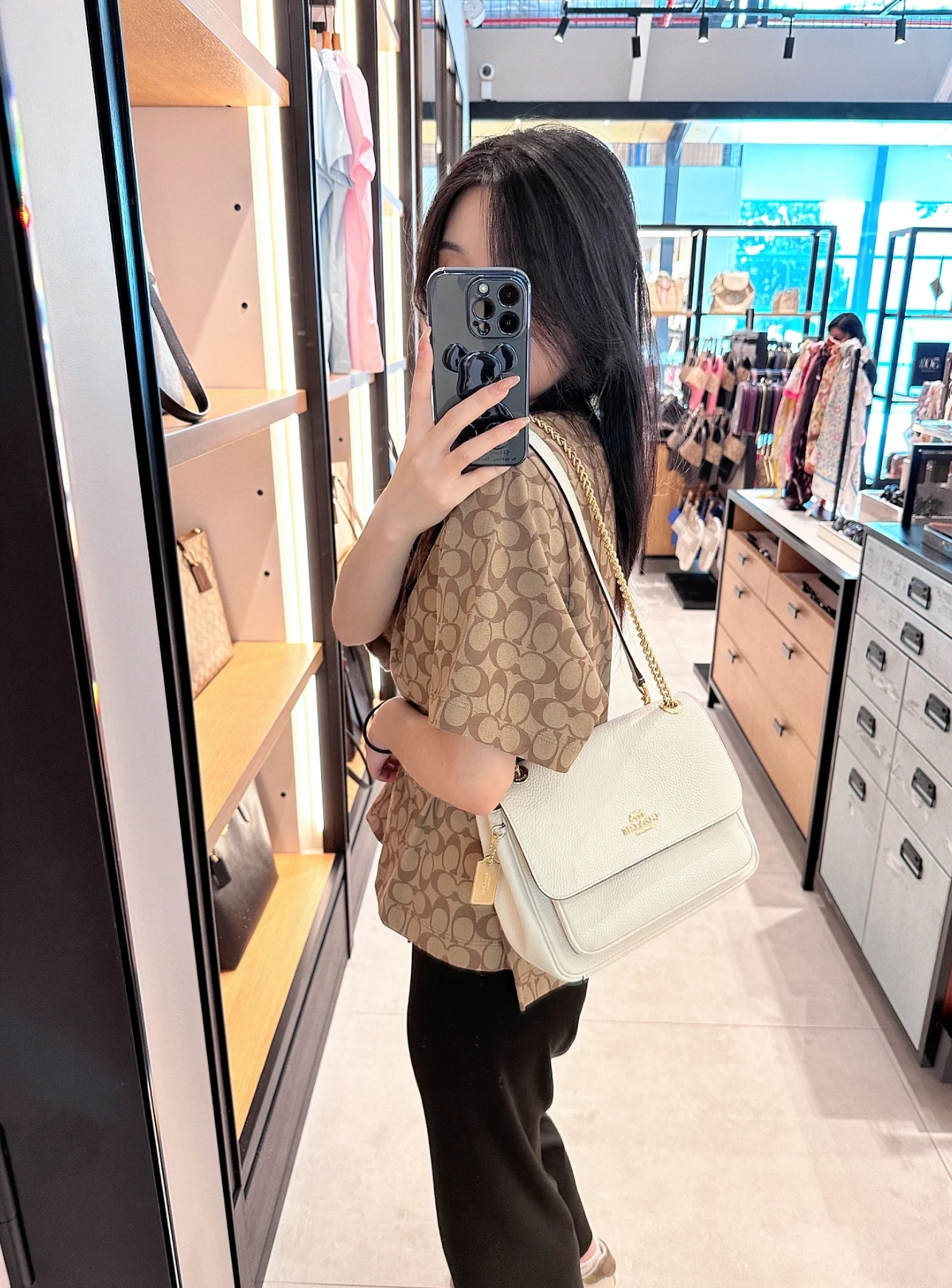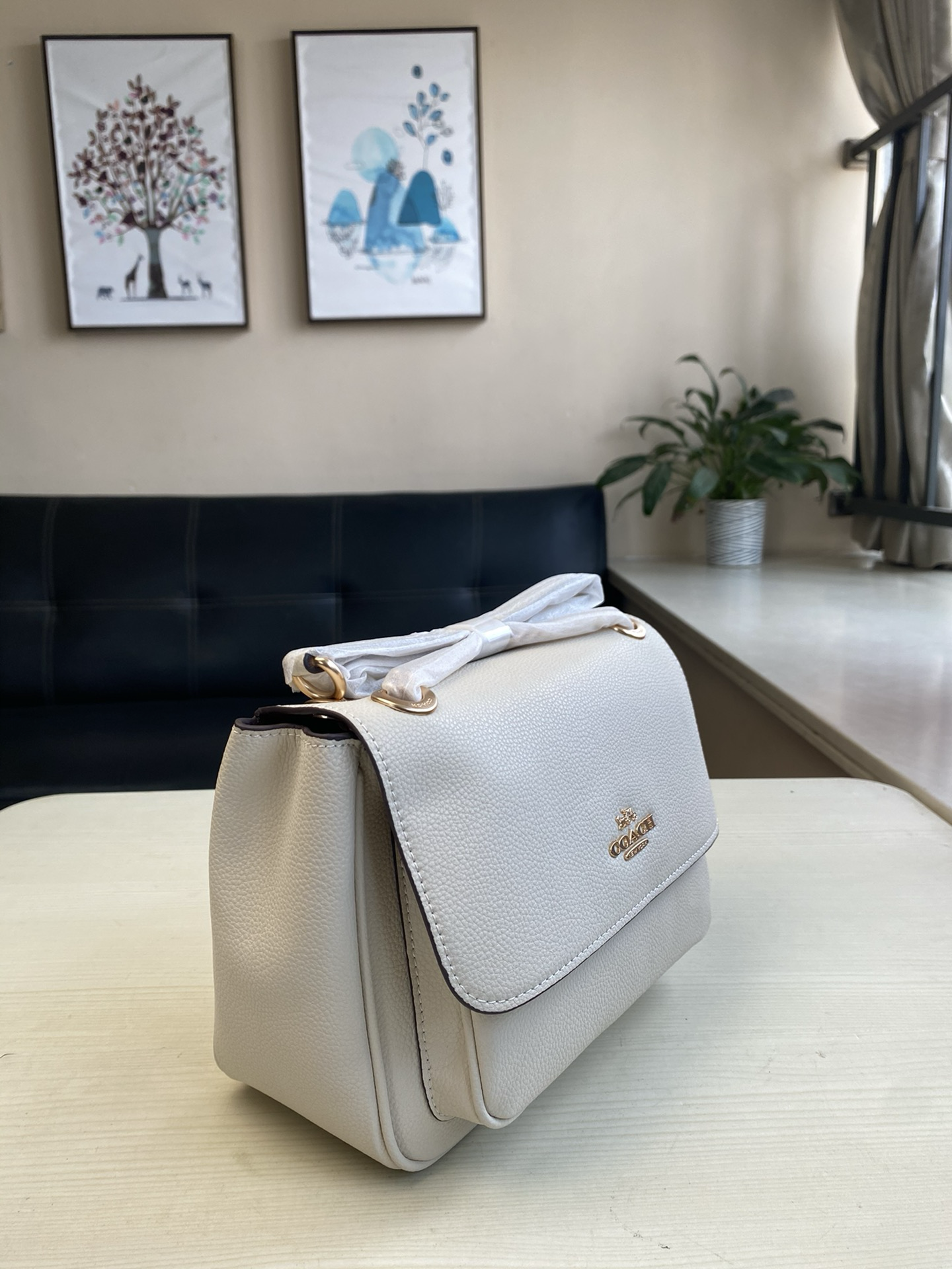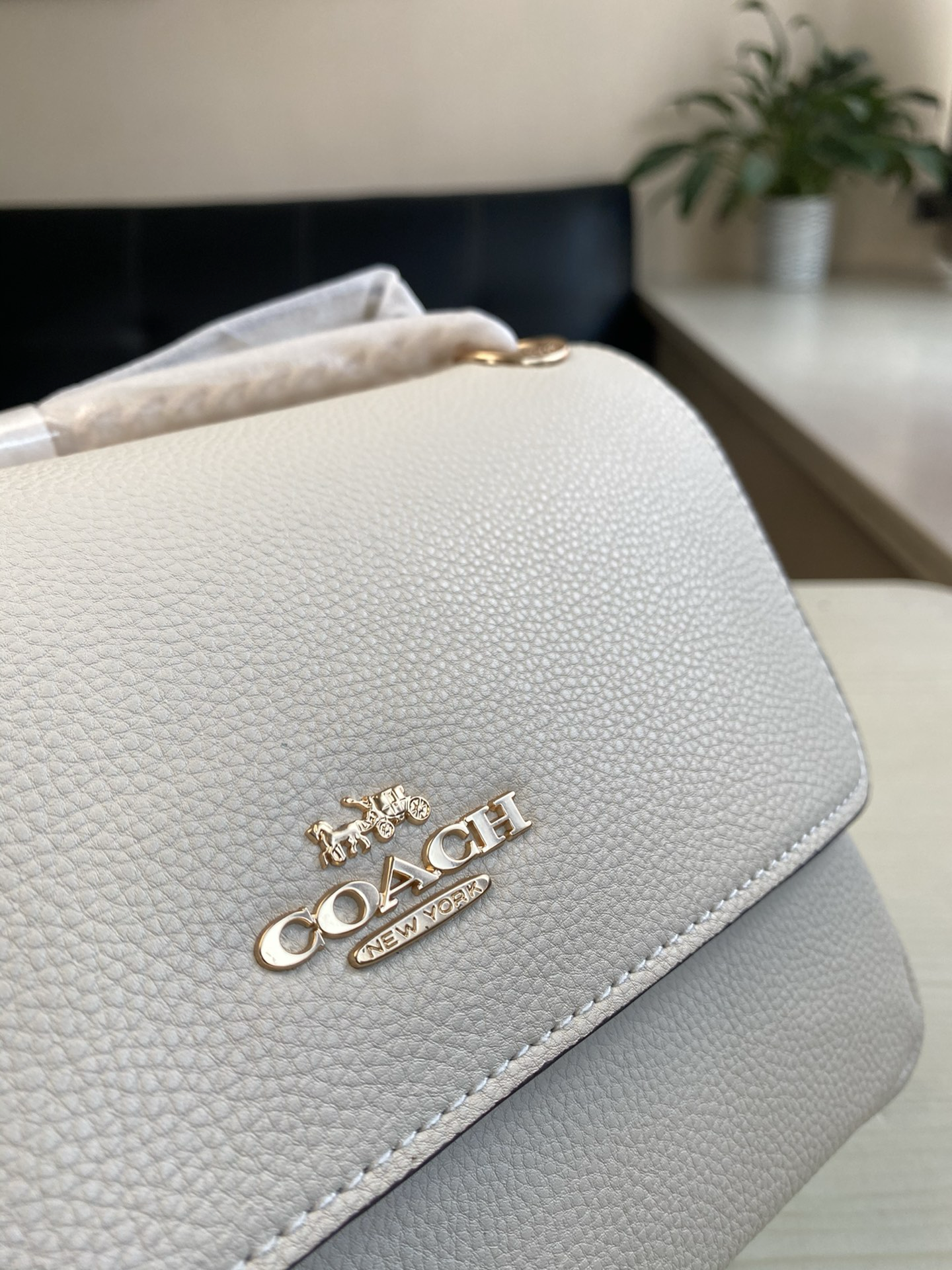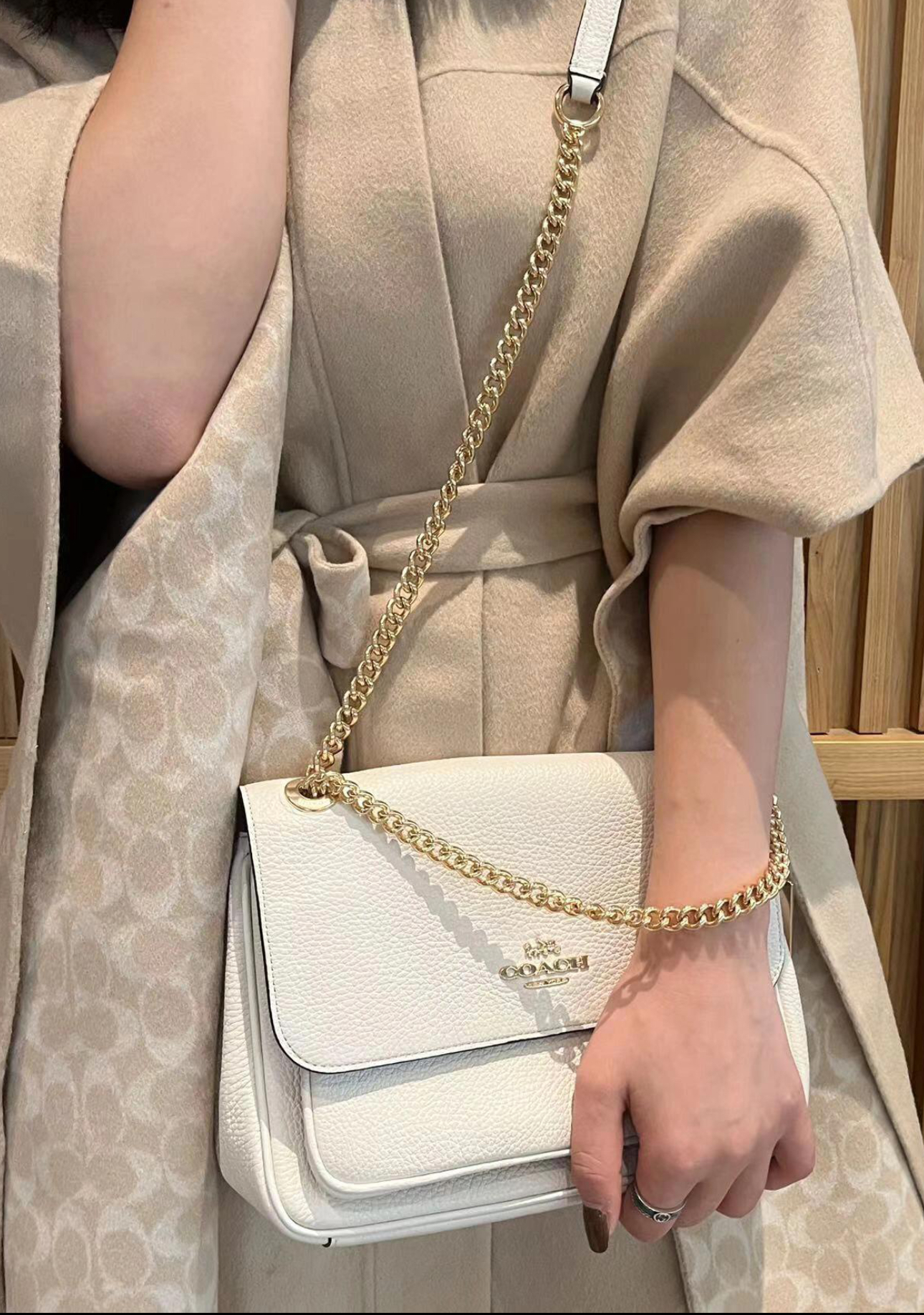 COACH蔻驰 Klare 26 纯色搭扣翻盖开合 牛皮革 单肩斜挎包 中号 女款 粉笔白色(CB)