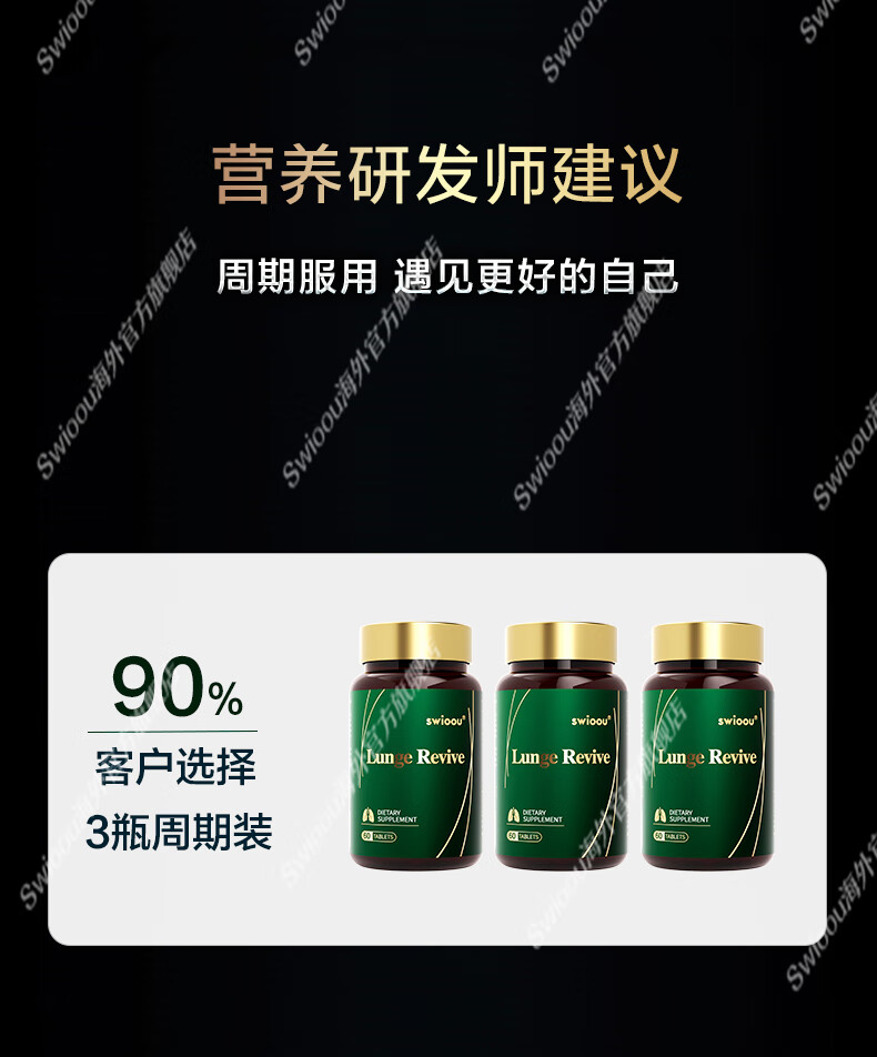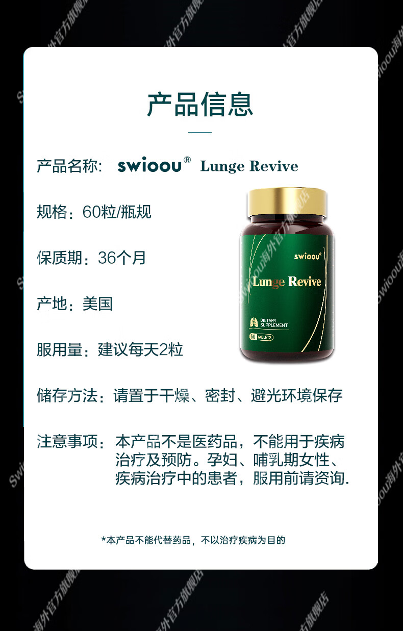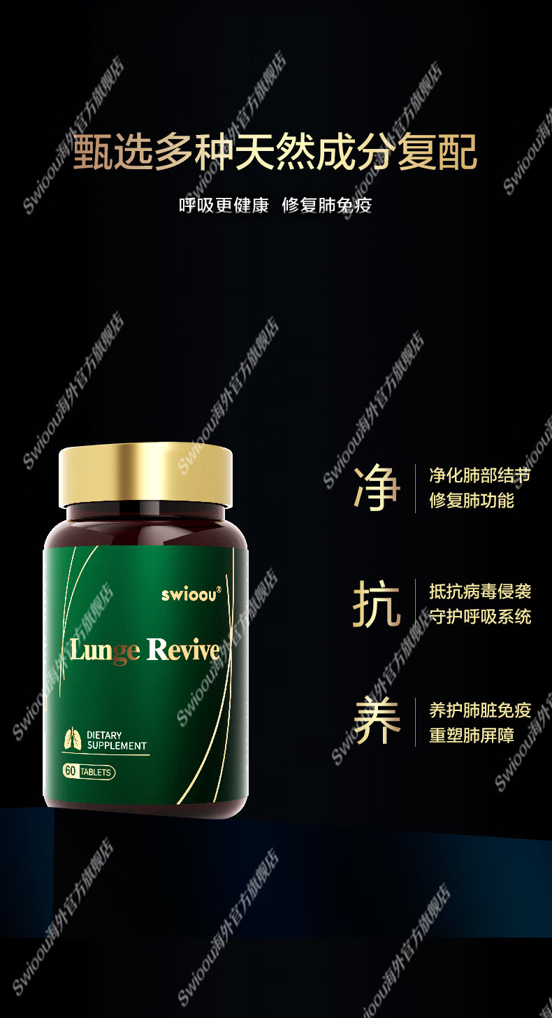 美国Swioou帝肺片槲皮素润肺护肺多重养护焕生 60片瓶