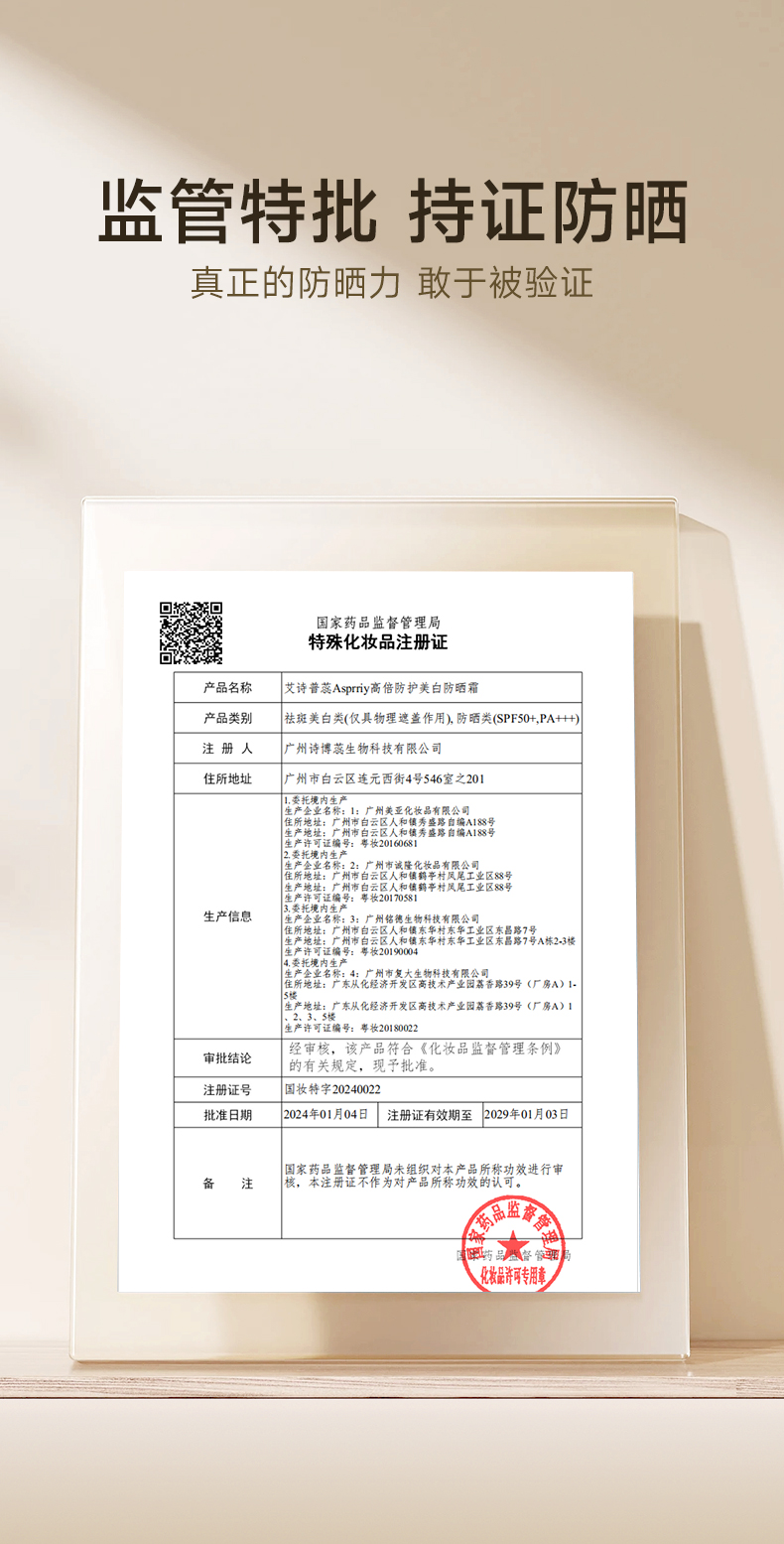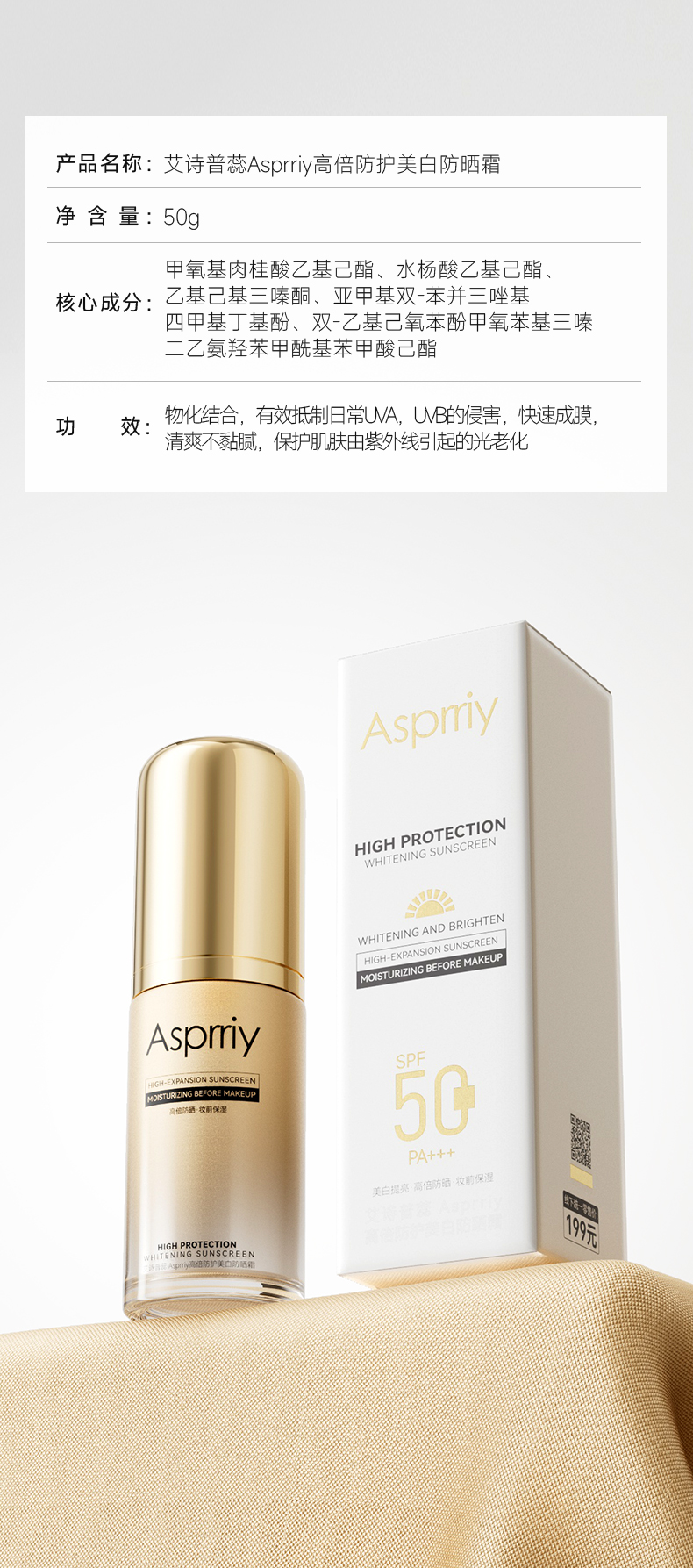 艾诗普蕊Asprriy高倍防护美白防晒霜(拍一发三)