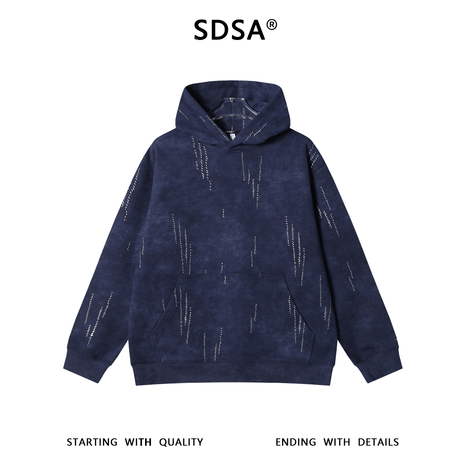 WY1359SDSA男士秋冬新款痞帅男装潮牌扎染滴胶连帽情侣百搭宽松套头上衣