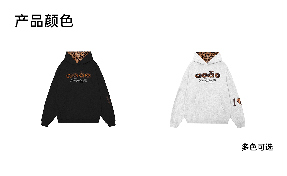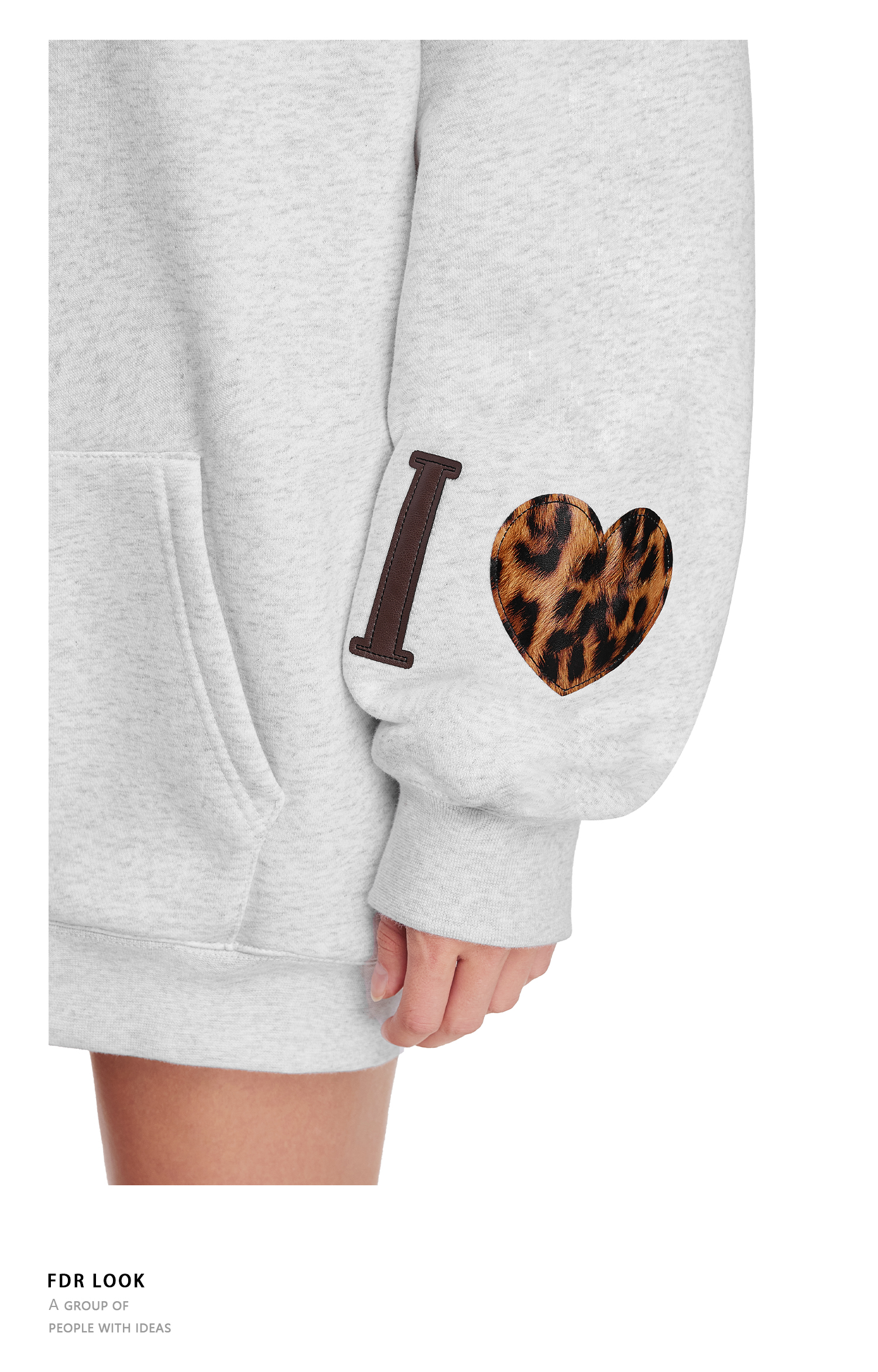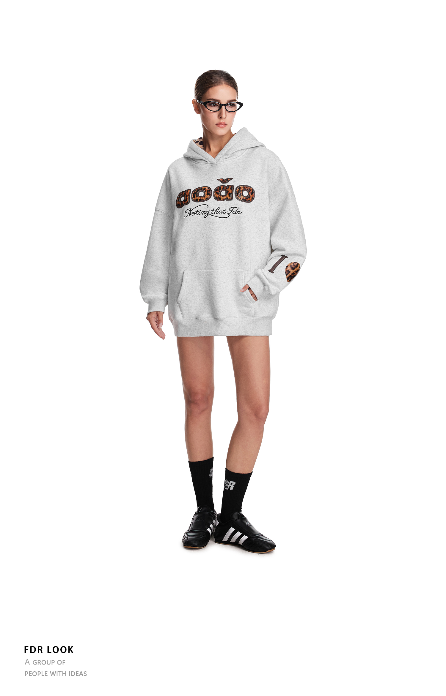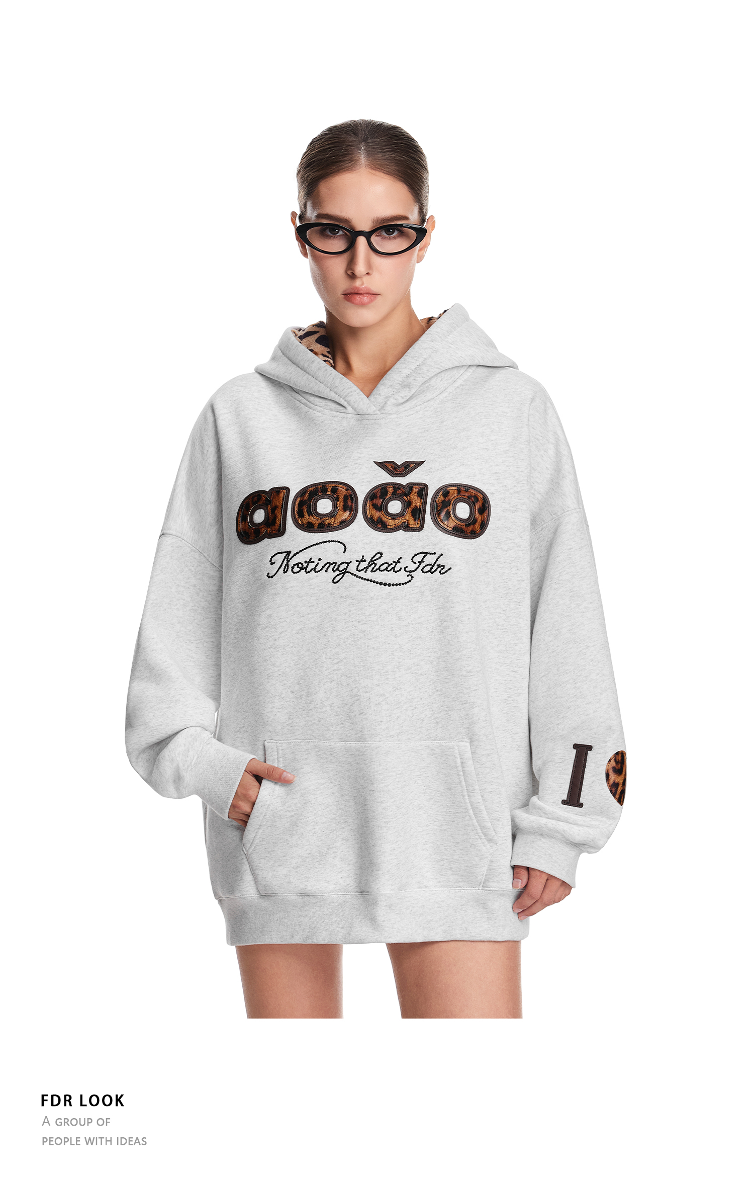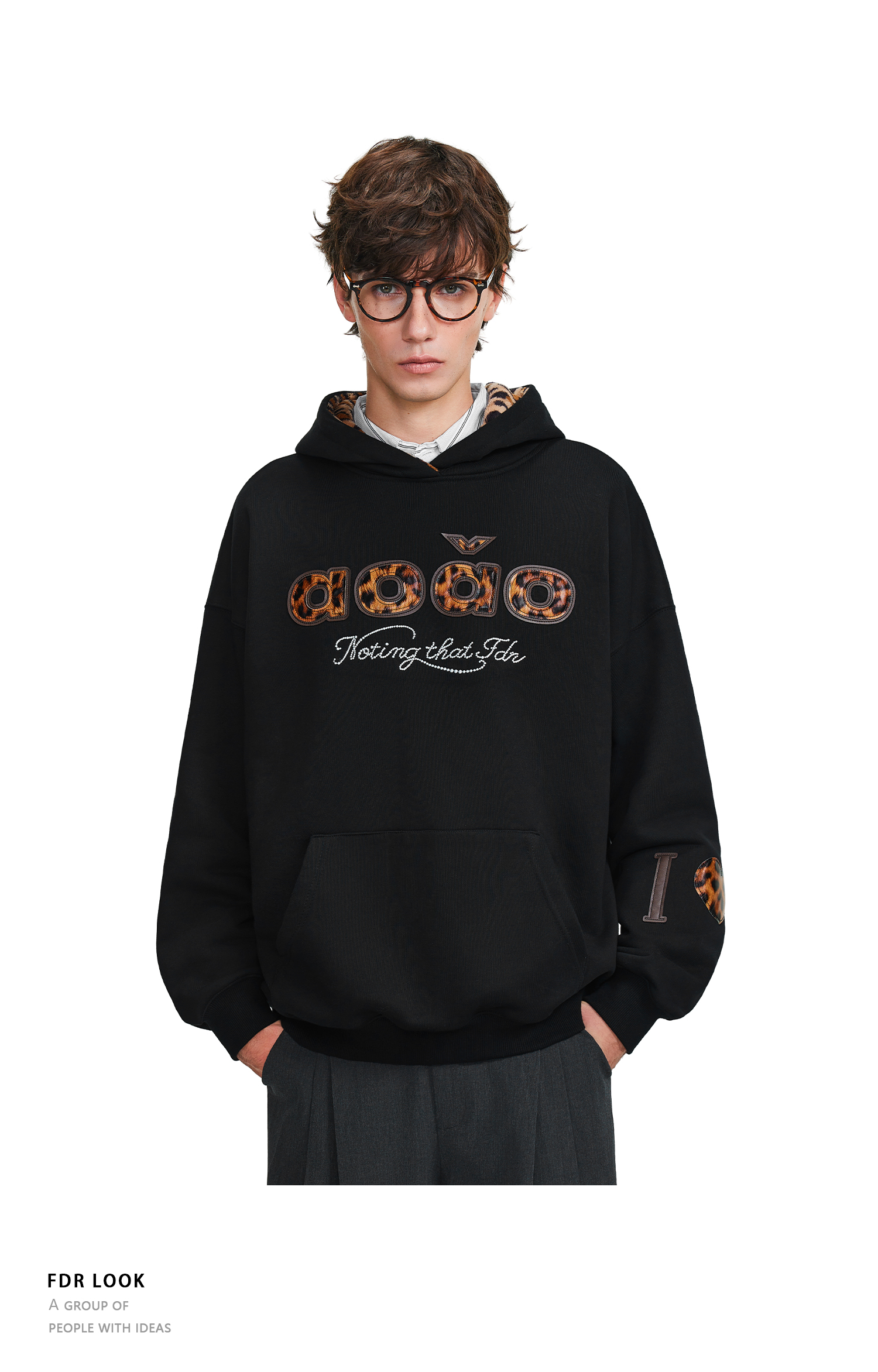 FDR官方店 豹纹贴布绣连帽卫衣男女秋季潮牌宽松情侣装上衣帽衫