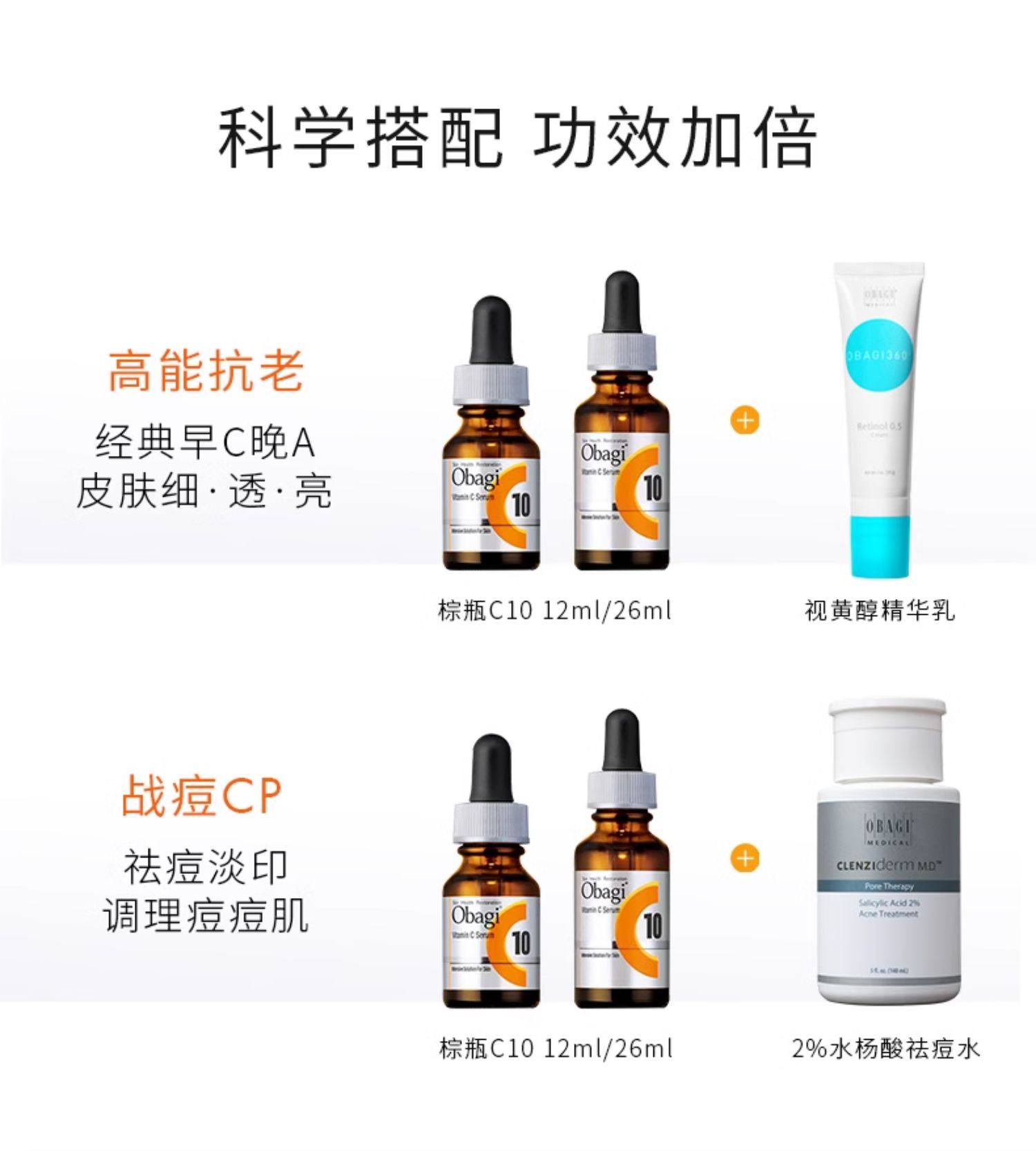 【跨境进口】OBAGI欧邦琪VC精华c10温和亮肤淡化痘印VC26ml