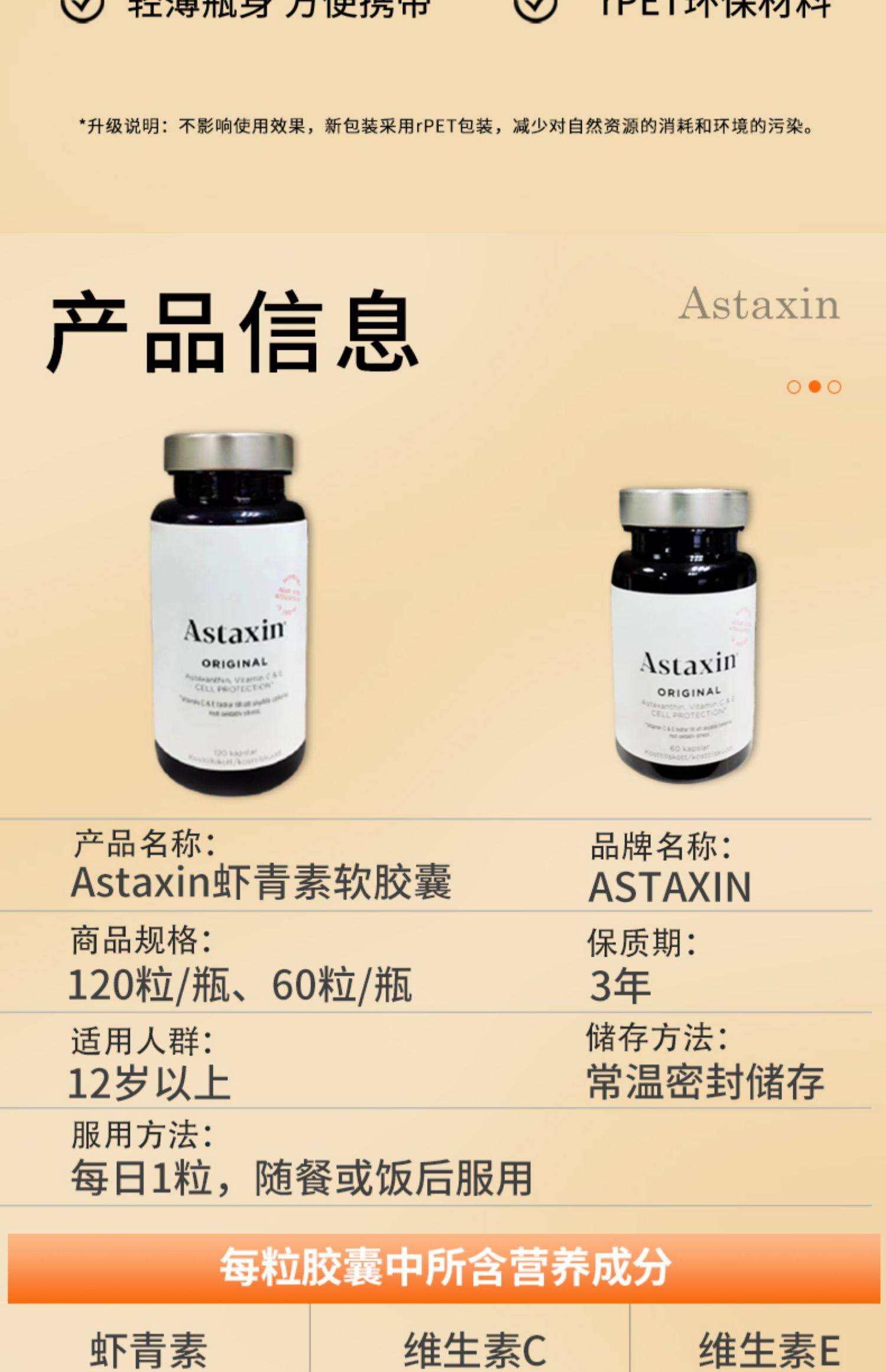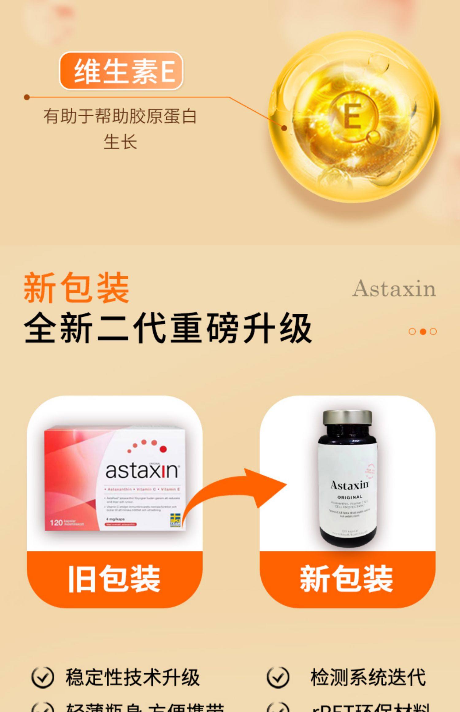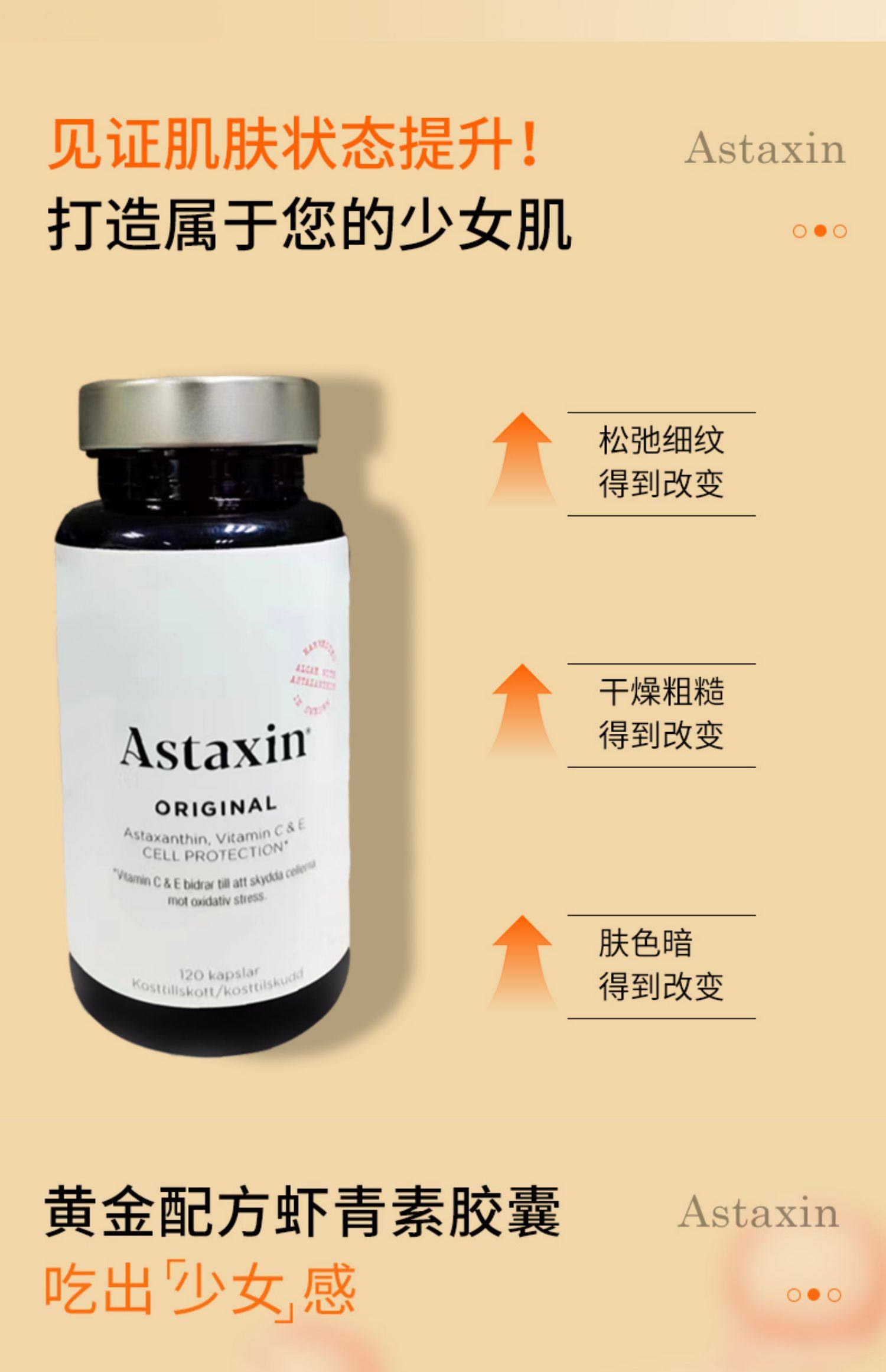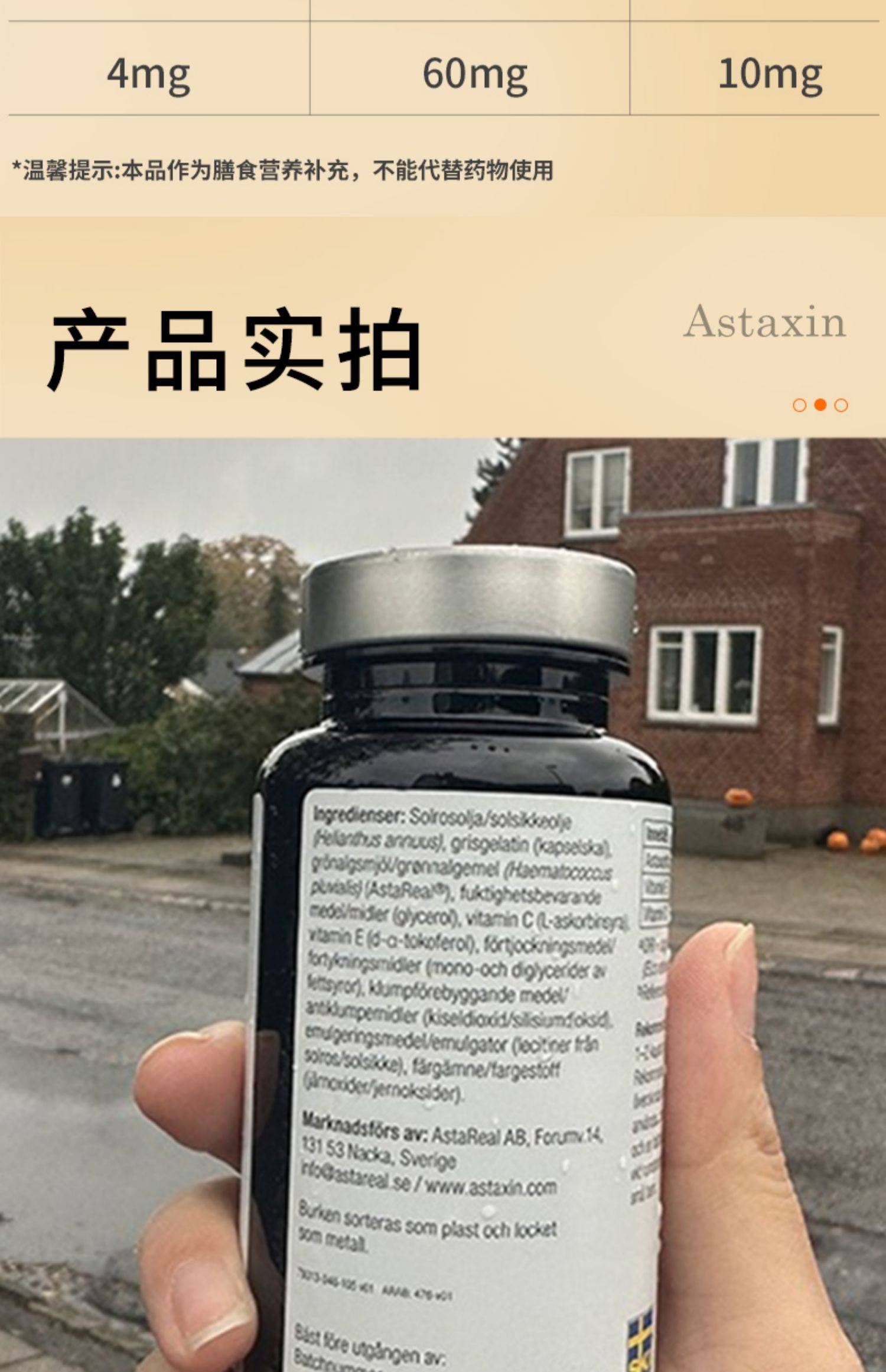 Astaxin瑞典天然虾青素软胶囊 官方进口原装成人 口服雨生红球藻
