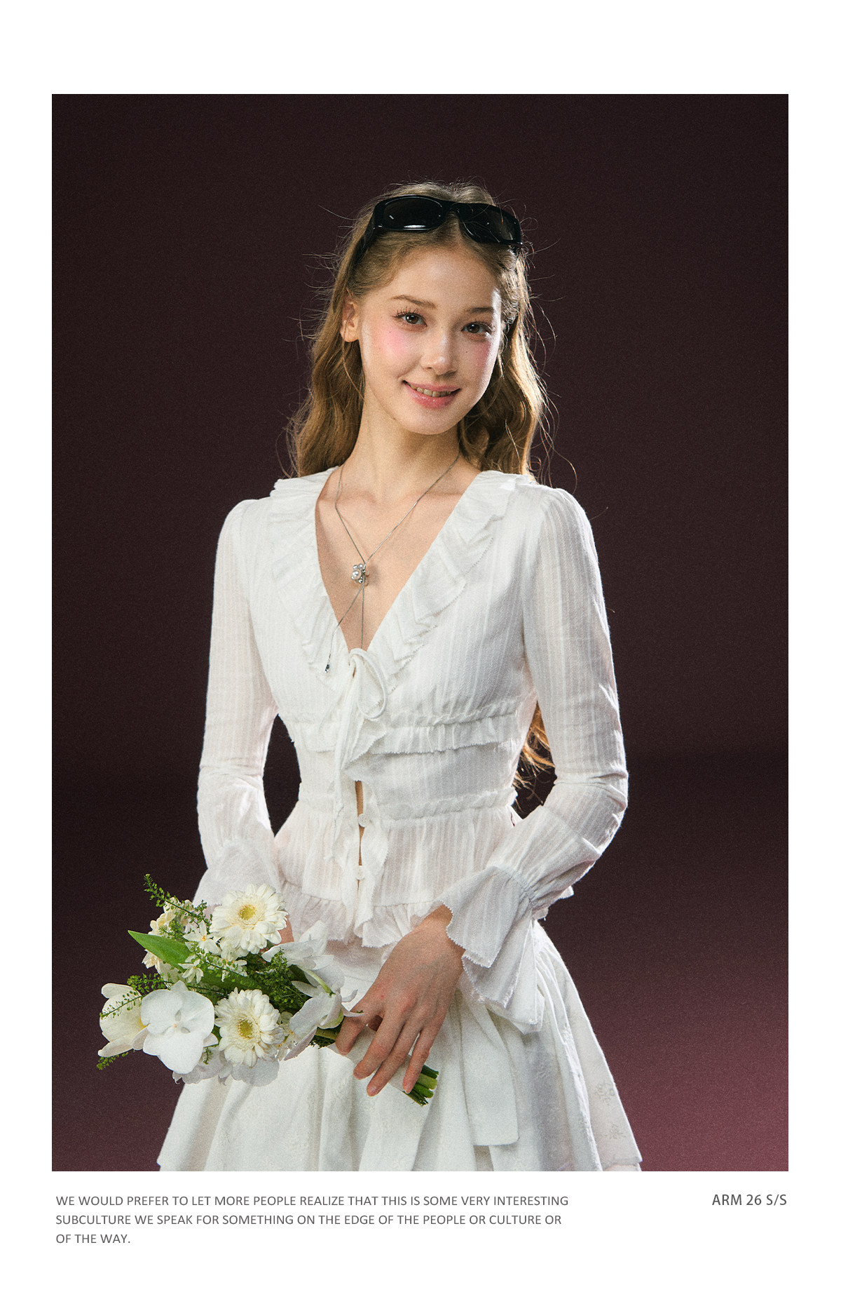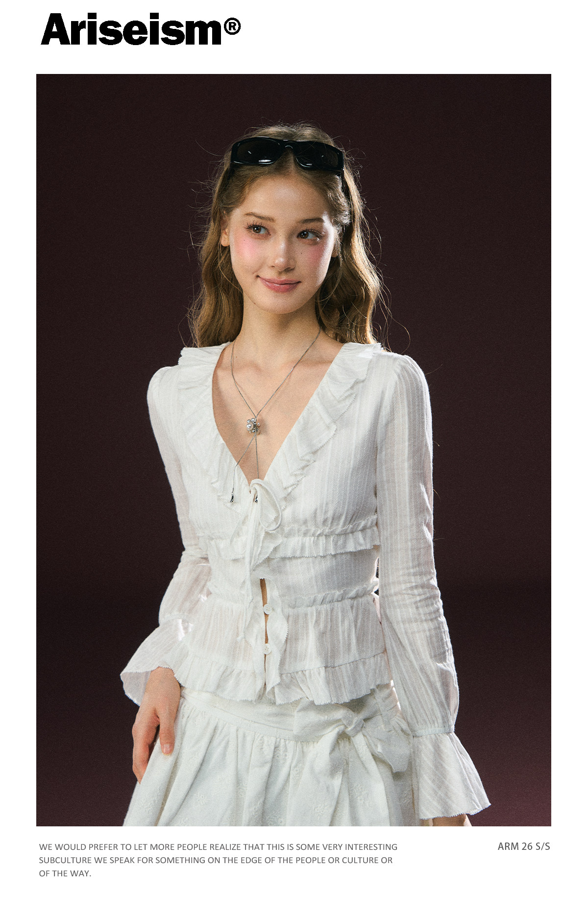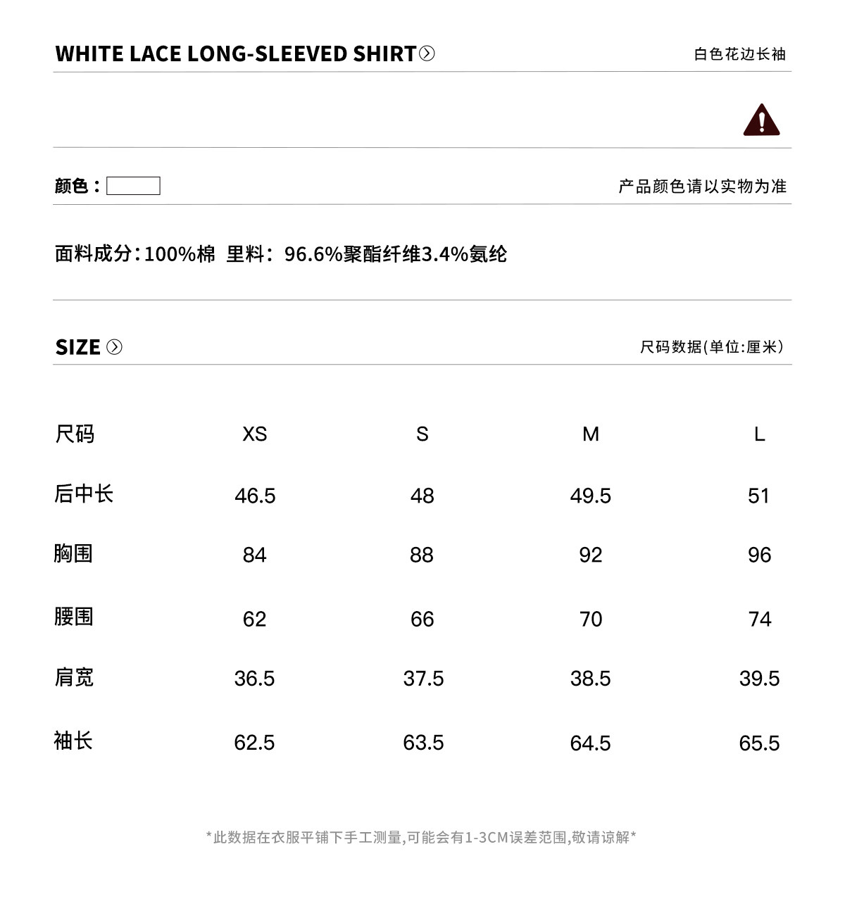 Ariseism 美式复古设计感白色花边长袖T恤女春季新款上衣