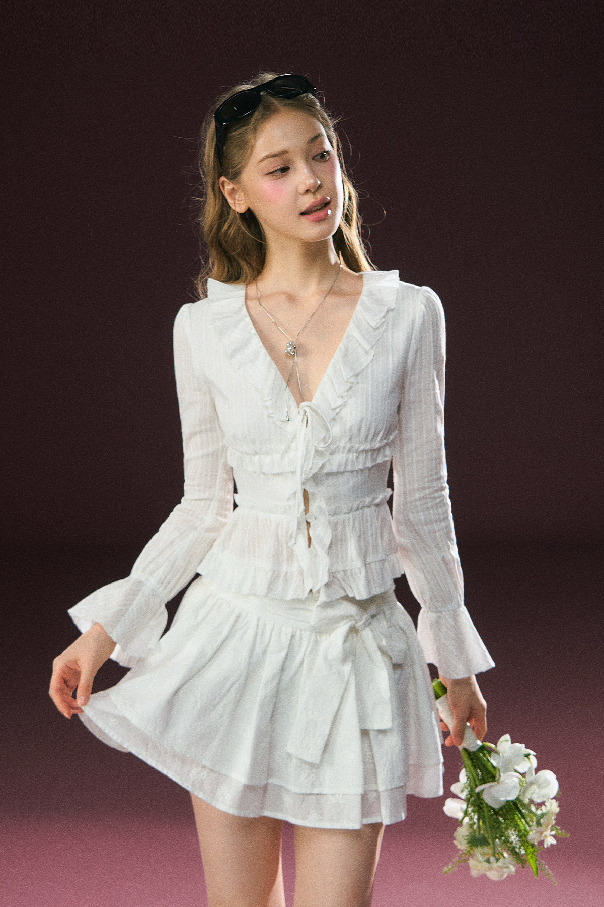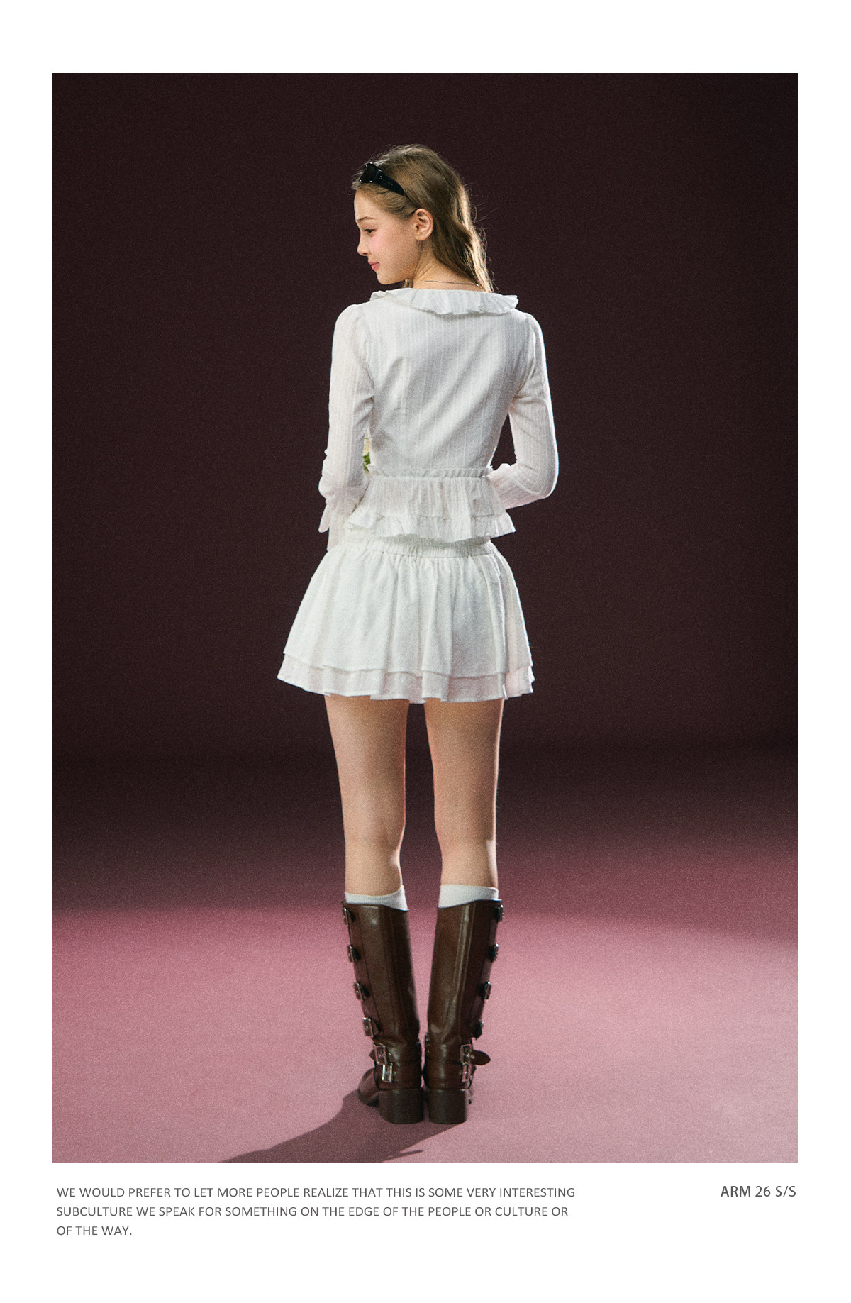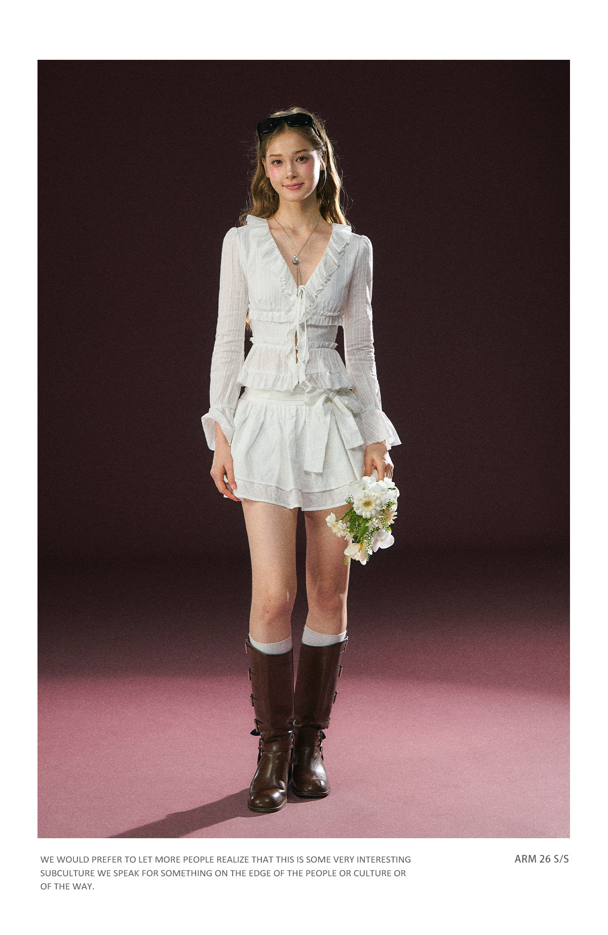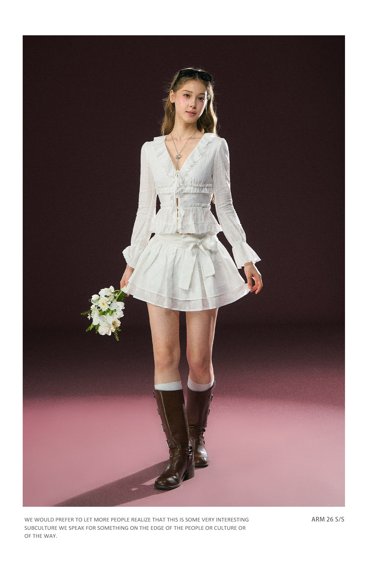 Ariseism 美式复古设计感白色花边长袖T恤女春季新款上衣