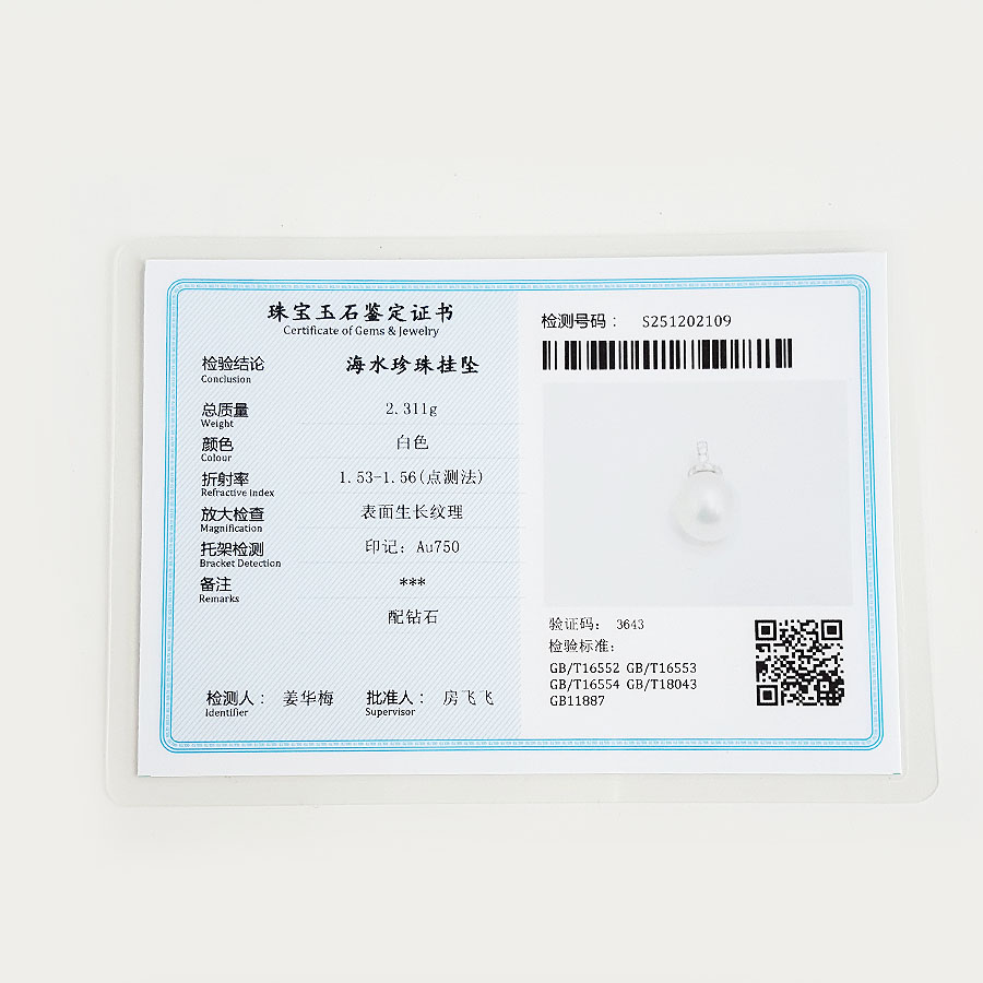【天然正品】AU750白金镶钻镶天然椭圆约11.0*10.1MM粉色晕彩AKOYA海水珍珠吊坠项链18.9**10.1*10.1MM(皆取最大值)311225NJM60